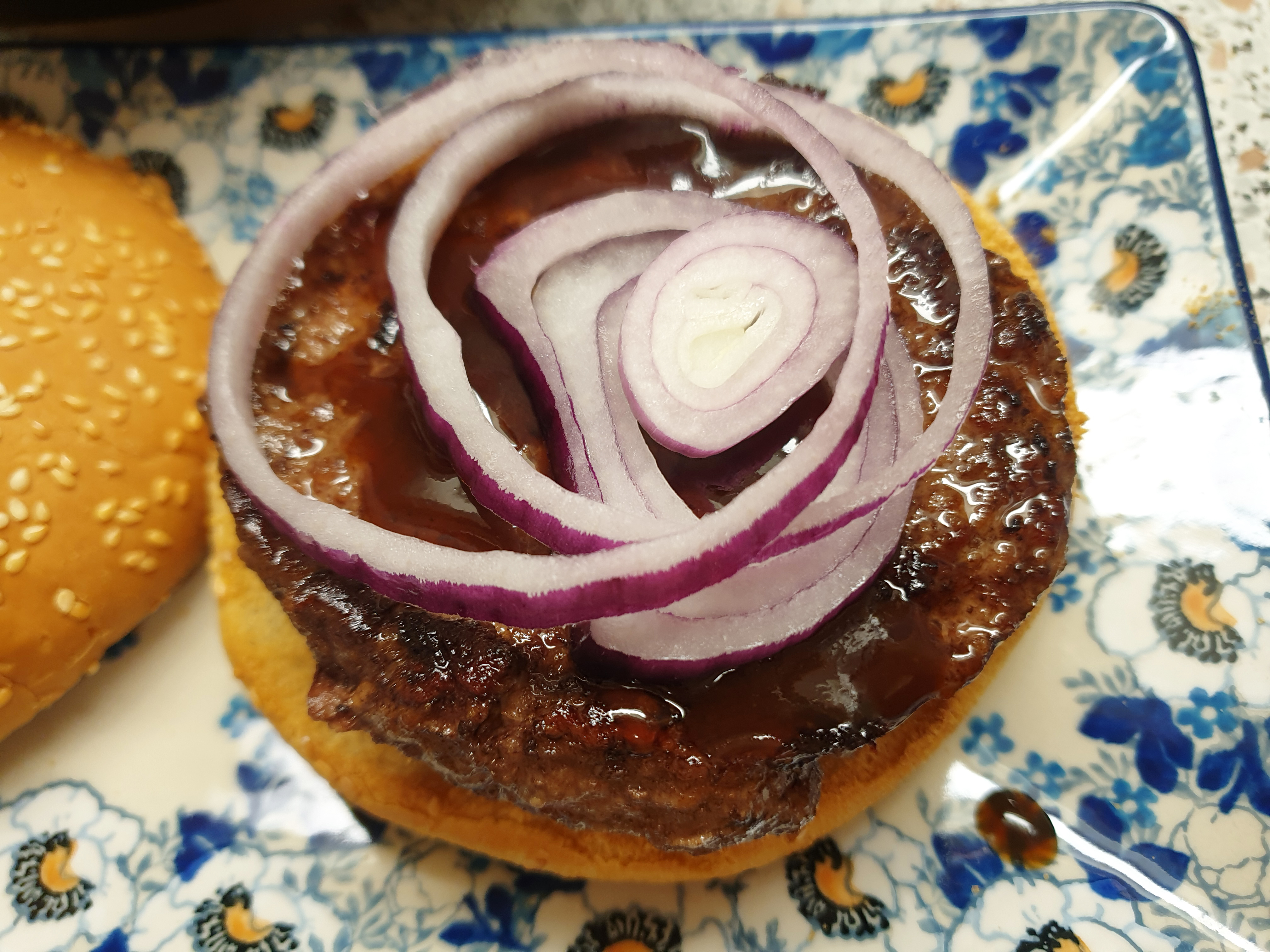 양파와 토마토도 슬라이스를 준비해주고 모든 재료가 준비가 됐다면 이제 탑을 쌓듯이 재료들을 햄버거 번 위에 올려 주면 됩니다.