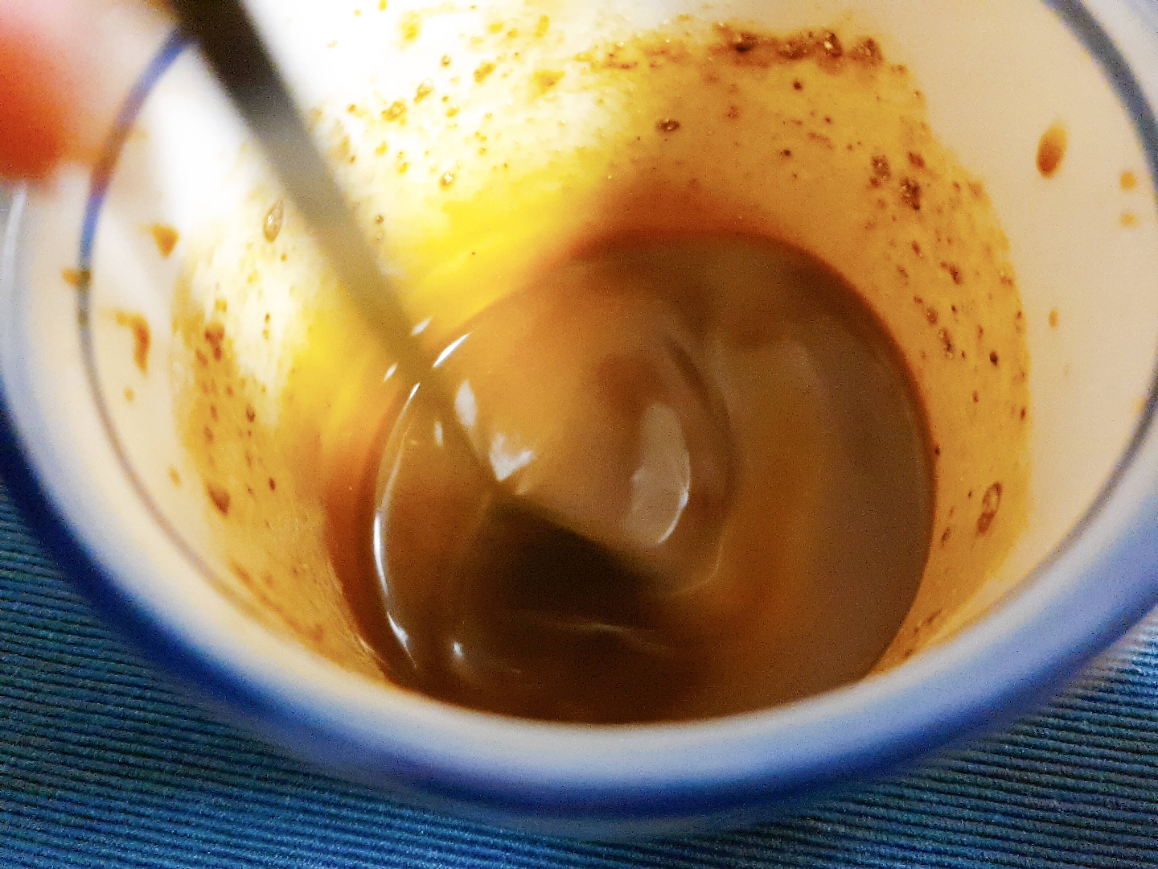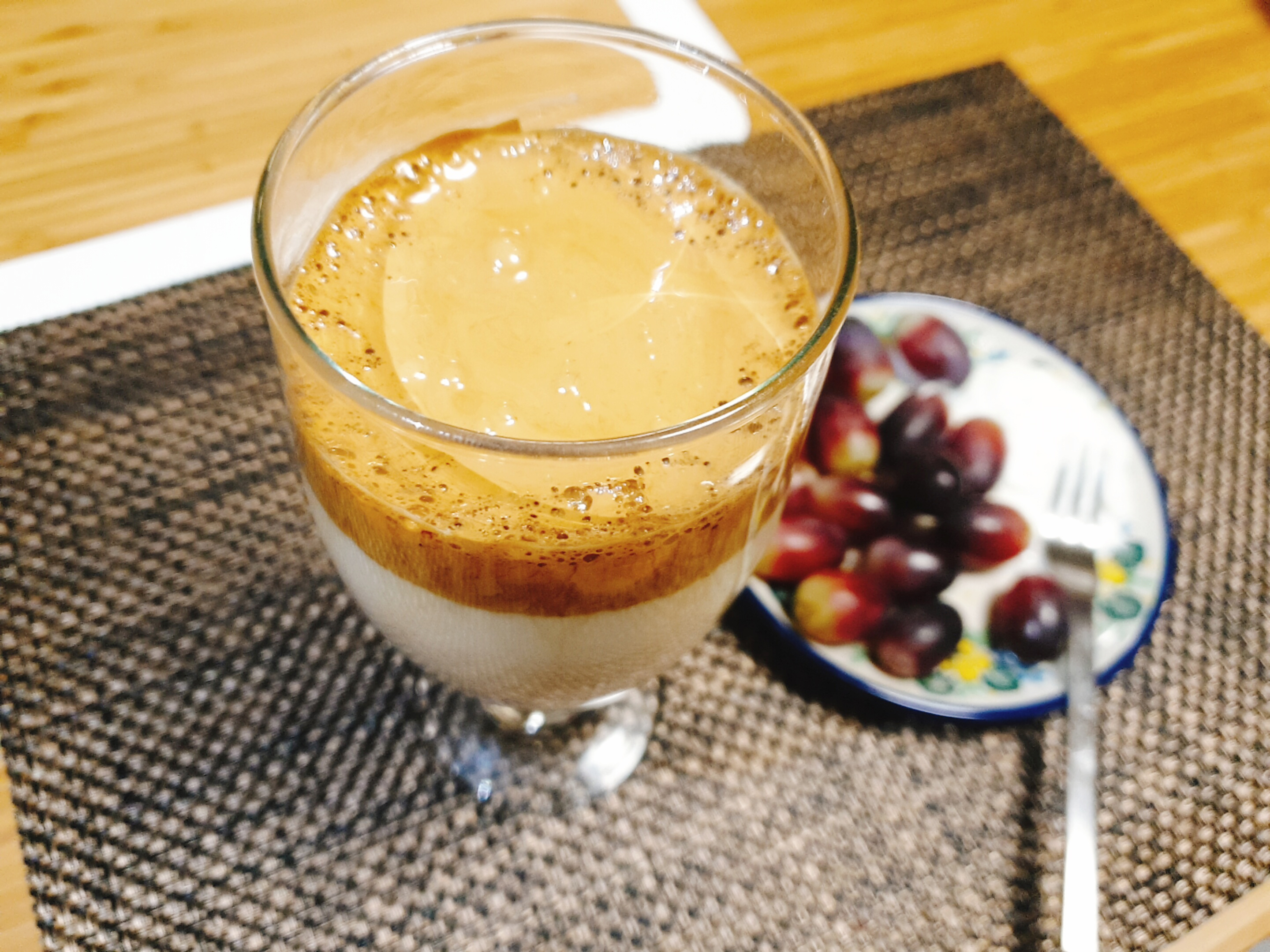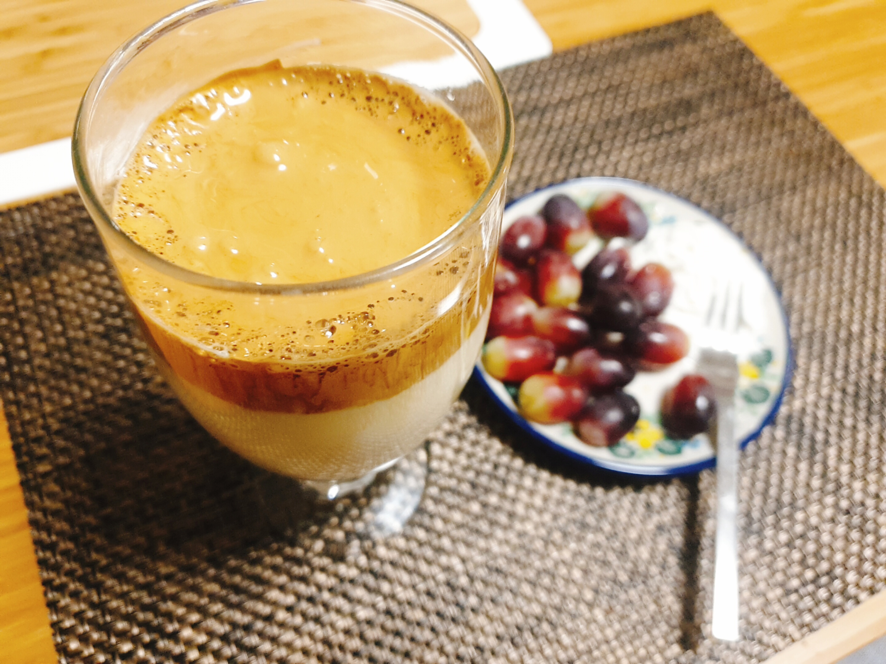 달고나 커피를 믹스커피로도 만들 수 있다고 해서 네스카페 커피믹스를 이용해서 만들어 봤는데 천 번을 넘게 저어도 달고나처럼 변하지 않더라고요.. 팔만 아프고 담 걸린 뻔했습니다.