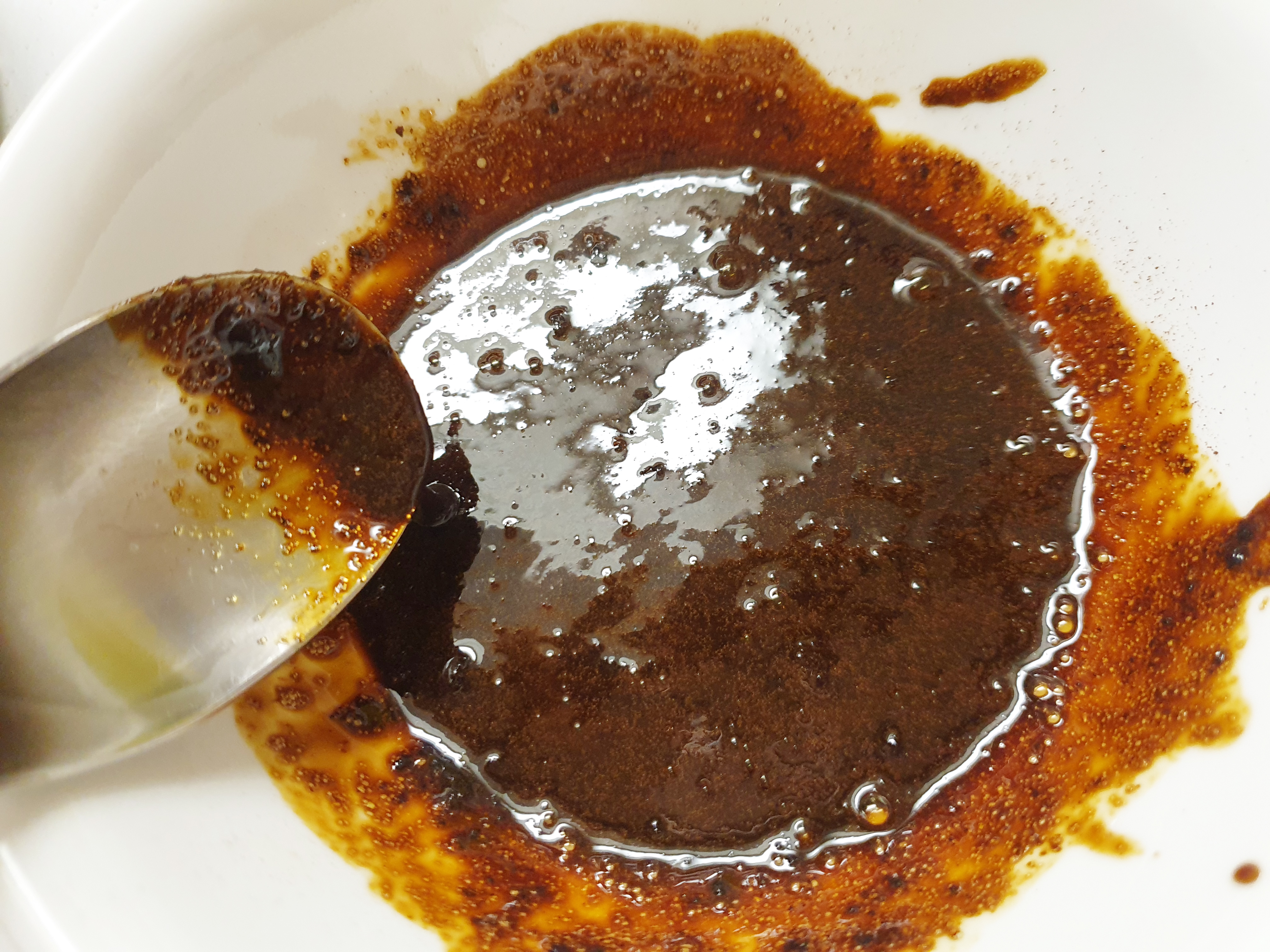 커피 3스푼, 설탕 3스푼, 물 3스푼을 넣고 열심히 저어줬어요. 달고나 색으로 변하고 된느낌이 들 때까지!