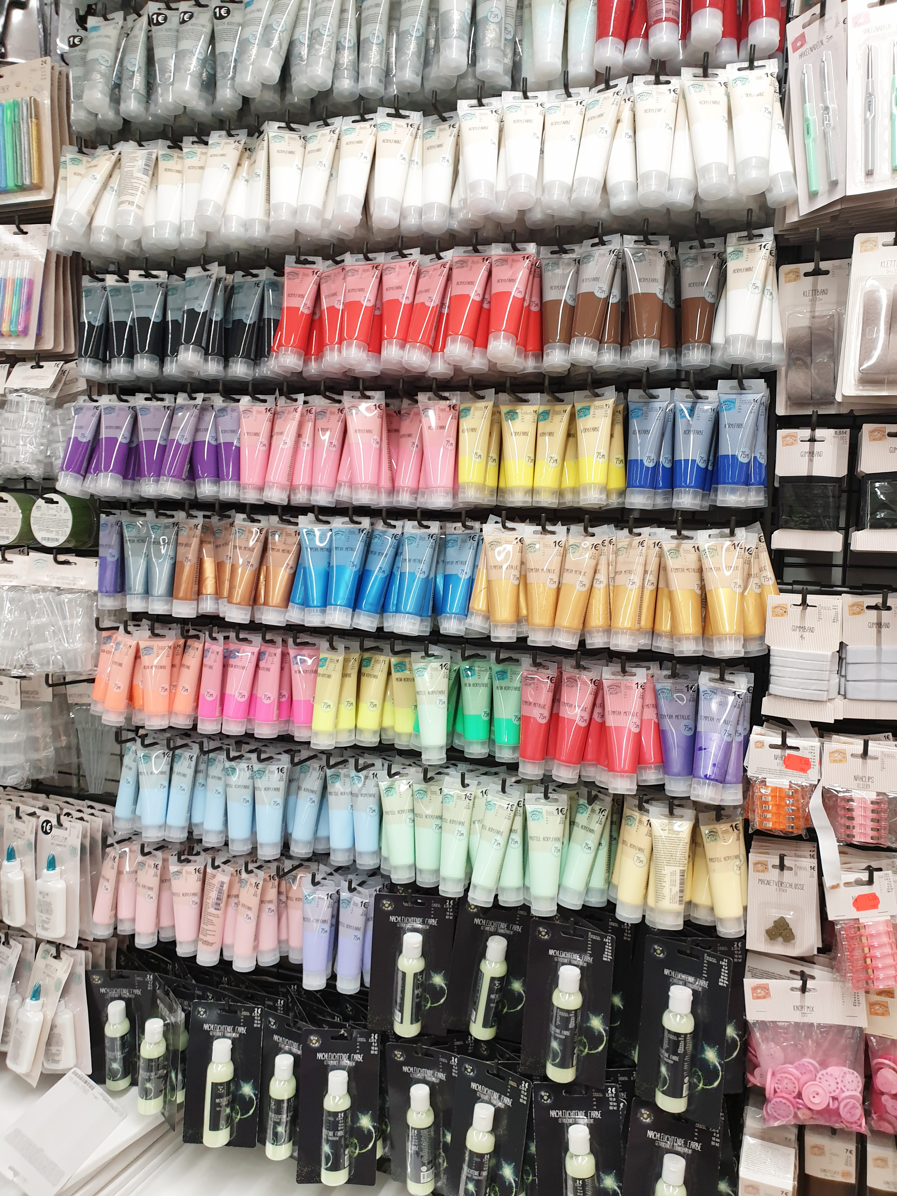 아크릴 물감은 1유로 밖에 하지 않네요~ 사용해 보지 않아 좋은지는 잘 모르겠지만 75ml에 1 유로면 정말 저렴하네요~