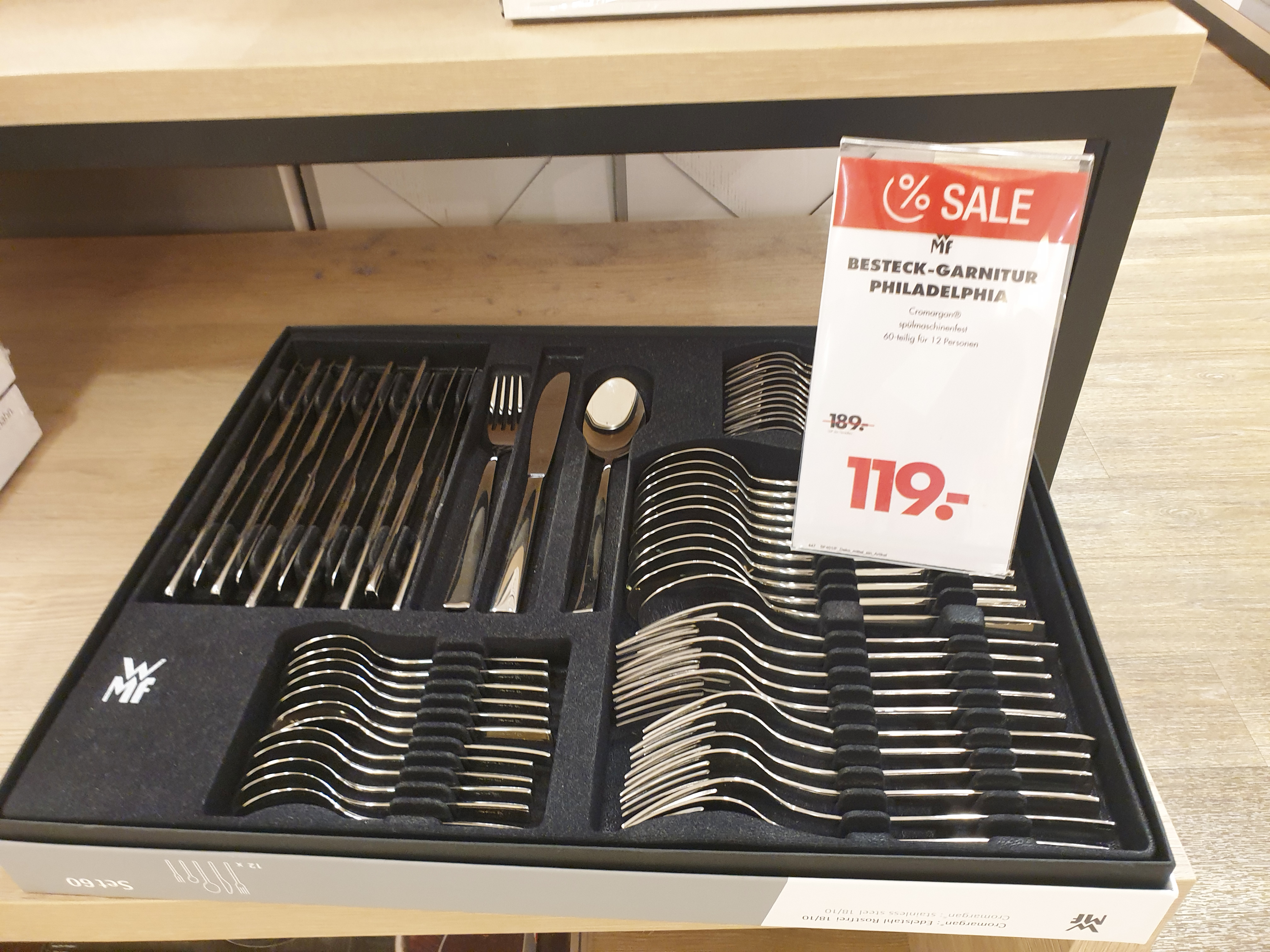(왼) WMF 필라델피아 커트러리 60P 세트 119 유로 (한화 약 160,320원)