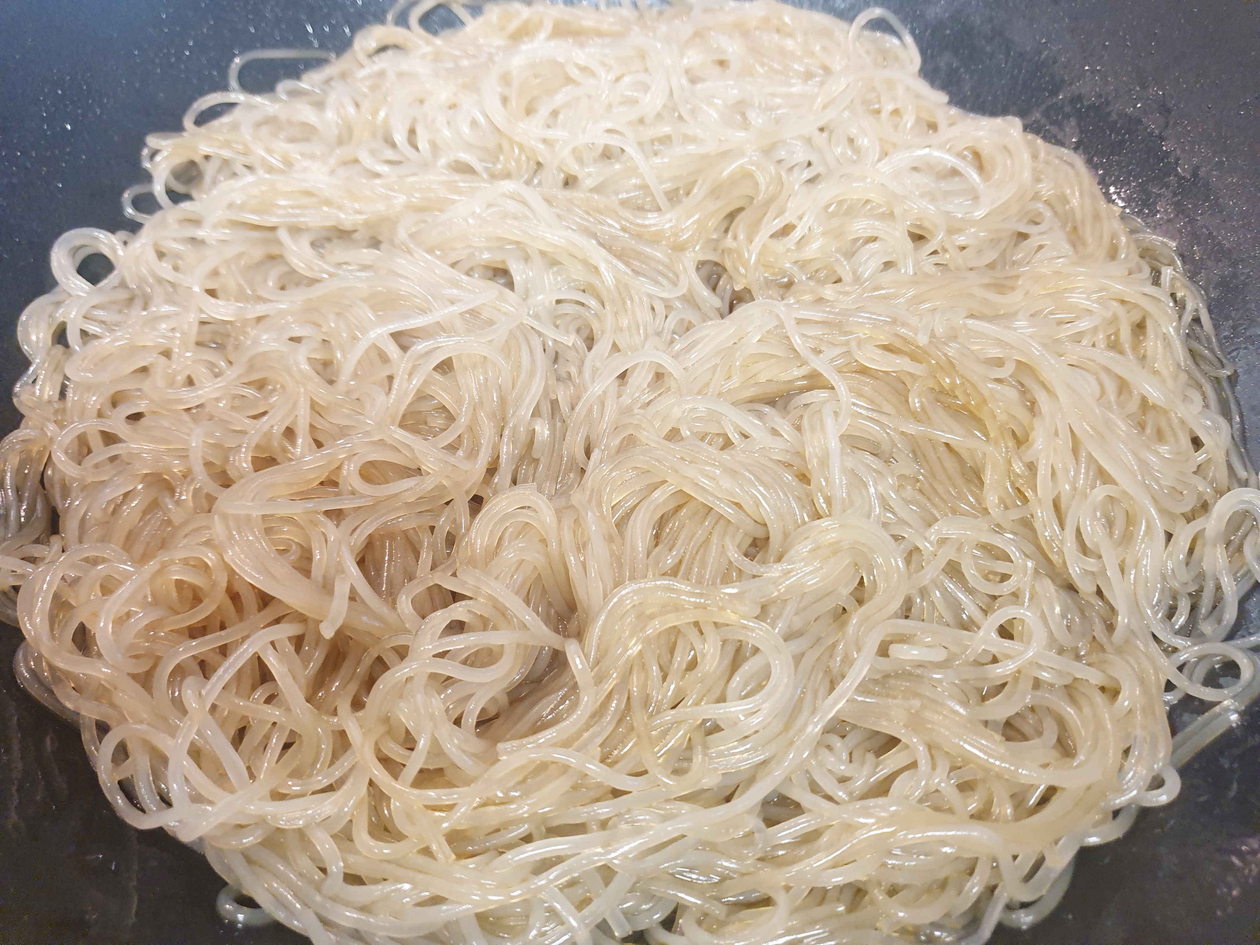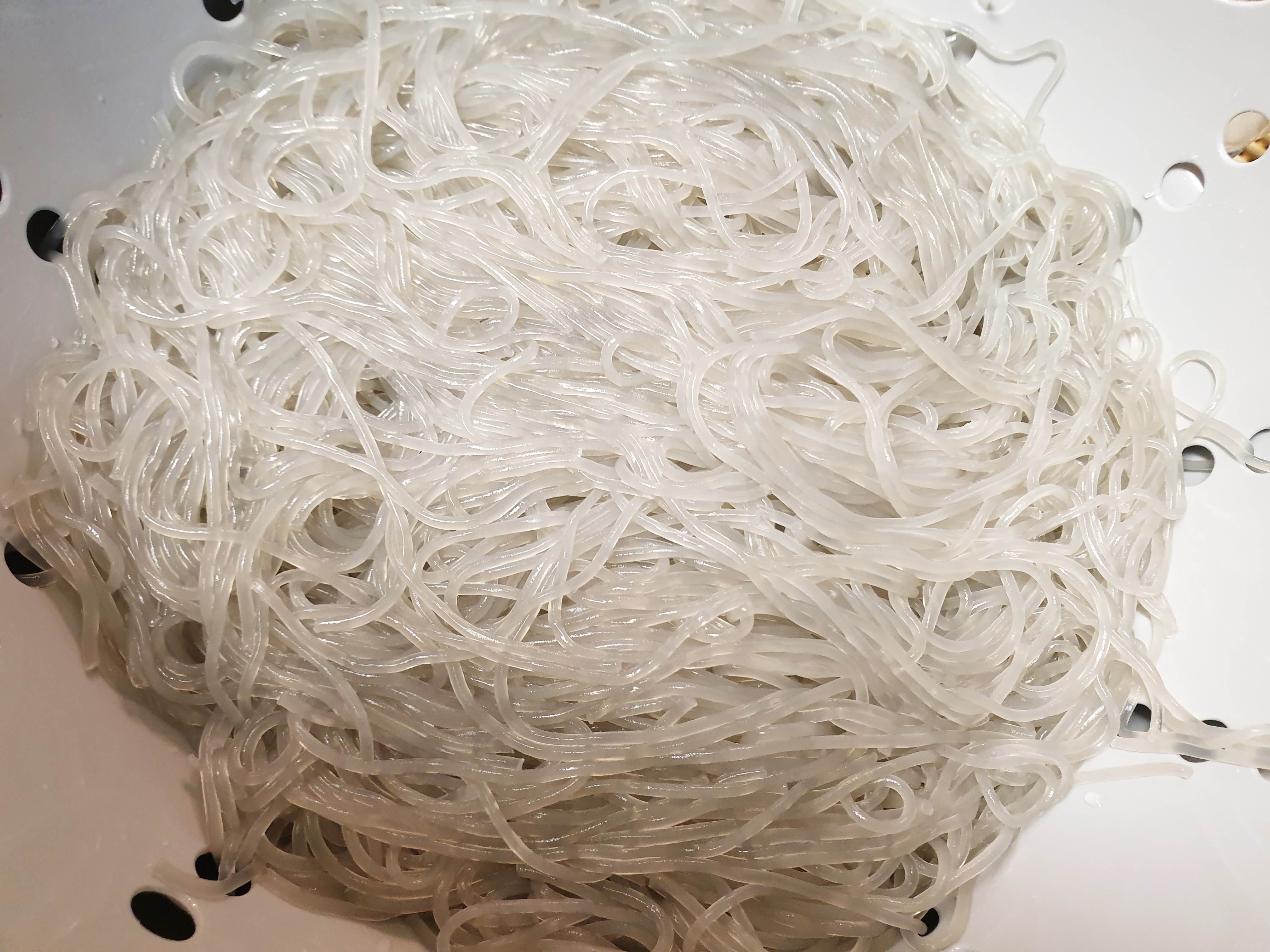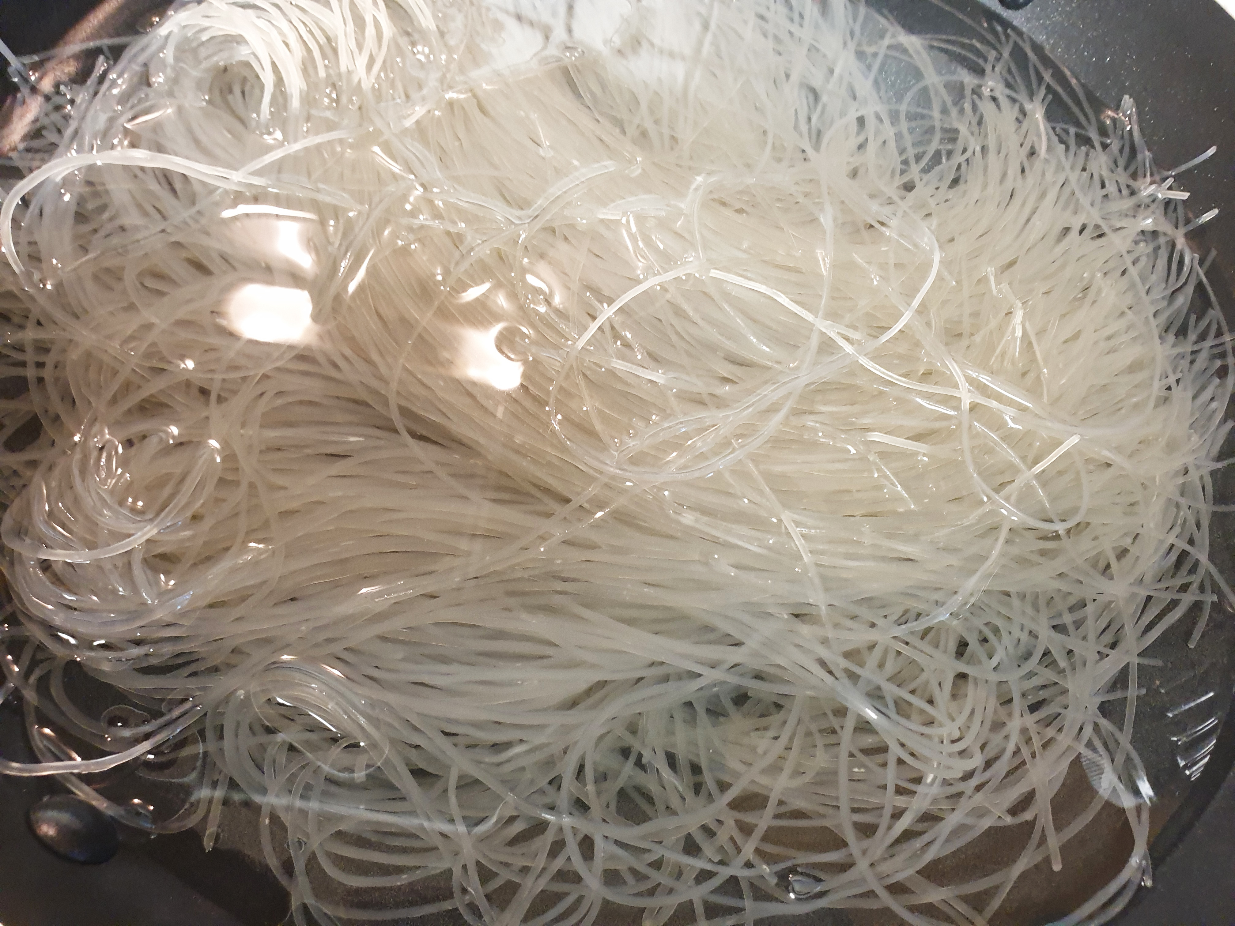 6. 당면에 들어갈 재료들이 준비가 됐다면 당면을 끓는 물에 5분간 삶아주고 찬물에 헹궈준 후 물기를 빼주세요!