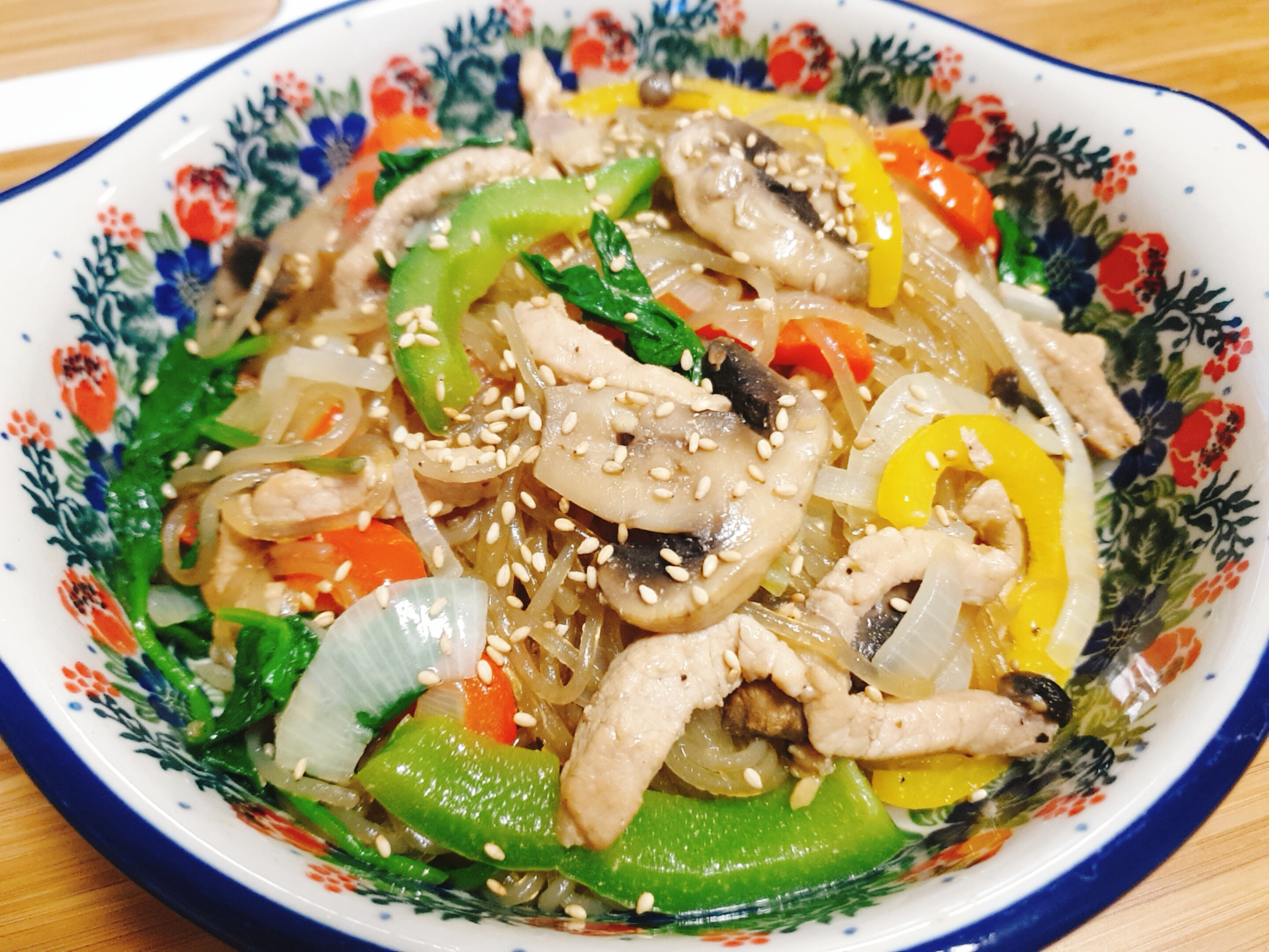 맛있는 잡채가 완성이 됐네요~♡ 당면 500g 적지 않은 양이라 이렇게 만들어두면 둘이서 4일 정도 먹는 것 같아요~ 잡채 볶음밥도 만들어 먹기도 하고 그리고 잡채는 다른 음식과 조합도 워낙 좋아서 질리지가 않네요~ 저의 친언니에게 배운 잡채 황금레시피 (잡채 쉽게 만드는 법) 참고하시고 맛있는 식사시간 되세요! #잡채 황금 레시피 #잡채 쉽게 만드는 법