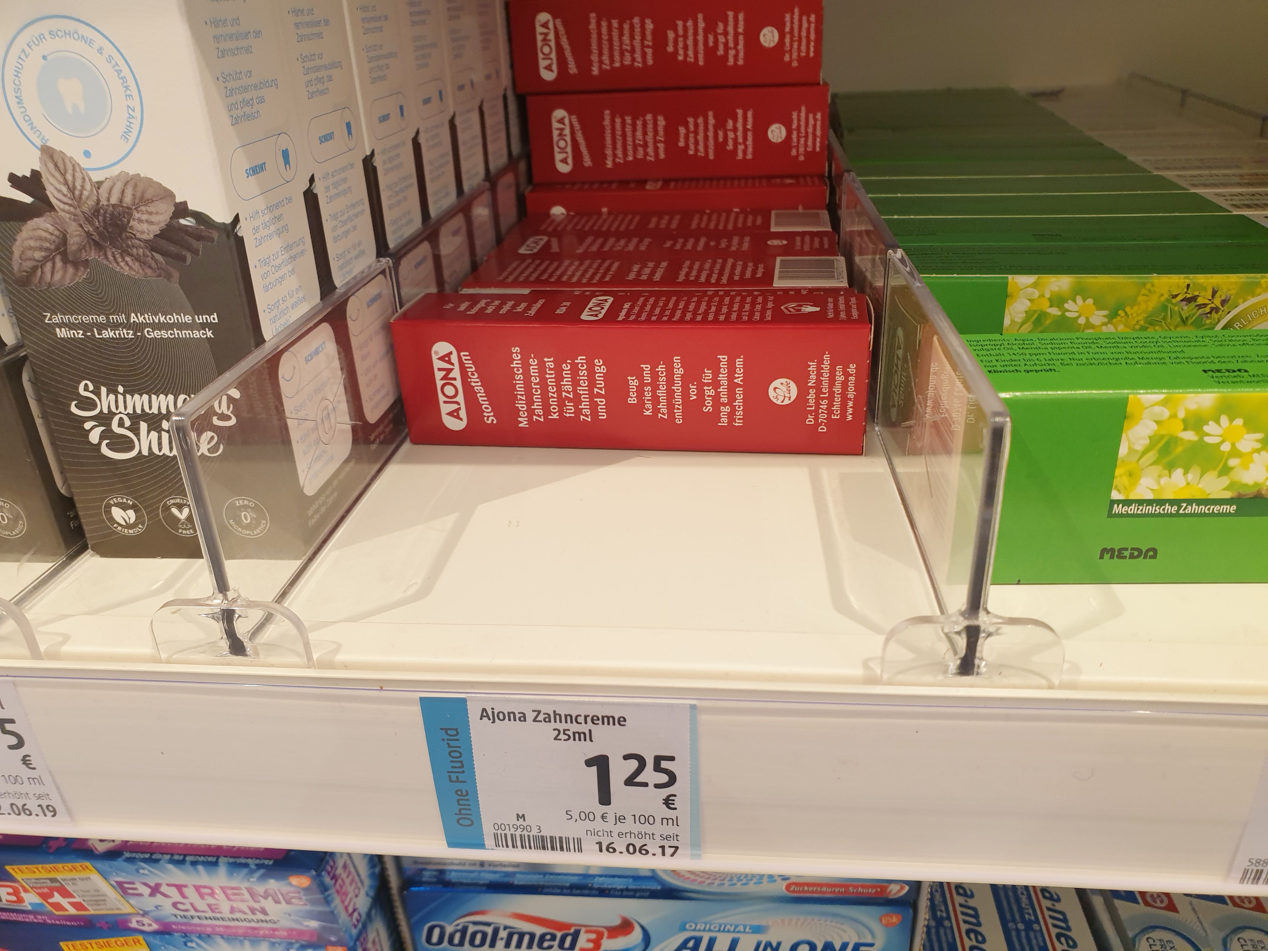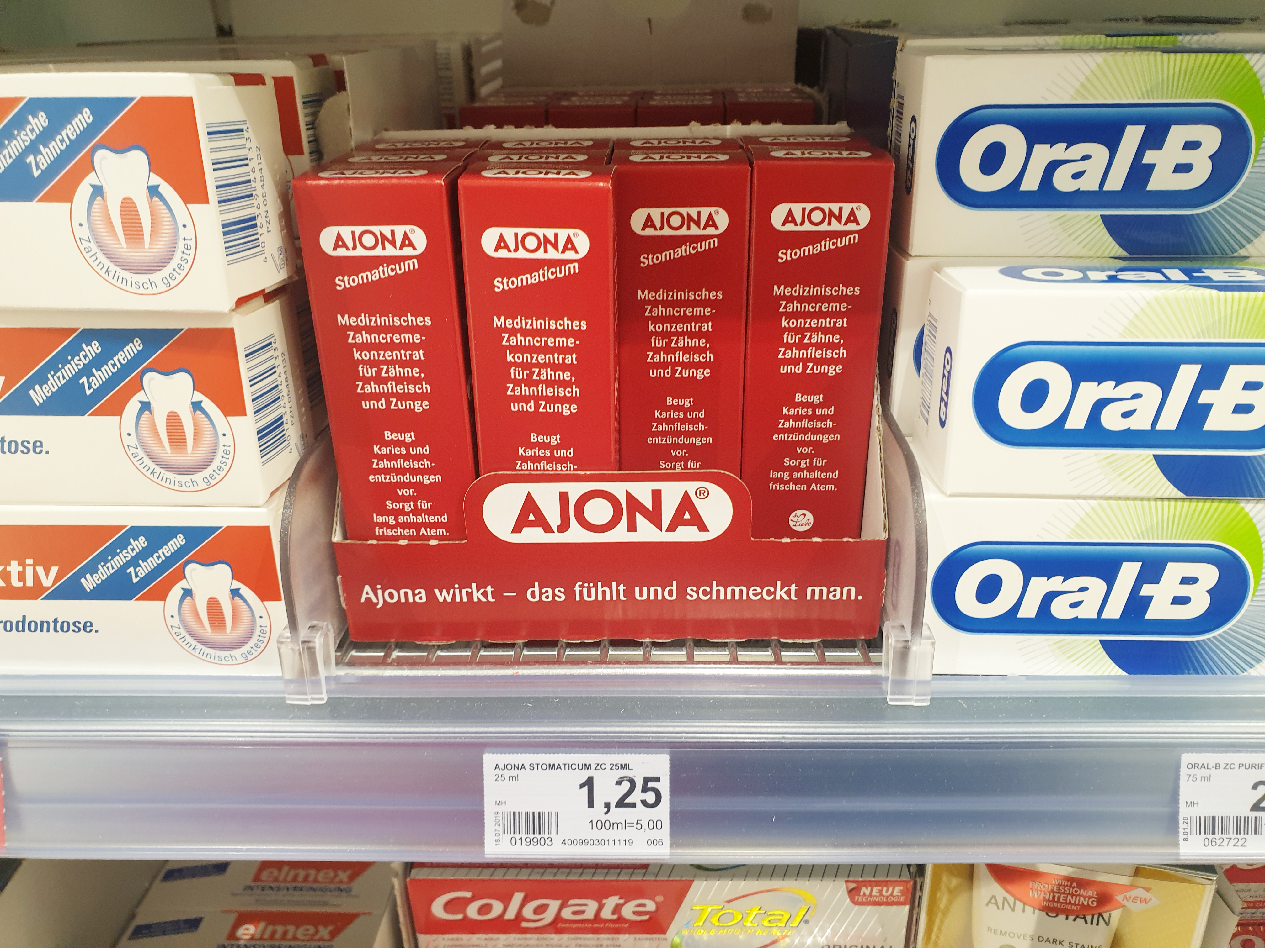 독일에서는 아조나 치약을 드럭스토어나 마트에서 쉽게 찾을 수 있고 가격은 1.25유로예요! 요즘은 해외직구나 인터넷 쇼핑 너무 잘 돼있어서 한국에서도 쉽게 구할 수 있는 제품이죠!