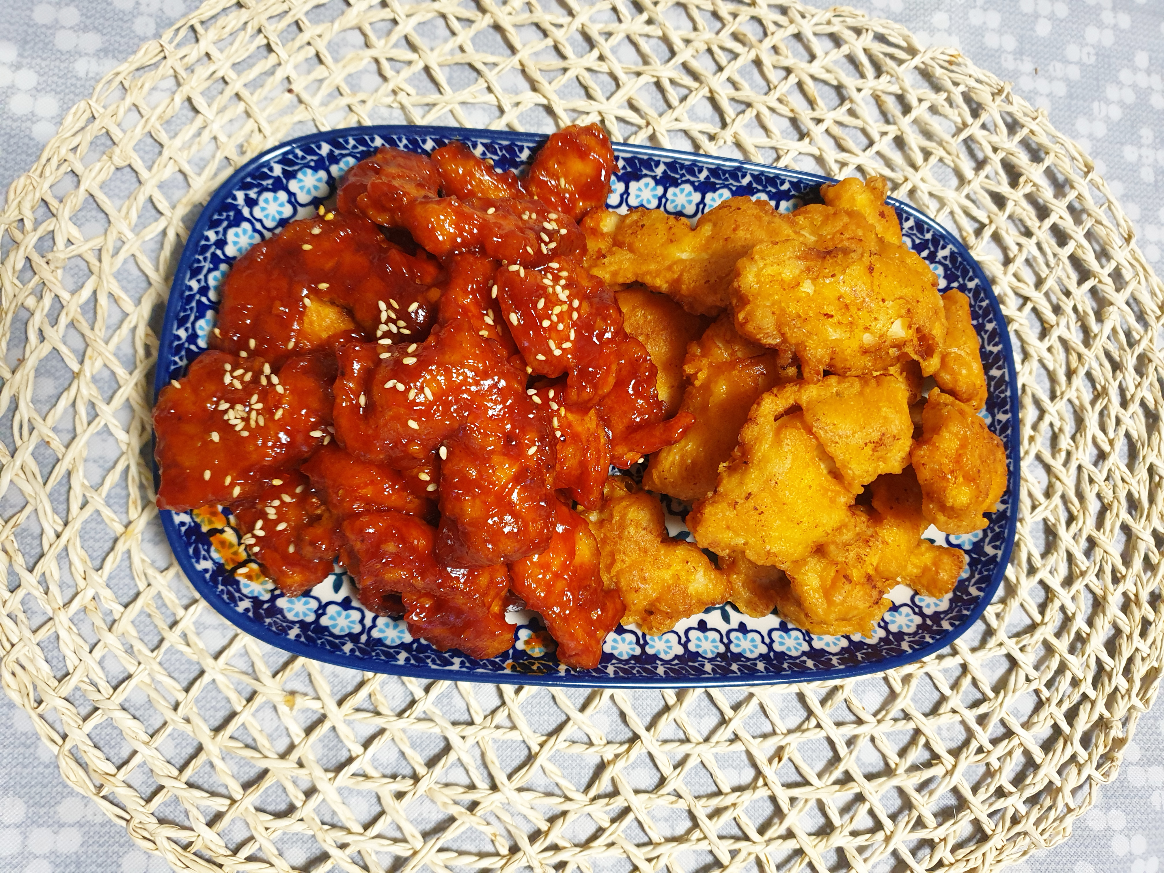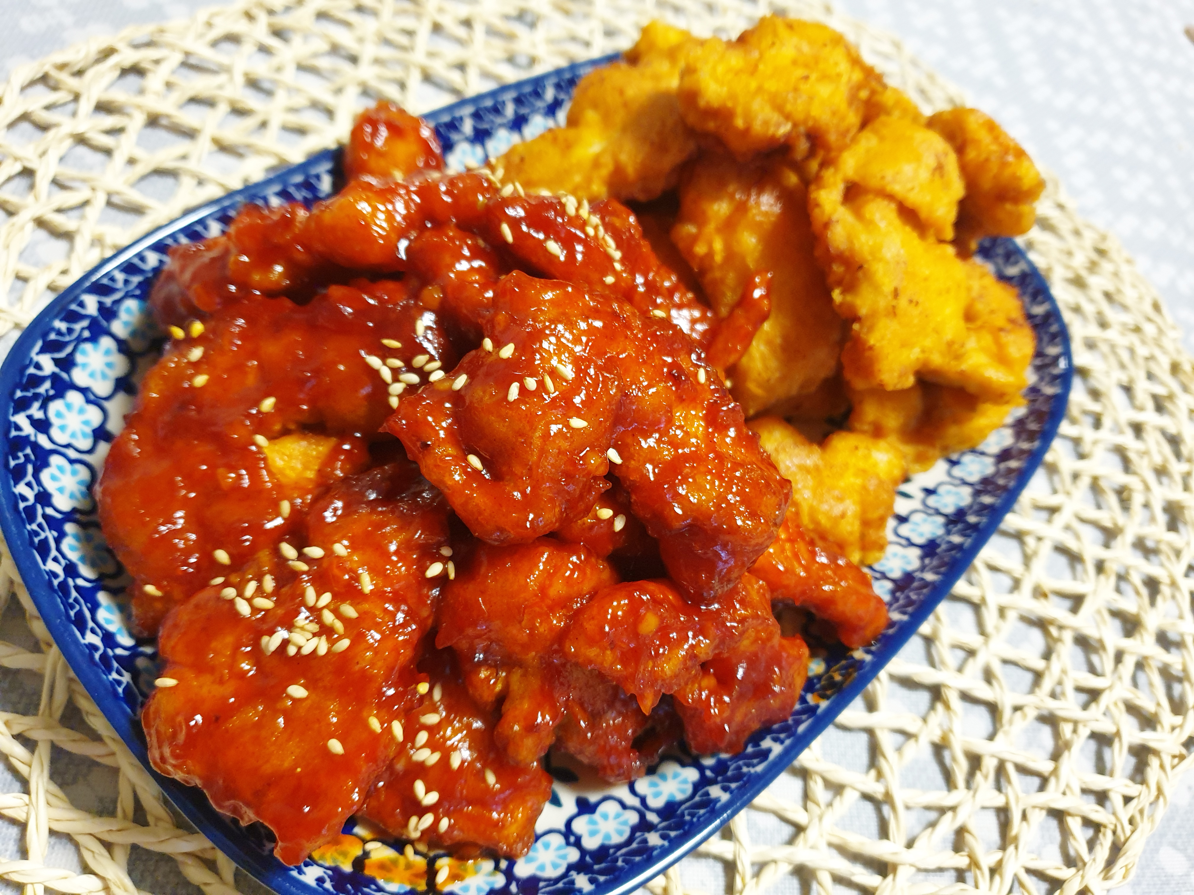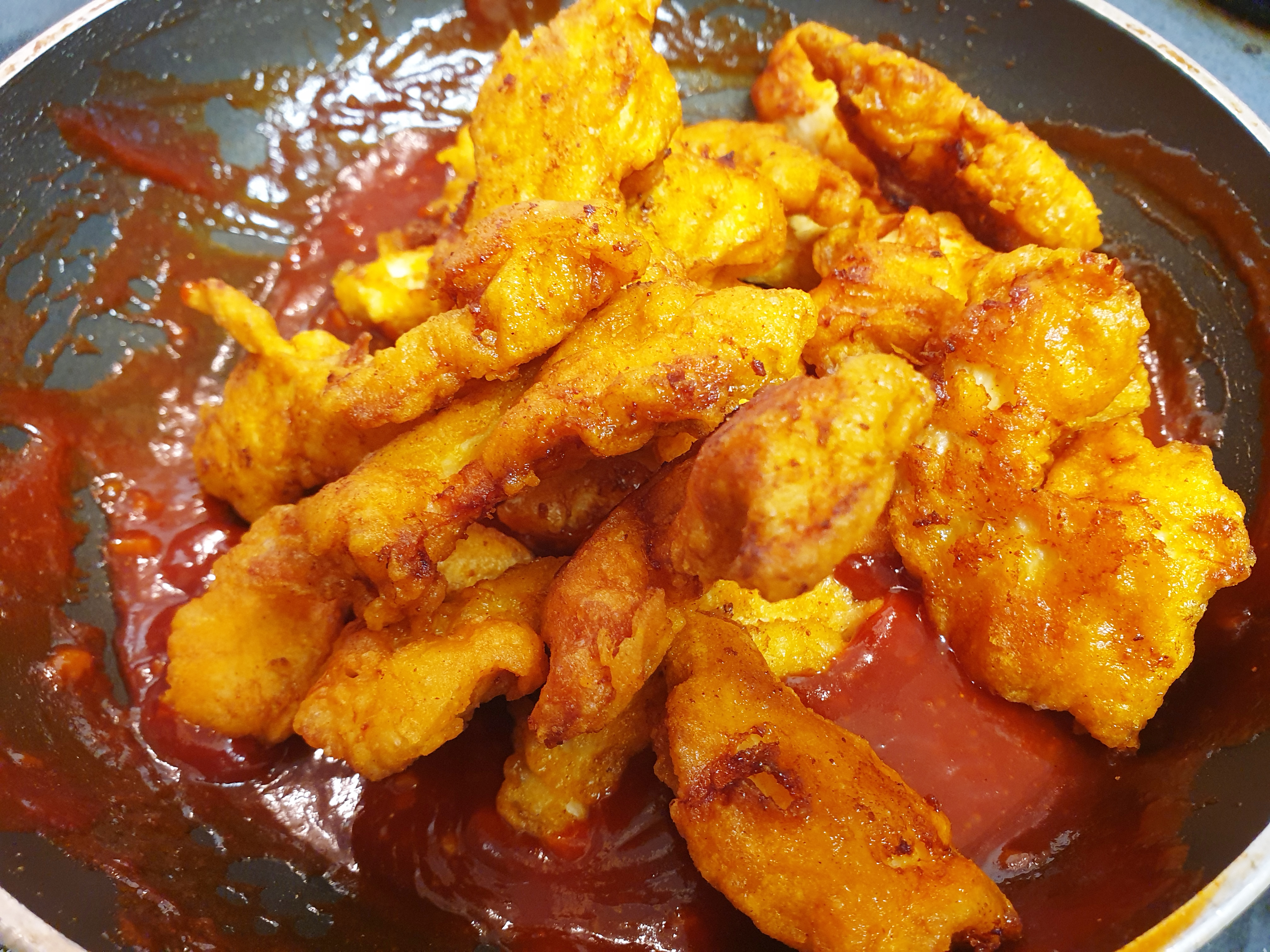 소스를 만든 김에 많이 만들어서 치킨도 튀겨 양념치킨도 만들어봤어요~ 양념치킨 소스로도 제격입니다! 둘이서 아주 배불리 먹었네요~^^ 떡꼬치는 아이들 간식으로도 딱이고 오랜만에 학교 앞 분식 떡꼬치가 생각나시는 분들 이 레시피를 보고 한번 도전해보세요!