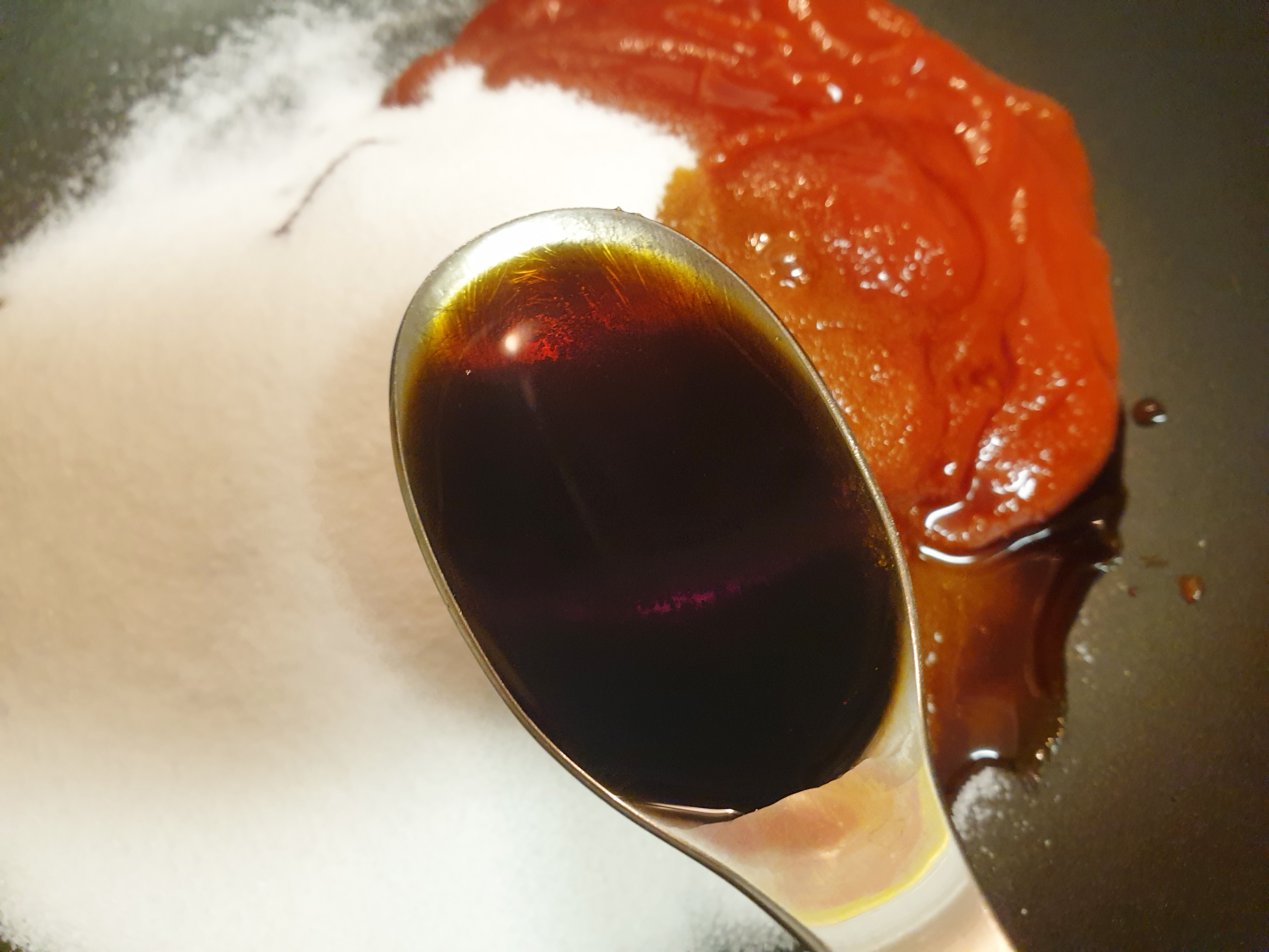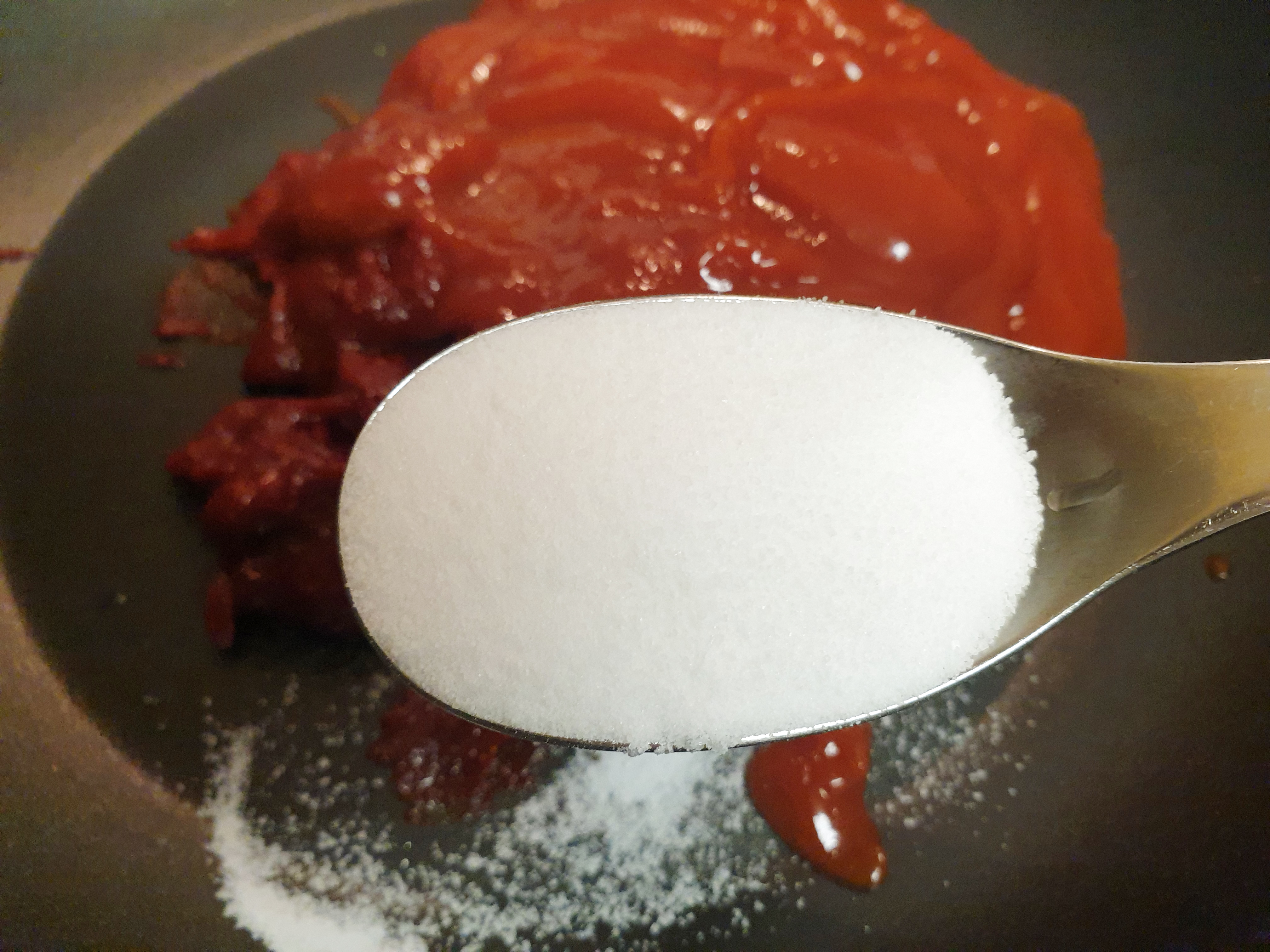 필요한 조미료: 설탕, 간장, 고추장, 식용유, 케첩 , 다진 마늘