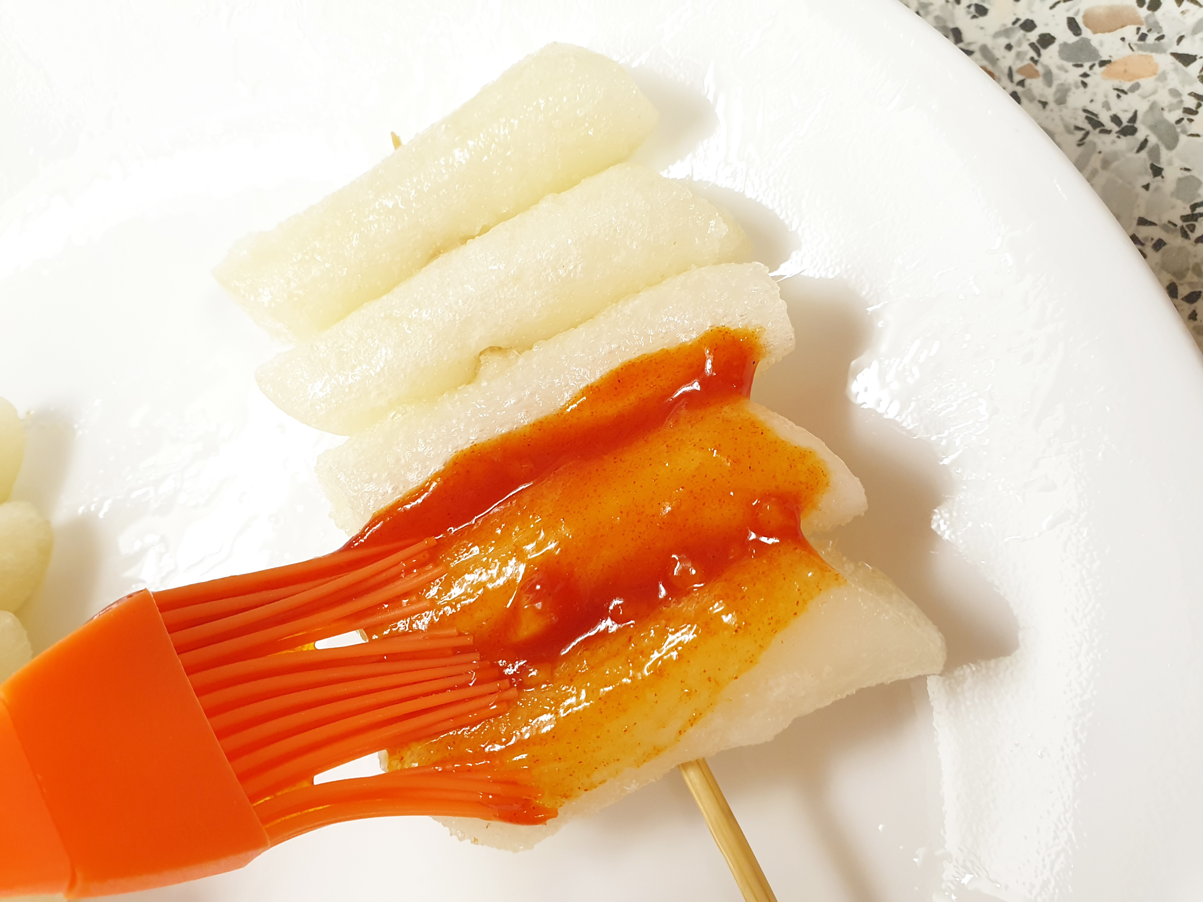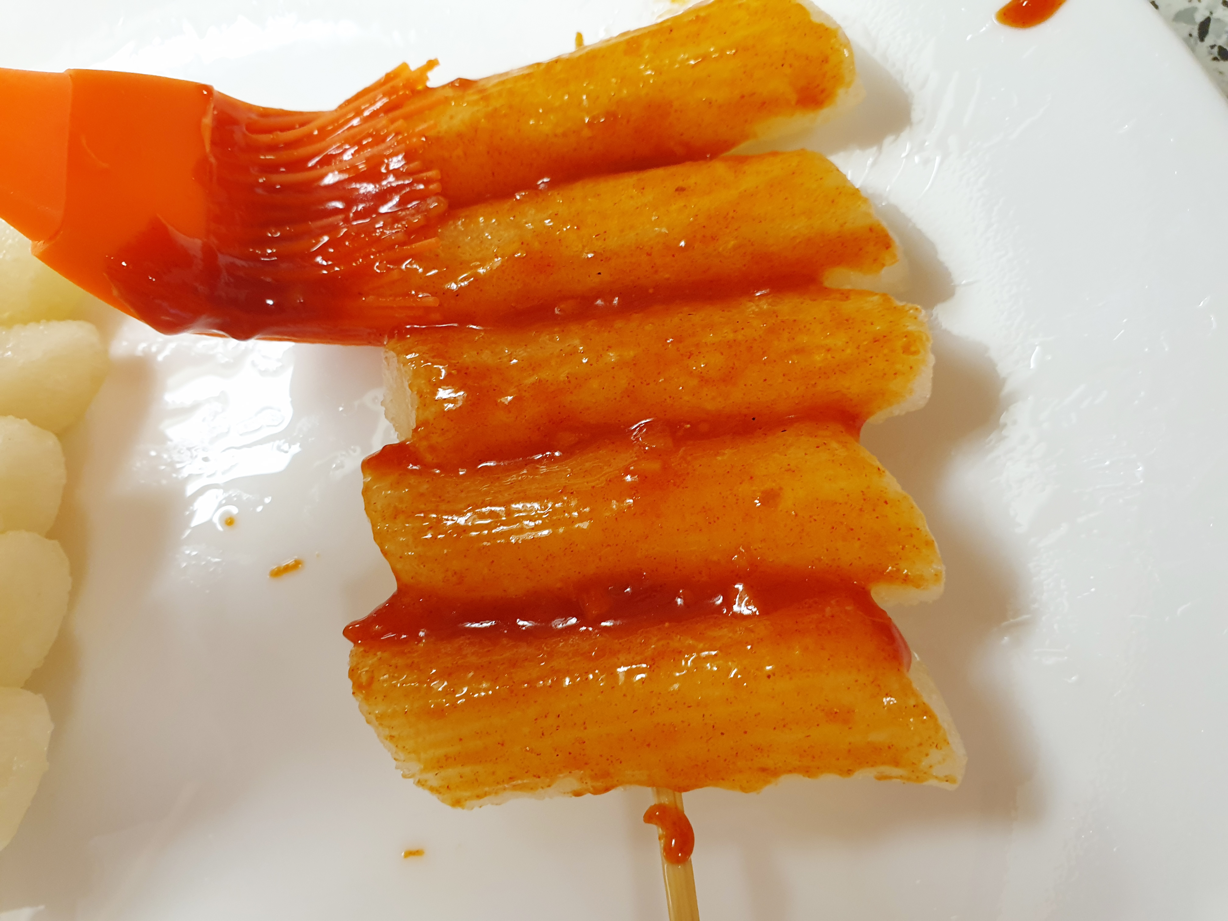 학교 앞 분식집에서 먹던 떡꼬치 느낌을 내기 위해 솔로 떡꼬치 소스를 발라줬어요~