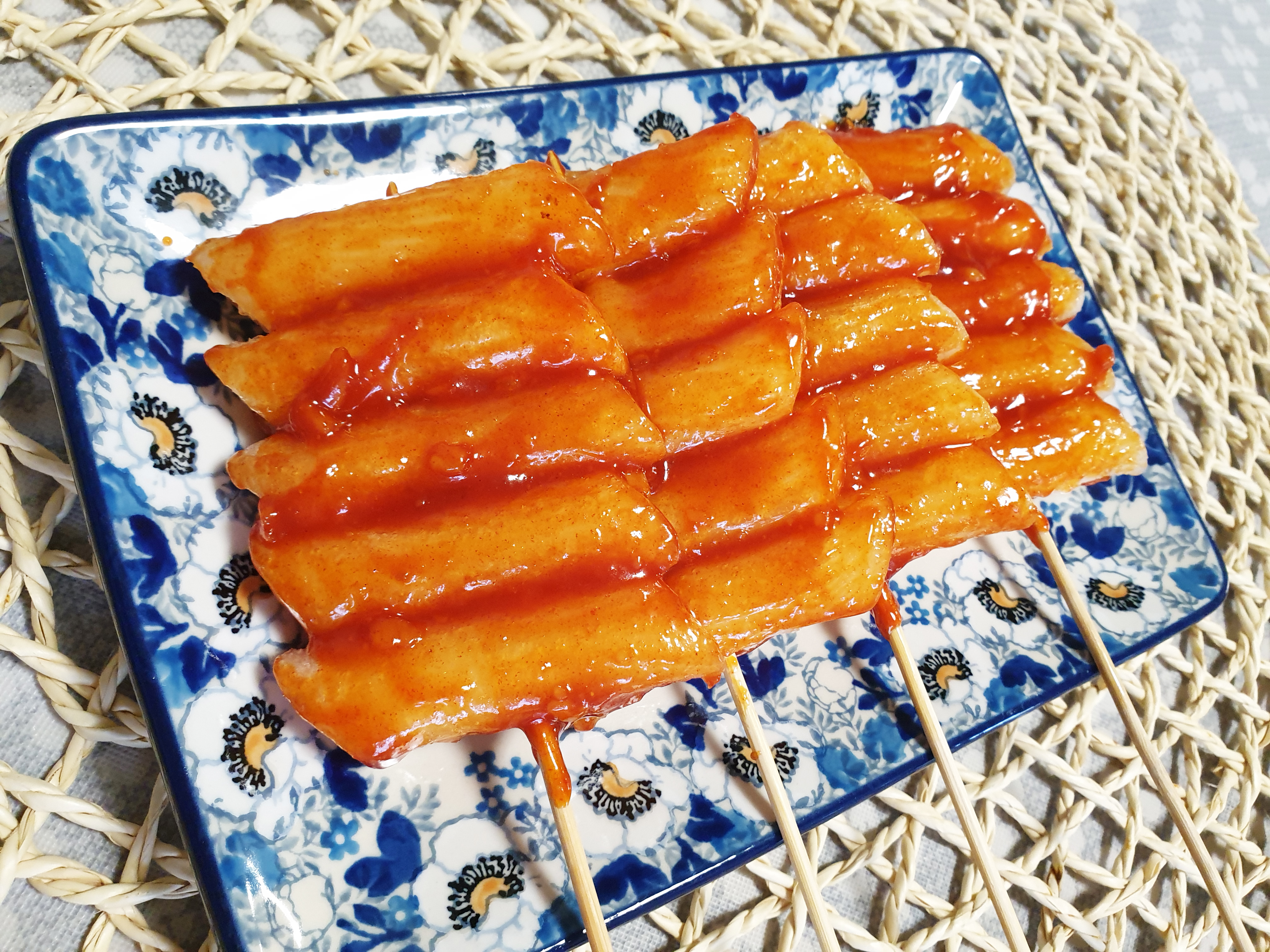 이렇게 맛있는 떡꼬치가 완성이 되었습니다~ 오랜만에 먹으니 더욱 맛있네요~><
