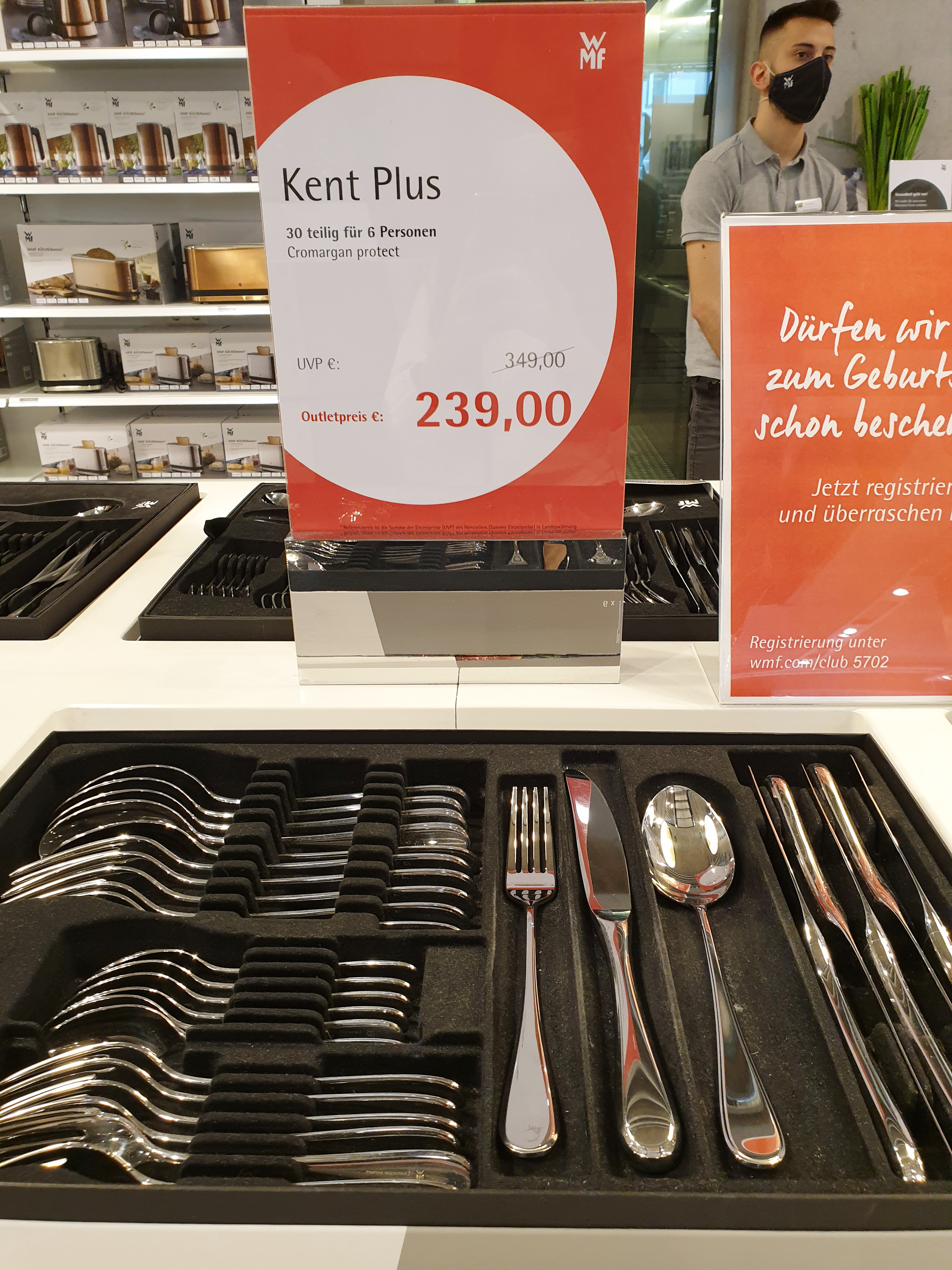 일주일 전에 생일 선물을 사러 독일 메칭엔 아웃렛에 다녀왔는데 아웃렛에 간 김에 WMF매장에 가서 가격을 공유하기 위해 사진으로 담아와 봤어요~ 메칭엔 아웃렛 WMF 매장이 2020/6/18일에 이전한다고 하더라고요~ 그래서 70프로 까지 할인을 한다 해서 가보니 실리트는 다 빠진 건지 물건을 뺀 건진 모르겠는데 실리트 주방용품은 몇 개뿐이 없었고 WMF 주방용품은 전보다 더할인하거나 그렇진 않았습니다. 제가 보기 전에 할인 상품들이 다 빠진 거일 수도 있어요~ 지금 현재 독일 메칭엔 아웃렛 WMF에서 판매되고 있는데 주방용품들과 가격 공유해드릴게요!