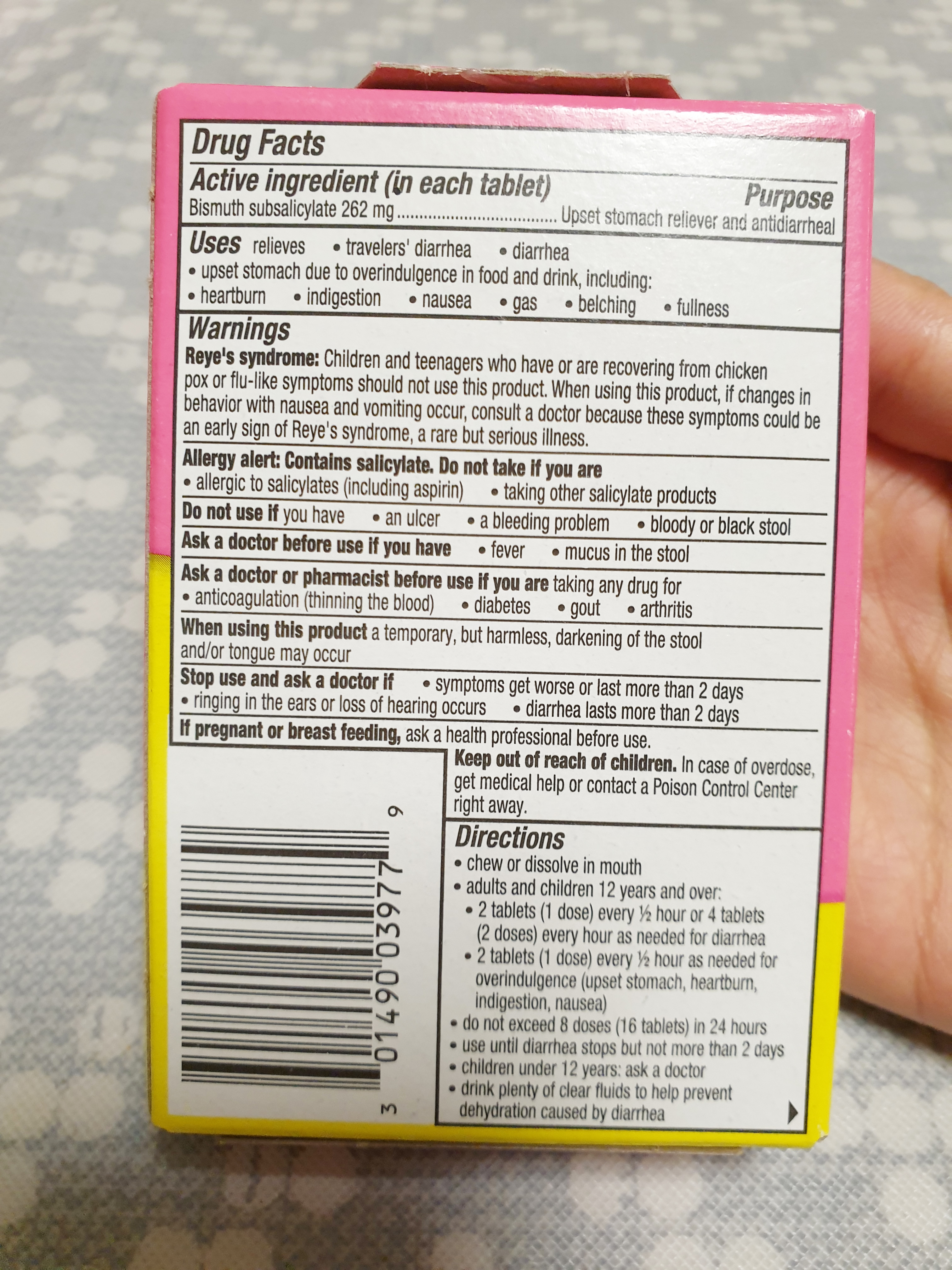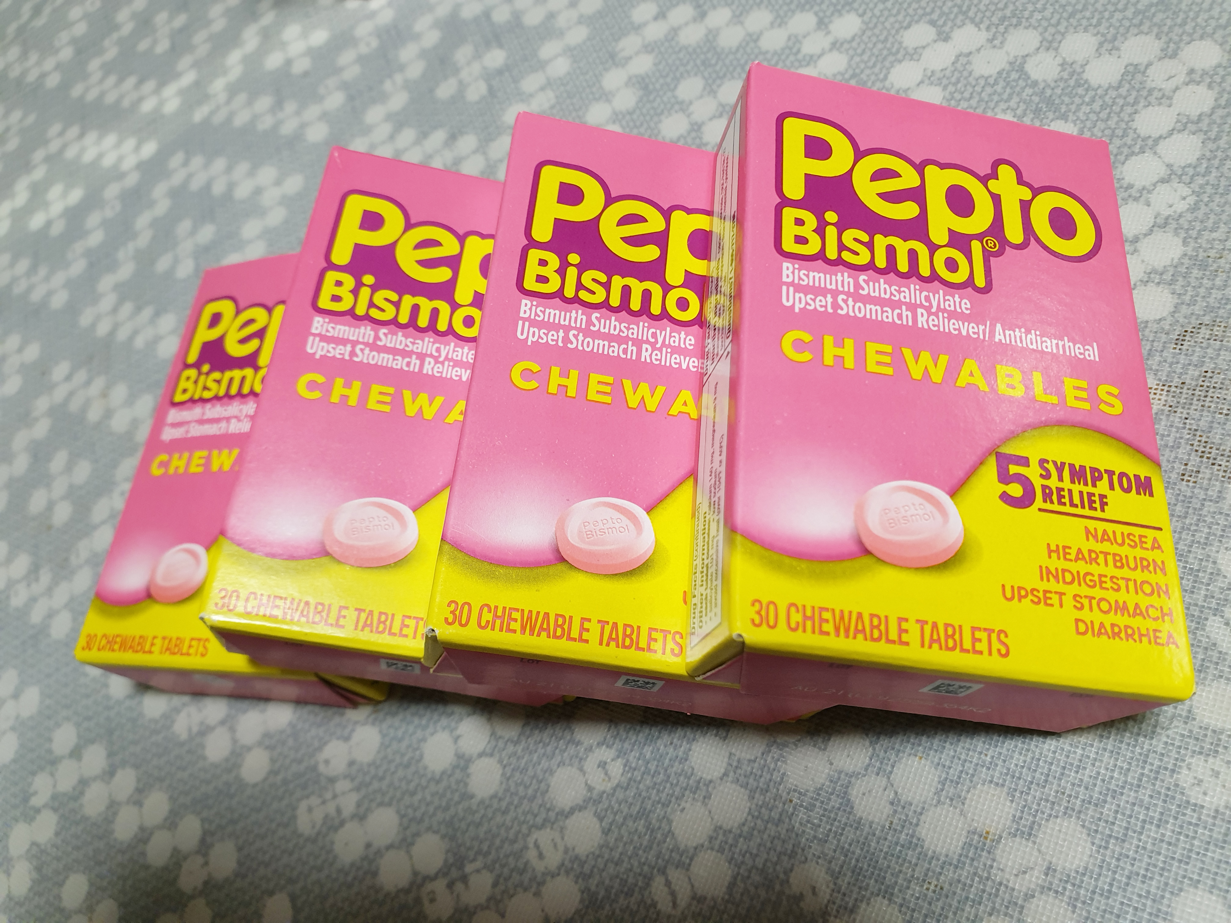 펩토비스몰 타블렛 타입은 제가 여행을 할때 항상 들고 다니는 약인데 여행을 할때 항상 소화가 안되고 설사를 하더라고요~ 그래서 여행할때는 밥을 먹고 난 후 바로 타블렛을 복용합니다. 그럼 속이 편하고 여행하는 중에 화장실을 찾지 않아도 되서 좋아요! 제가 구비한 펩토비스몰 타블렛 타입은 한 박스에 30정이 들어 있고 가격은 정확히 기억은 안나지만 4~5달러 사이었습니다.