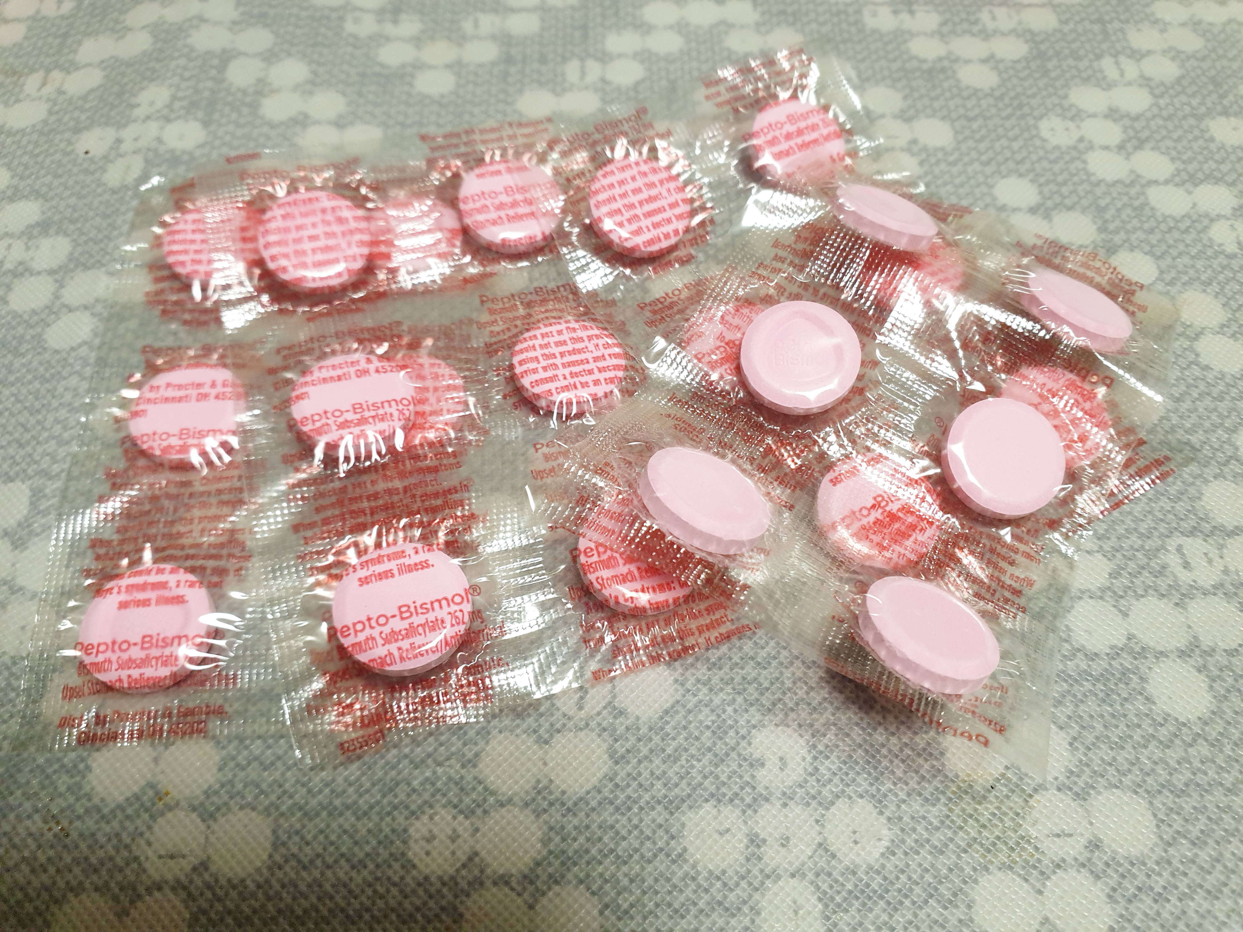 펩토비스몰을 알고 나서는 소화가 안될 땐 이것만 복용하고 있습니다~ 전에 아버지도 소화가 안된다고 해서 펩토비스몰 타블렛을 드렸는데 속이 편해진다고 너무 좋다고 해서 여러 개 구매해서 보내드린 기억이 나네요~ 펩토비스몰 맛은 지금은 익숙해져서 아무렇지 않지만 처음에는 파스를 먹는 느낌이었어요 >< 그리고 펩토비스몰을 복용 후에는 혀 또는 변이 검해지는 현상이 나타나는데 일시적이니 복용 후 놀라지 마세요~ 저는 처음에 약 때문에 그런지 모르고 건강에 이상이 생긴 줄 알고 엄청 놀랬습니다 >< ~! 펩토비스몰(미국 핑크 소화제)에 대해 궁금하셨던 분들은 조금이나마 저의 글이 도움이 되셨기를~!