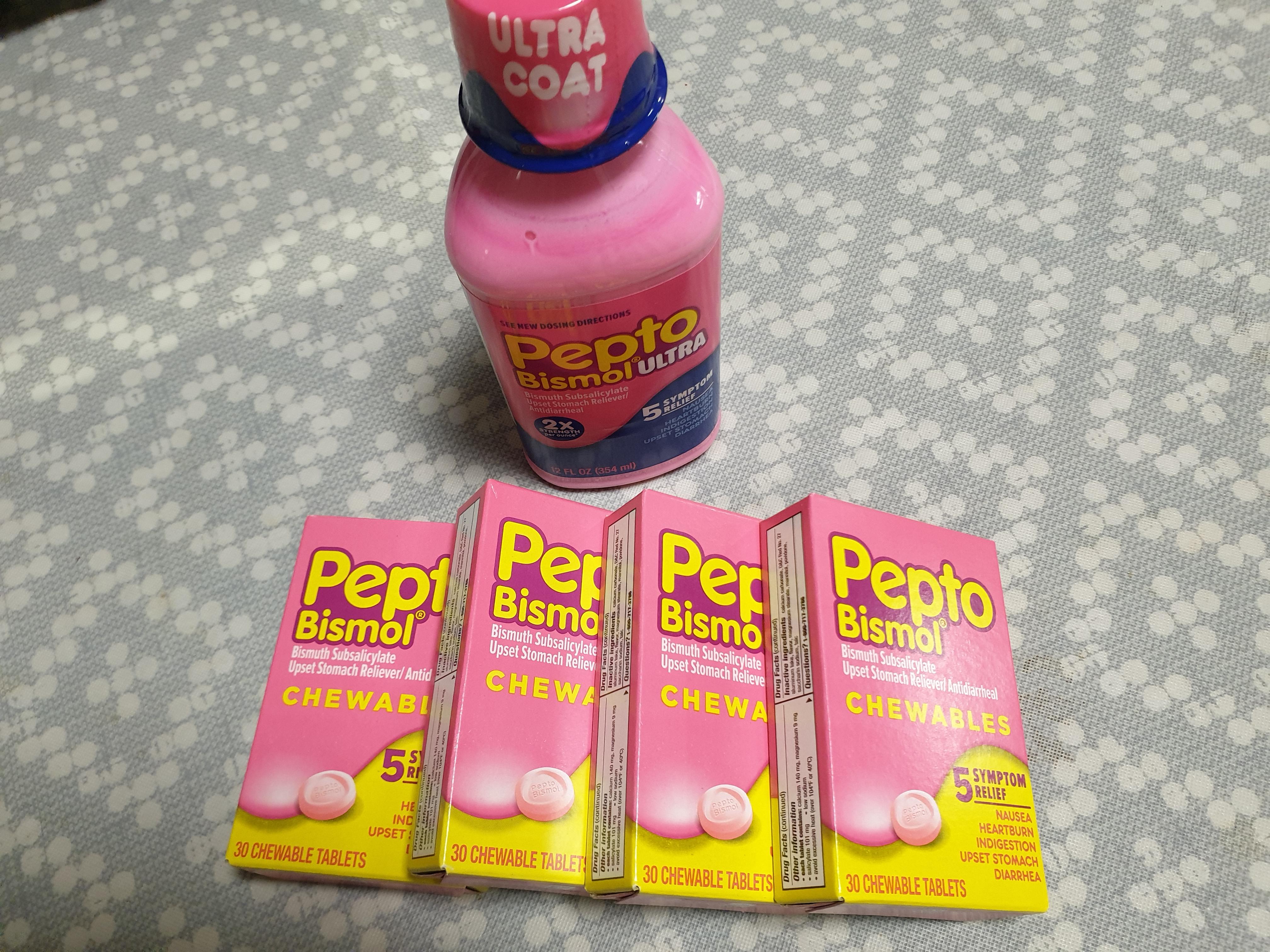 미국 소화제인 펩토비스몰 Pepto Bismol은 리퀴드, 타블렛, 리퀴드 캡 등 의 여러 타입이 있지만 전 리퀴드와 타블렛을 가정상비약으로 구비 해두고 있습니다.