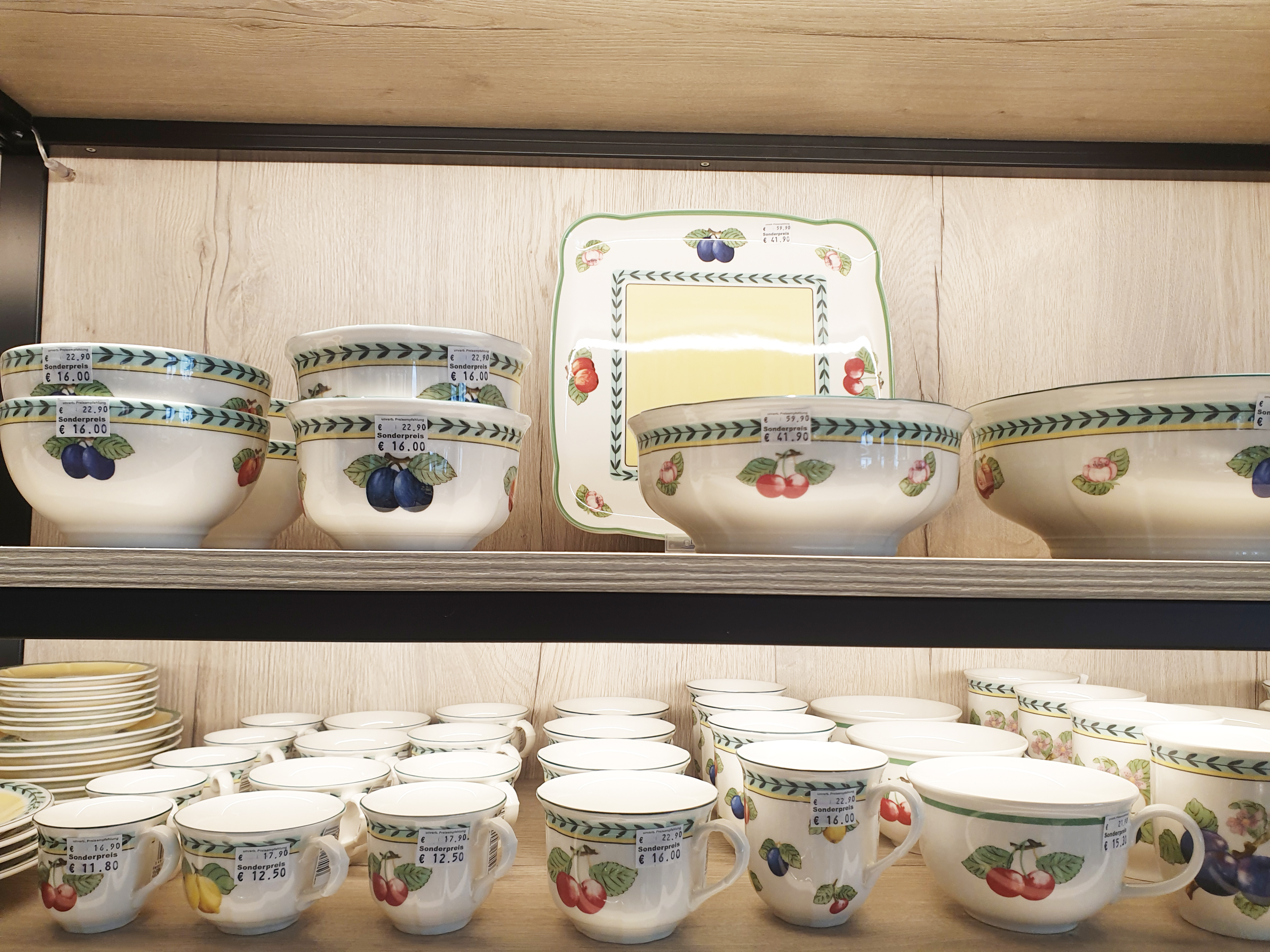 매장은 큰편은 아니었는데 종류가 굉장히 다양하게 있었고 독일 빌레로이앤보흐 일반 매장에서 보기 힘든 아우든이나 디자인나이프 등 아웃렛에서는 볼 수 이 있었습니다. 전체적으로 가격은 30프로 정도 저렴했어요~ 다 구매해오고 싶을 정도로 그릇들이 하나같이 다 이뻤습니다. ㅎㅎ 독일 브랜드인 빌레로이앤보흐는 독일 아웃렛의 가격은 어떤지 궁금하셨을 분들에게 조금이나마 도움이 되셨으면 하네요 ^^.