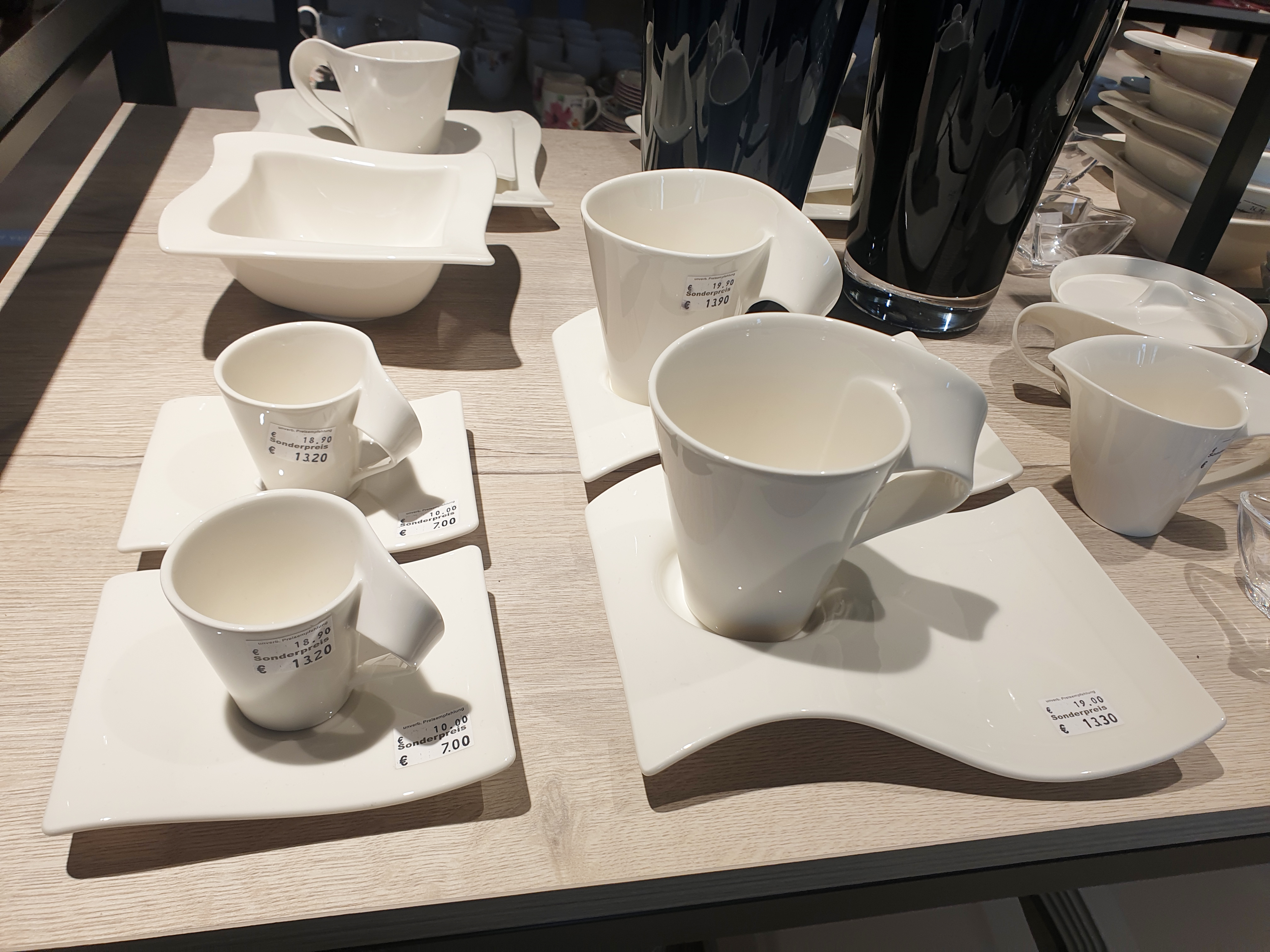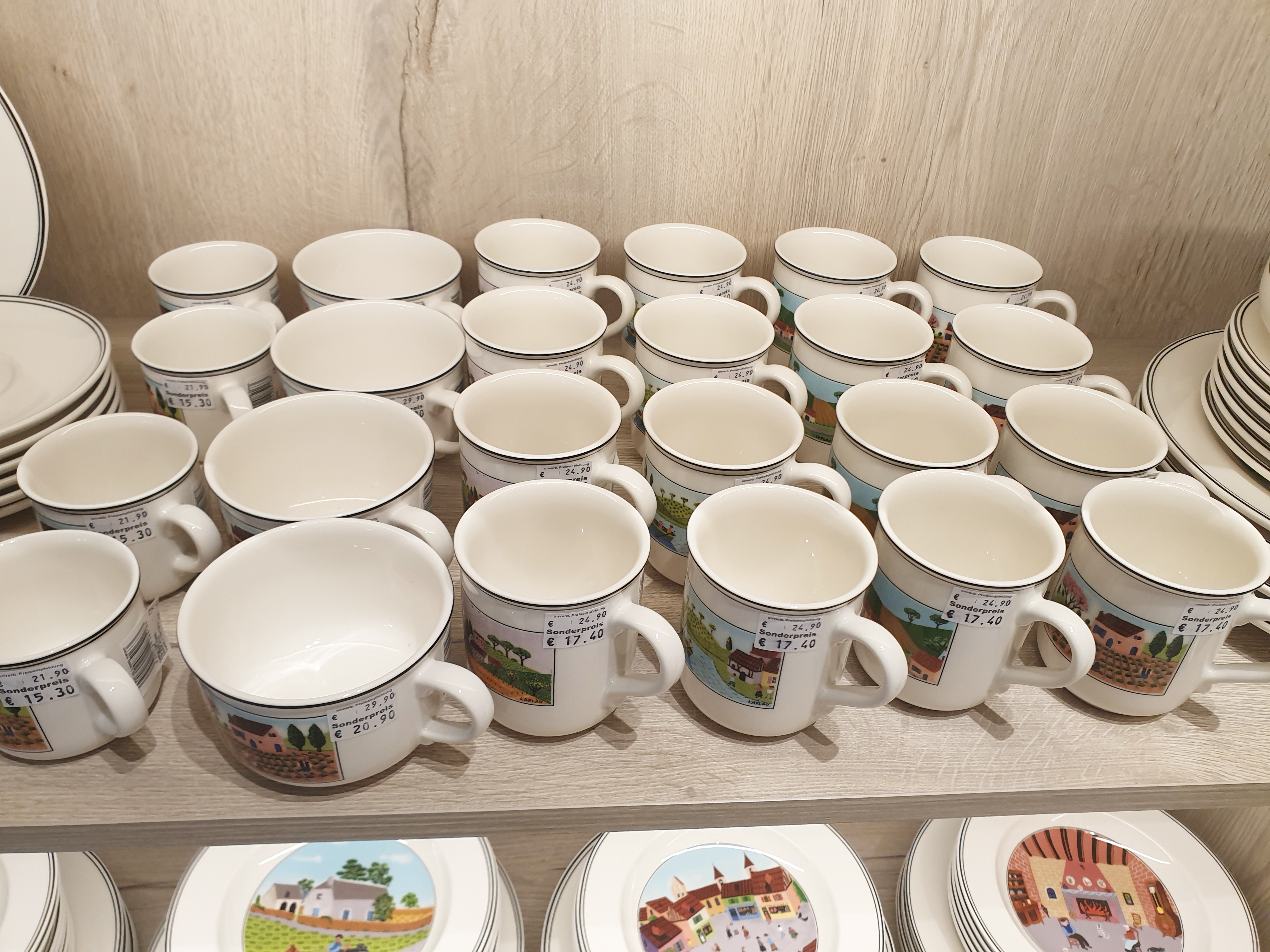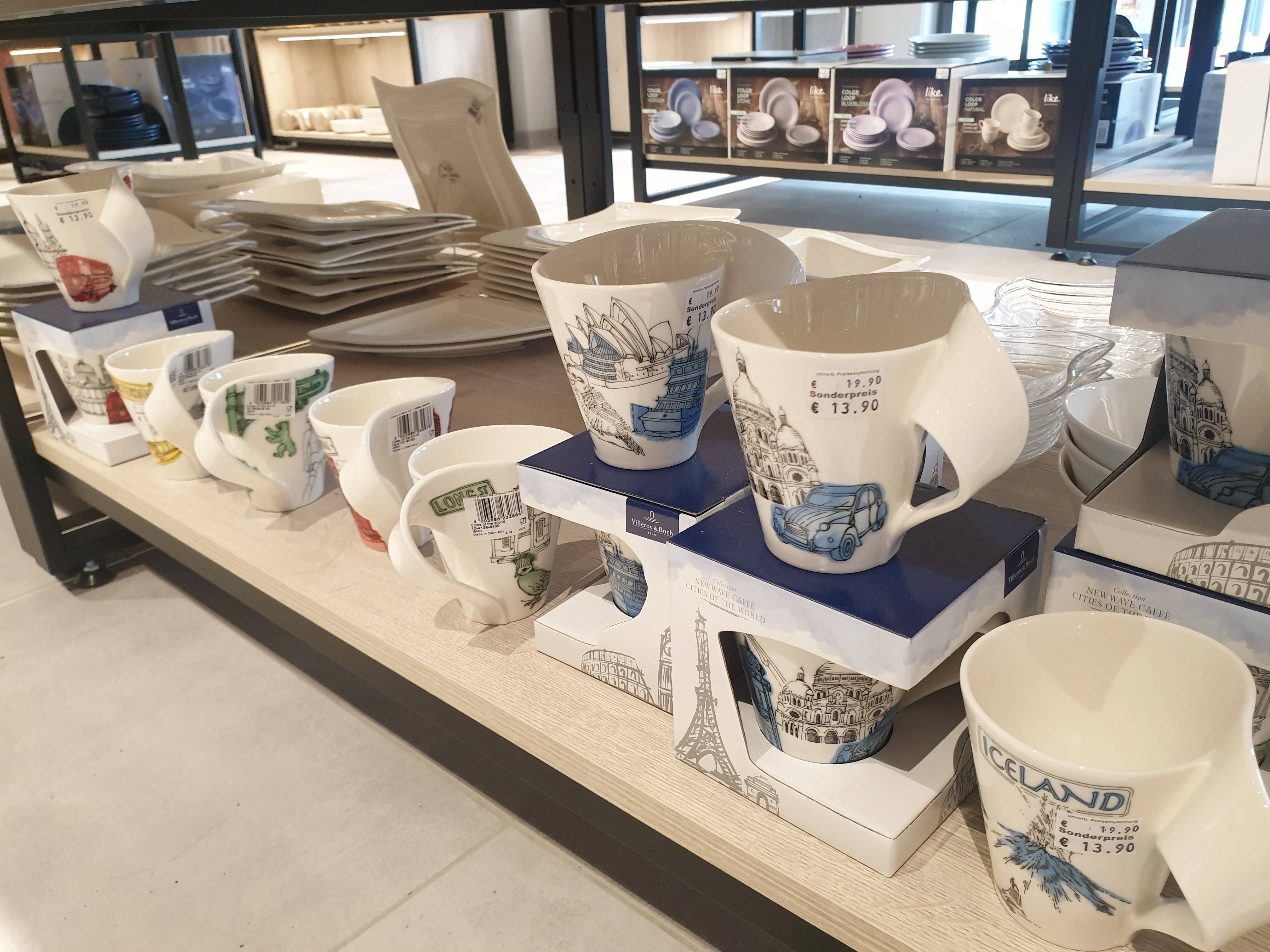 6월 18일에 독일 메칭엔 아웃렛에 몇 브랜드가 새로 오픈을 해서 아웃렛에 다녀왔어요~ 저번처럼 주말에 갔다가는 줄만 서다 올 것 같아서 이번엔 평일에 다녀왔습니다. 저와 같은 생각을 하시는 분들이 많은지 평일인데도 사람이 꾀나 있더라고요~ 그래도 주말보다는 오래 줄을 서지 않고 매장들을 둘러볼 수가 있었습니다. 그리고 이날은 워낙 날씨가 좋아서 메칭엔 아웃렛을 둘러보는 내내 기분이 좋더라고요~ 메칭엔 아웃렛에 가서 가장 먼저 들린 곳은 빌레로이앤보흐 매장인데 가격을 궁금해하시는 분들을 위해 사진으로 담아 와 봤습니다.