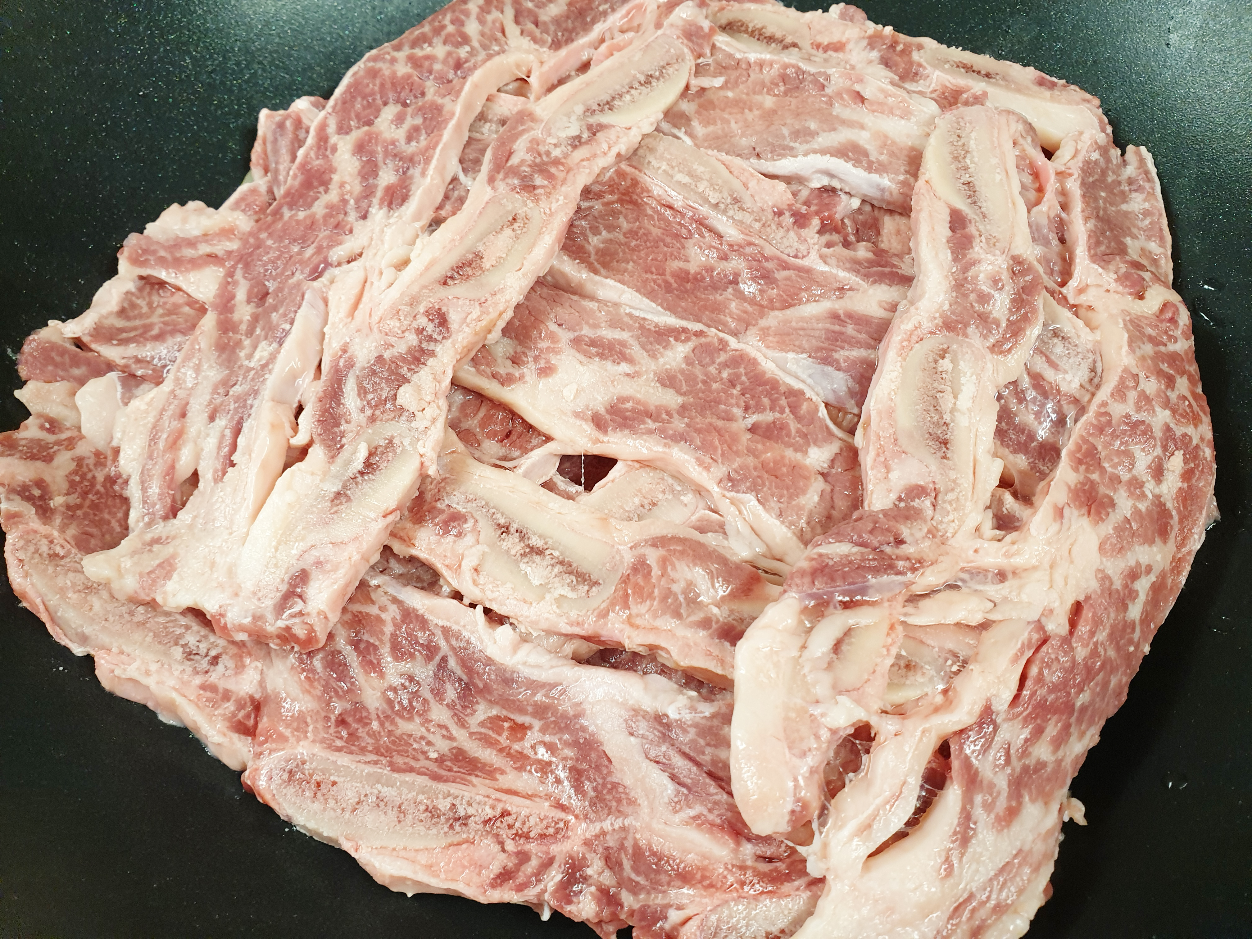3. 채소가 준비 됐다면 la갈비를 흐르는 물에 씻어줍니다. (기계로 써는 과정에서 뼛가루가 갈비에 붙기에 때문에 조리를 하기 전에는 꼭 흐르는 물에 씻어줘야 합니다. 씻지 않고 그냥 갈비를 조리하면 먹을 때 뼛가루가 씹혀요.)