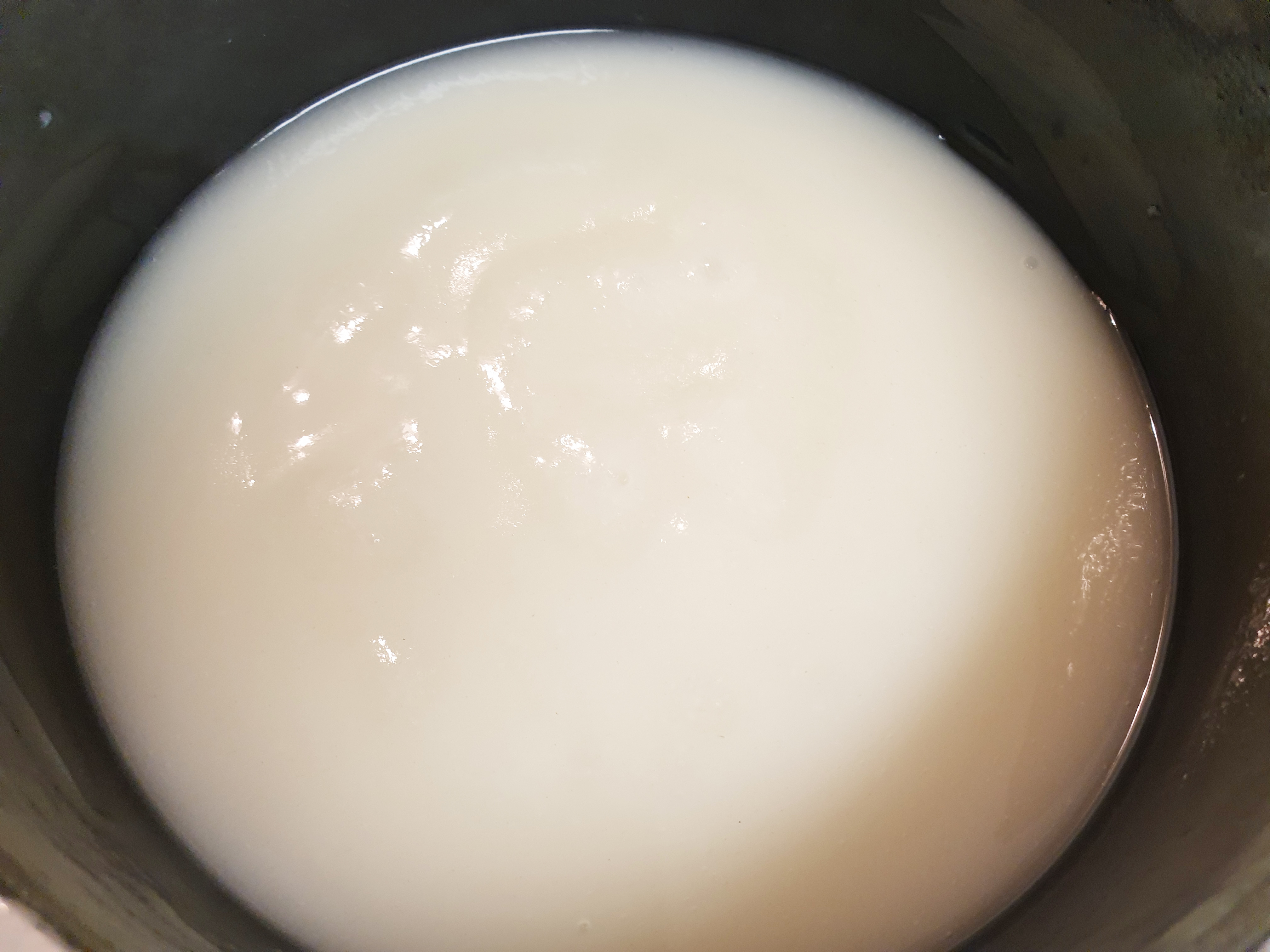 뭉친 밀가루가 없이 잘 풀어졌다면 약불에 두고 끓여 주면서 잘 저어주세요! 보글보글 끓기 시작하면 1분 정도 더 끓인 후 그릇에 옮겨 담아 식혀줍니다. 양념을 더 묽게 만들고 싶다면 밀가루 풀을 두배로 만들어 주세요!