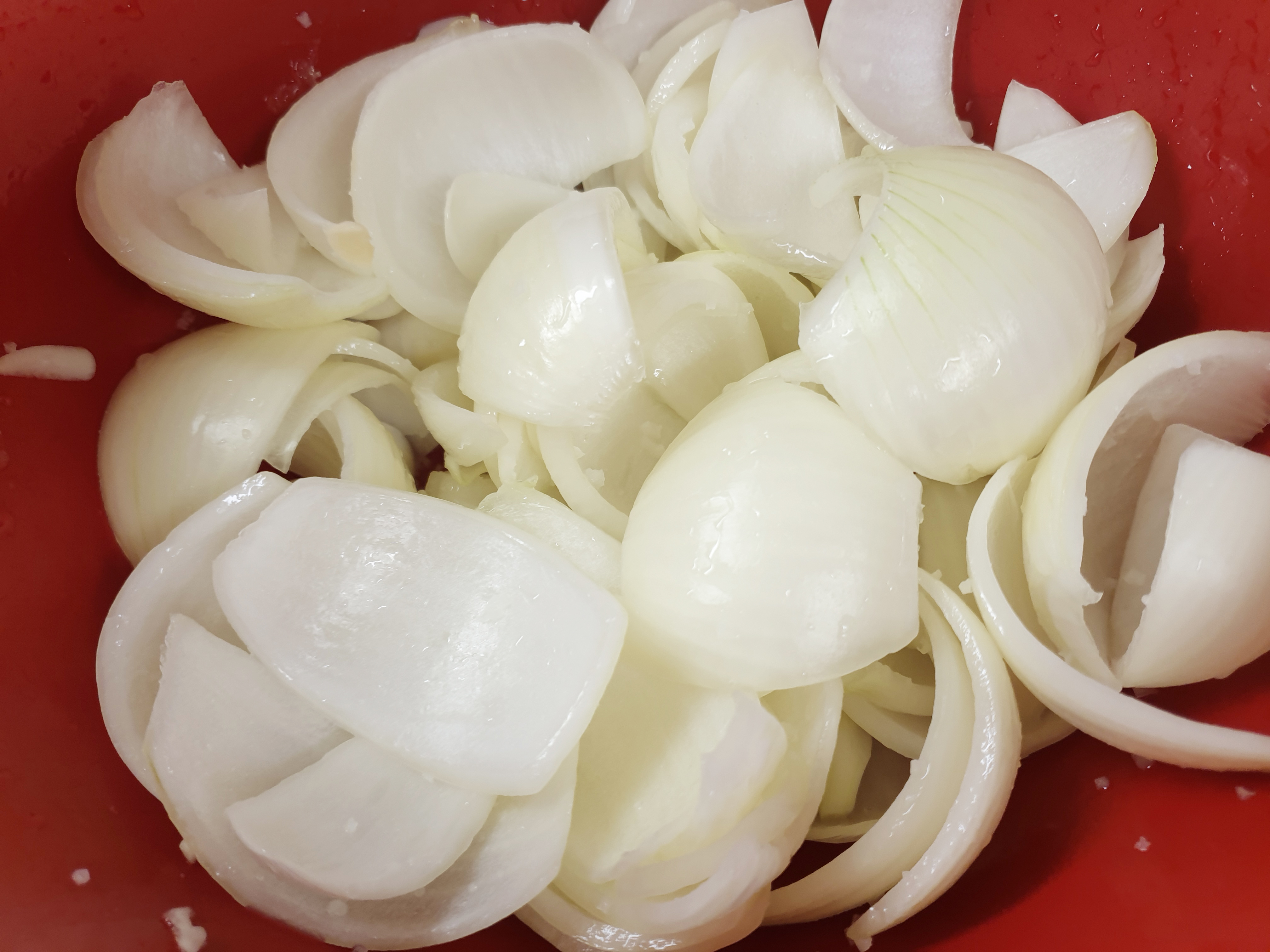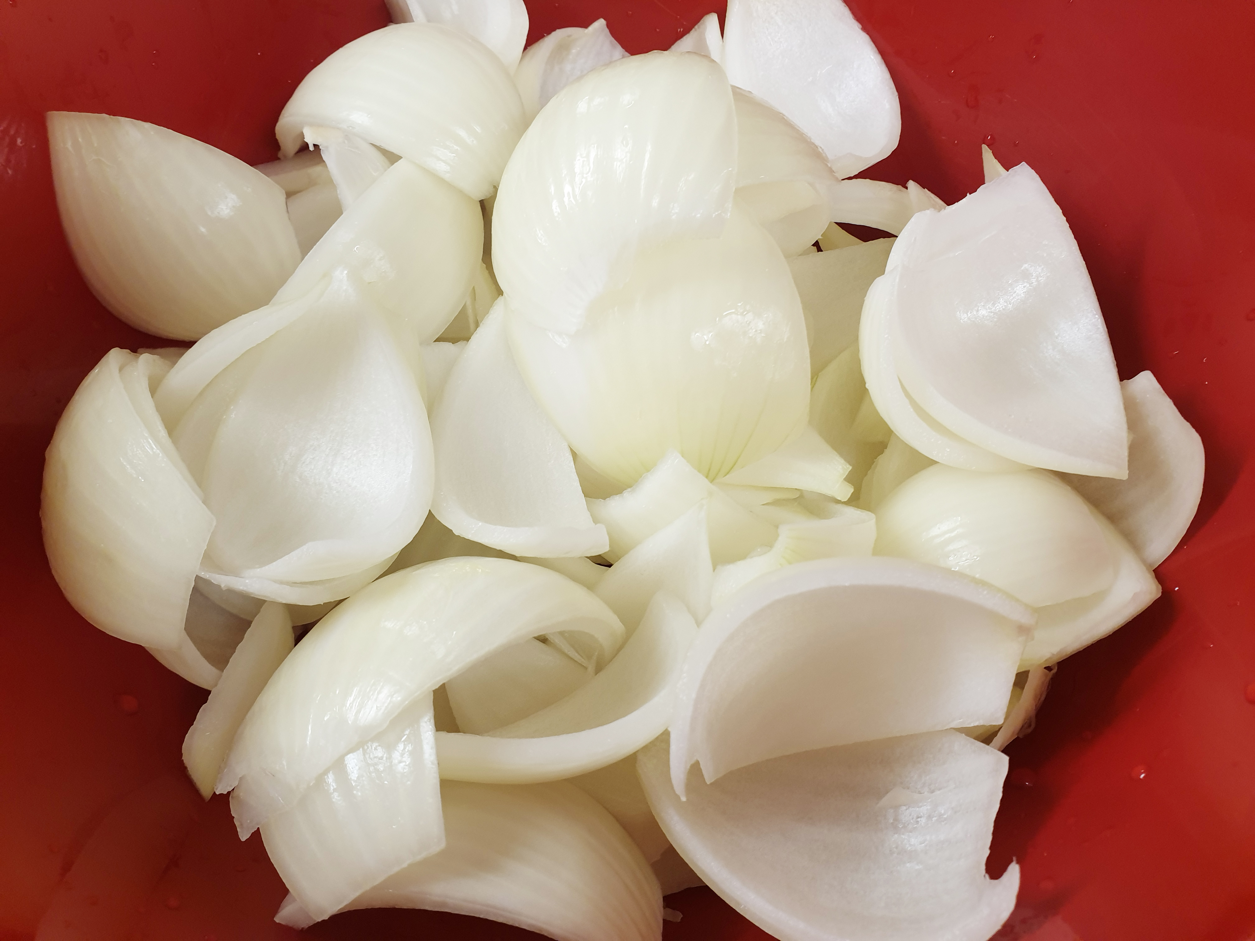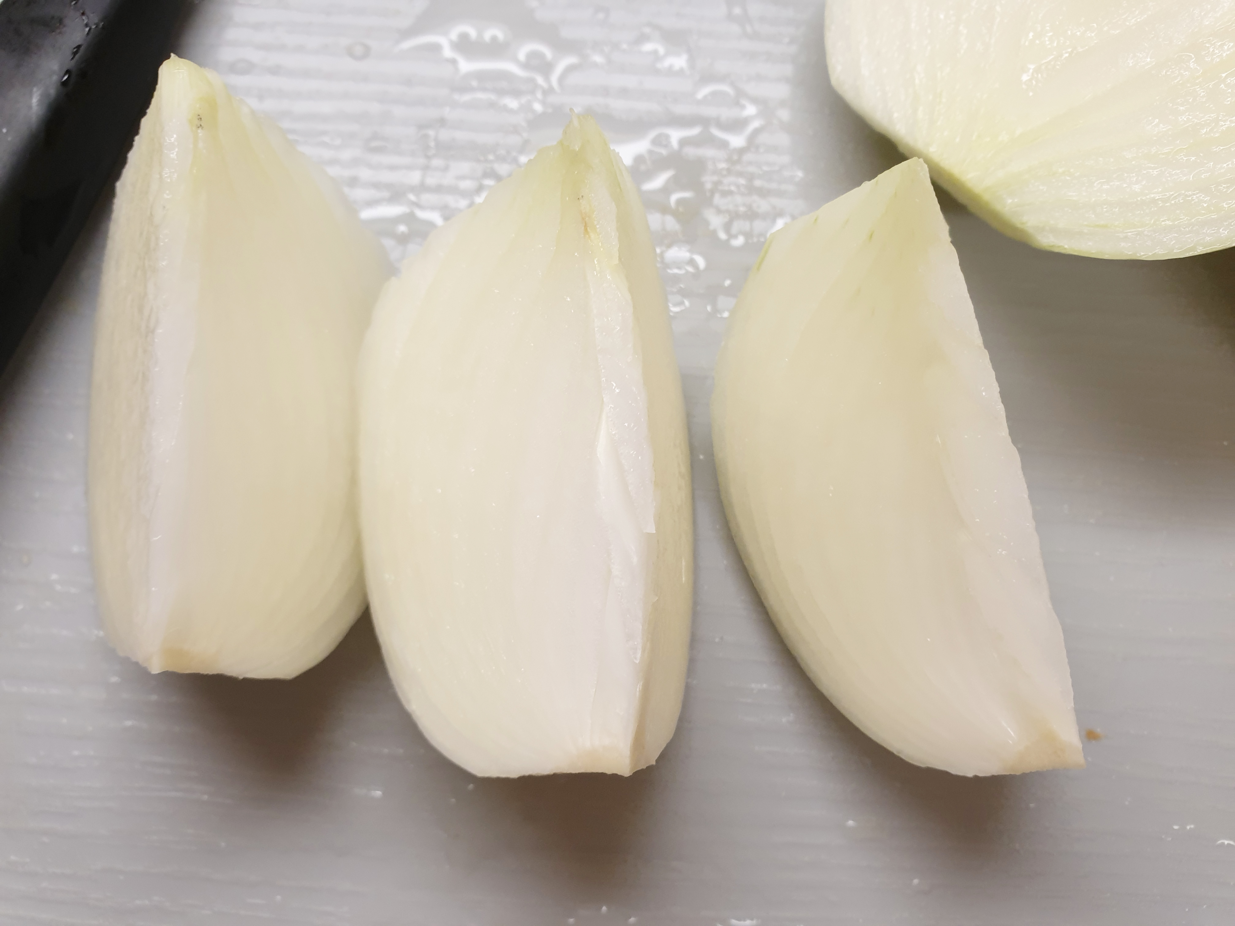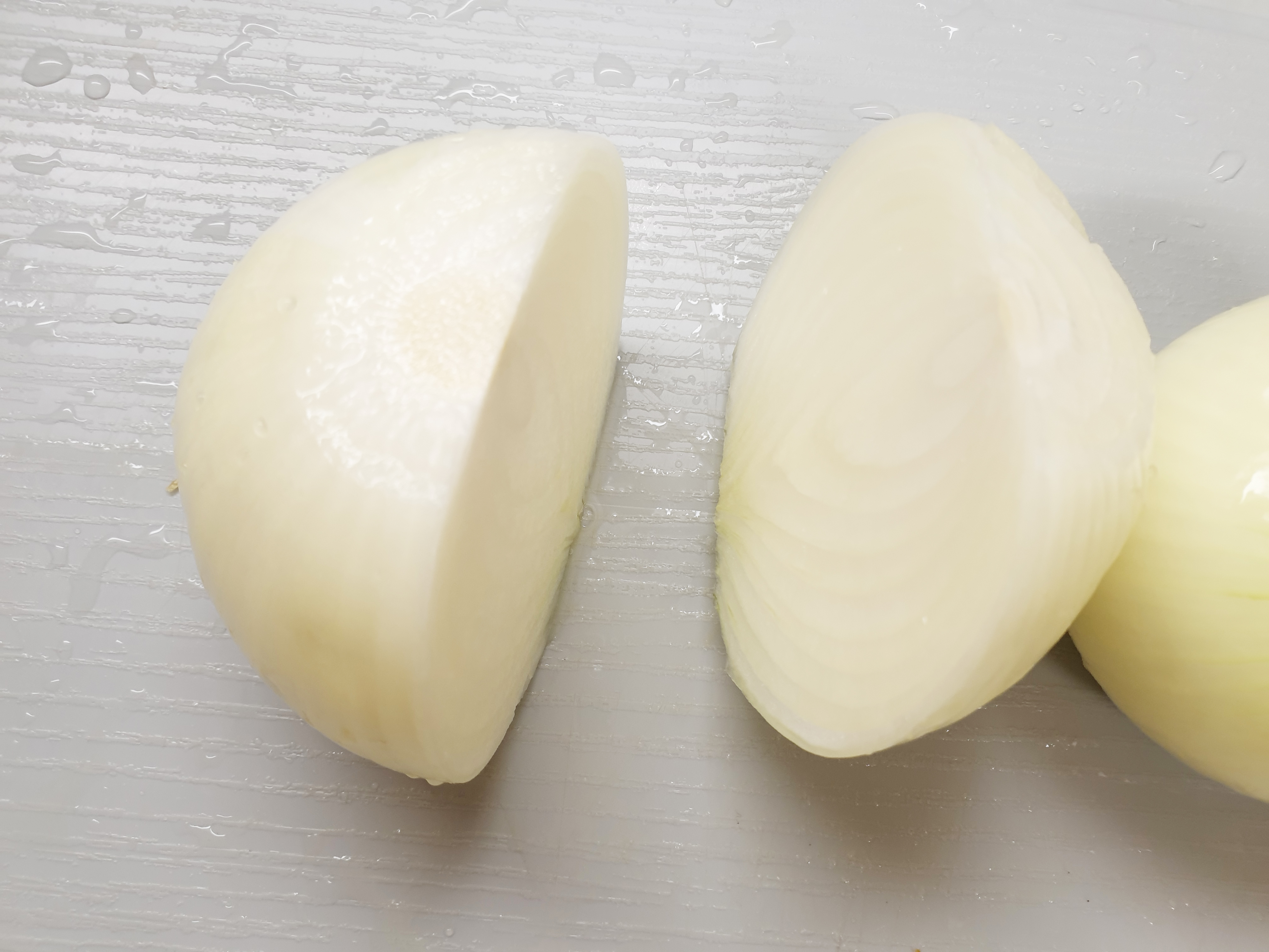 앙파를 반으로 자른 뒤 다시 3등분으로 잘라줍니다. (양파 크기에 따라서 먹기 좋은 크기로 잘라 주시면 됩니다.)