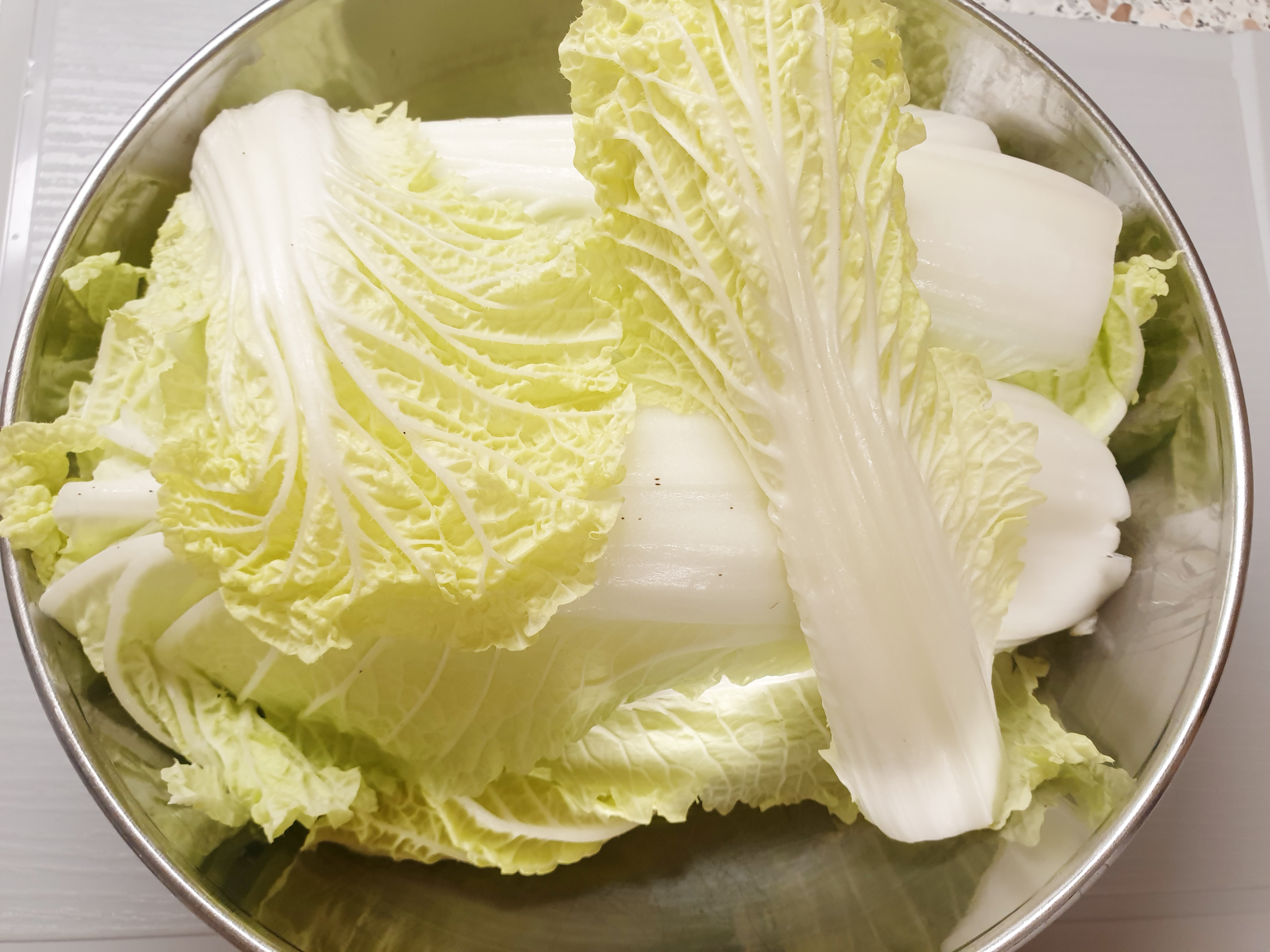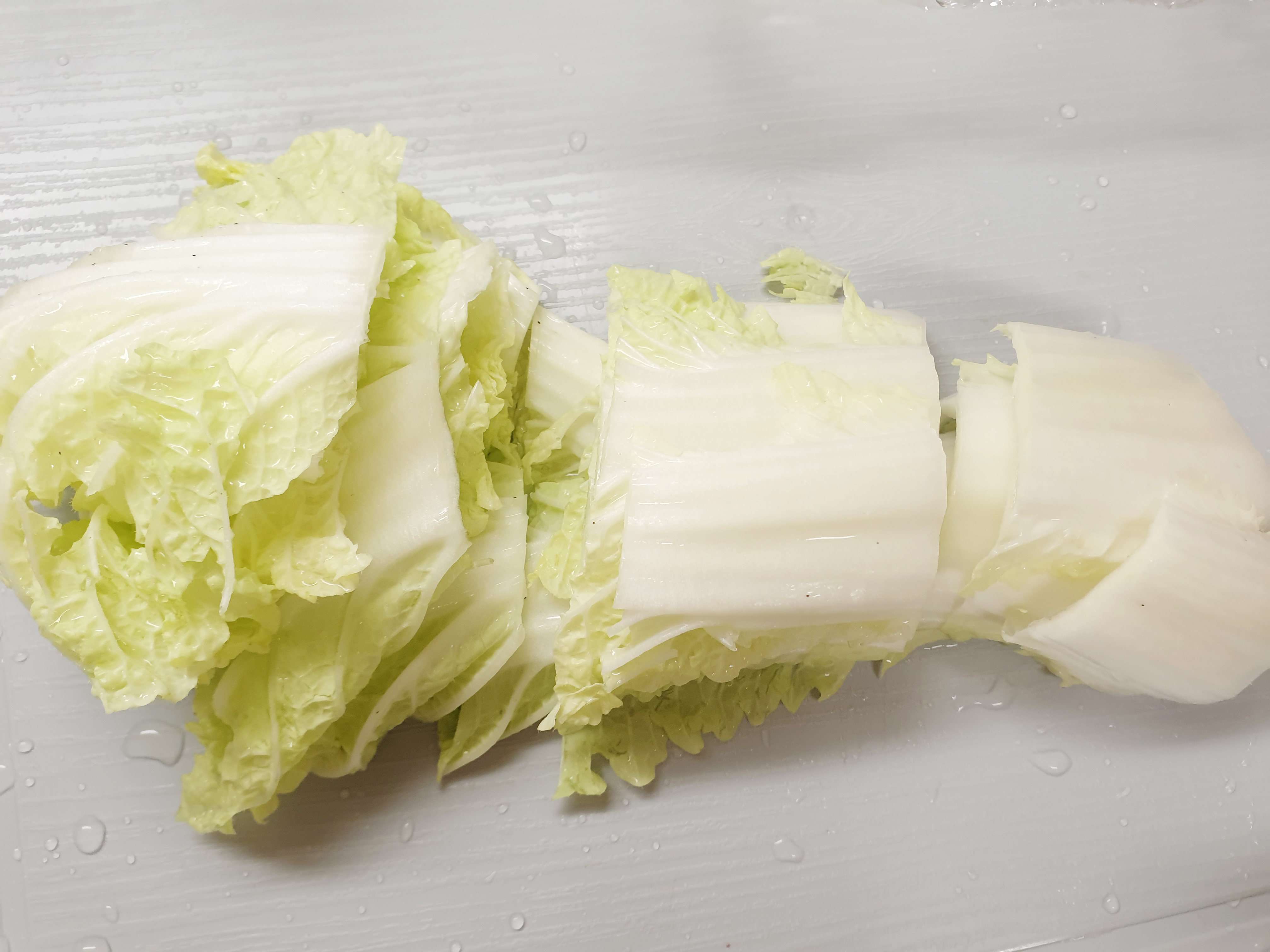 가장 먼저 소고기 배추 된장국에 들어갈 재료를 준비해 주는데 알배추(10장)는 흐르는 물에 깨끗이 씻은 후 먹기 좋은 크기로 잘라주세요! 전 3등분을 해줬어요!