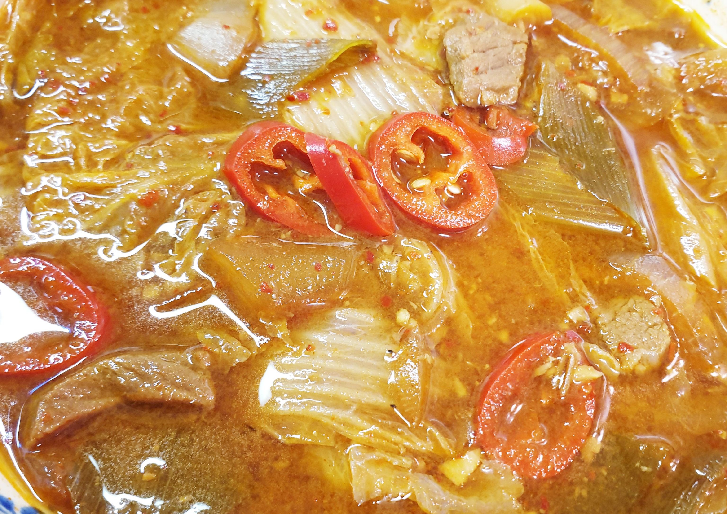 이렇게 얼큰하고 시원한 소고기 배추 된장국이 완성됐습니다.