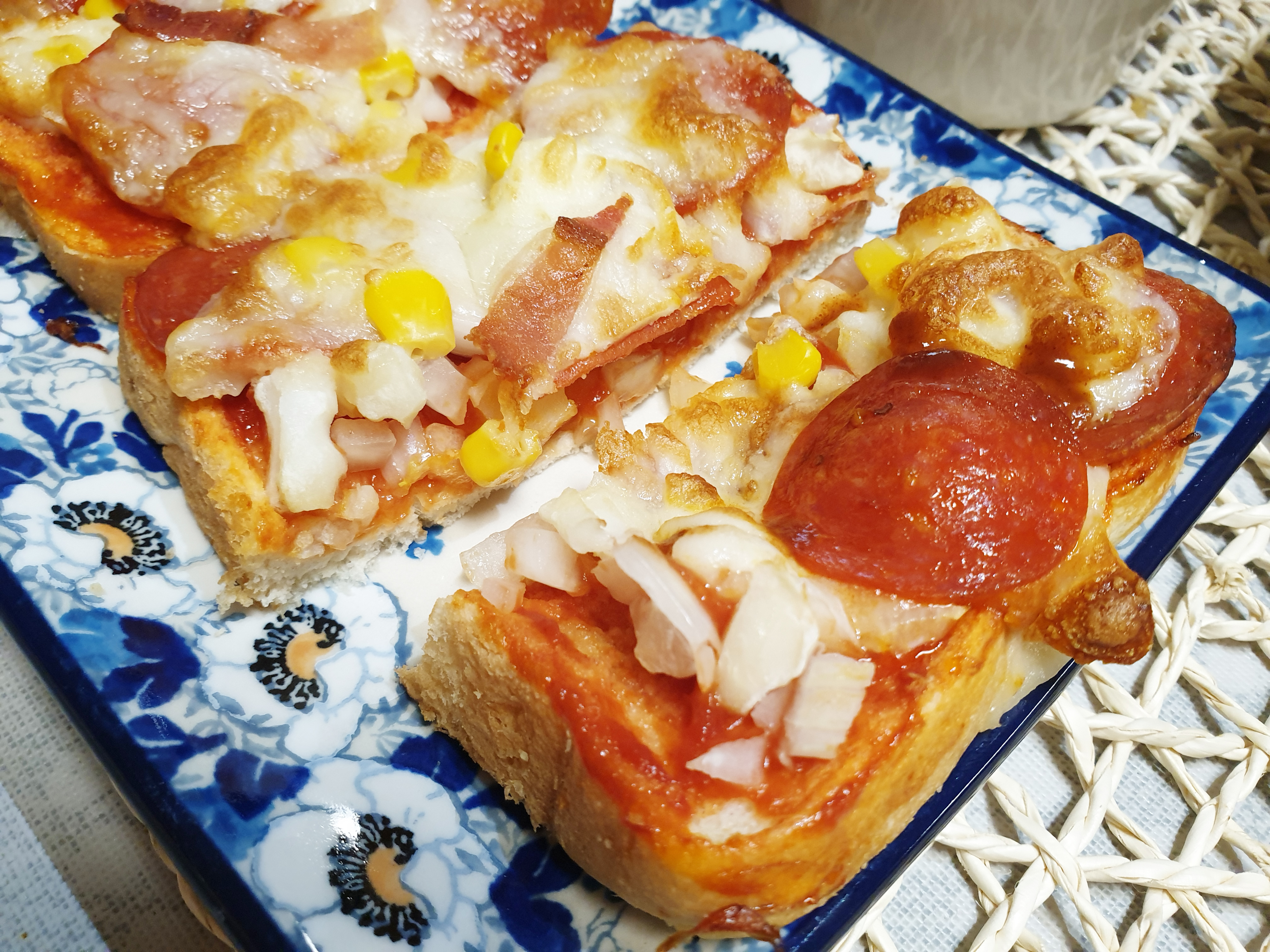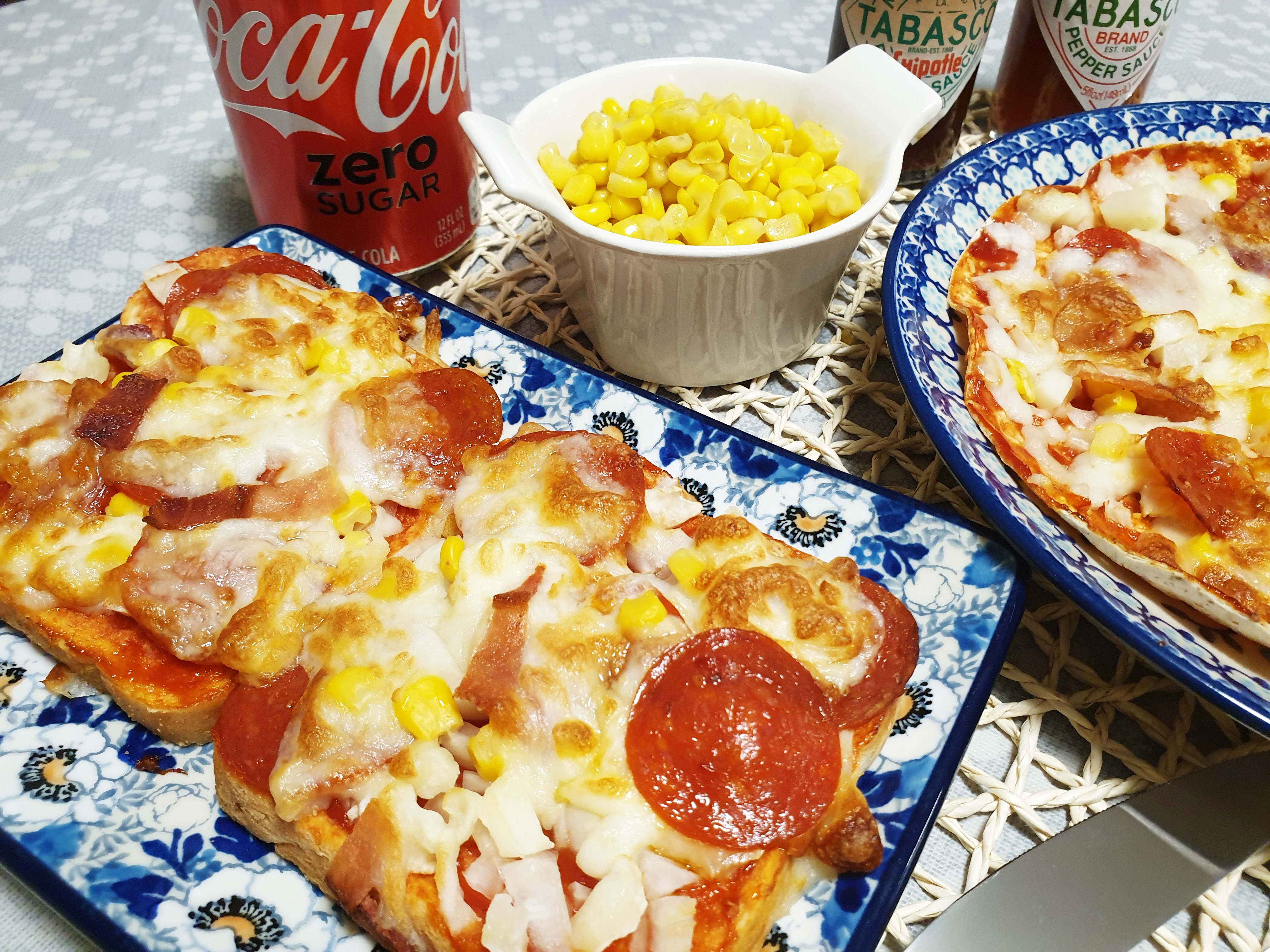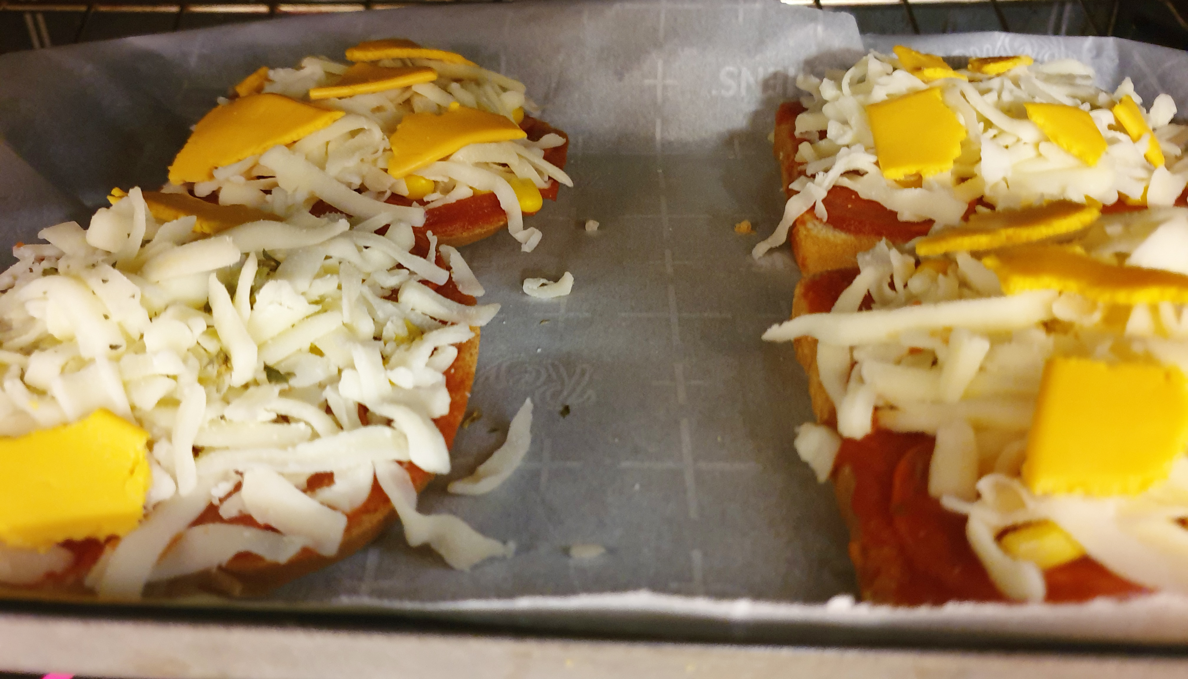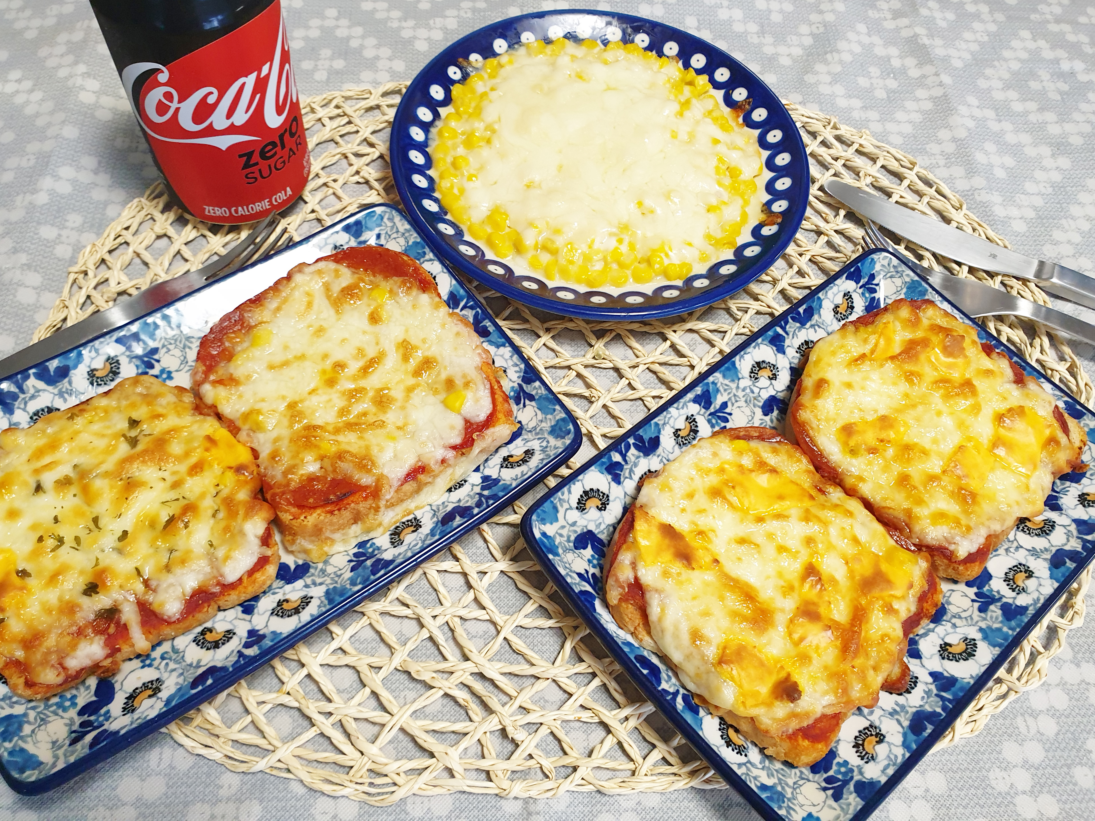식빵 준비 - 케첩이나 토마토소스 바르기 - 토핑 올리기 - 오븐을 200도에 맞추고 15~20분 간 구워주기