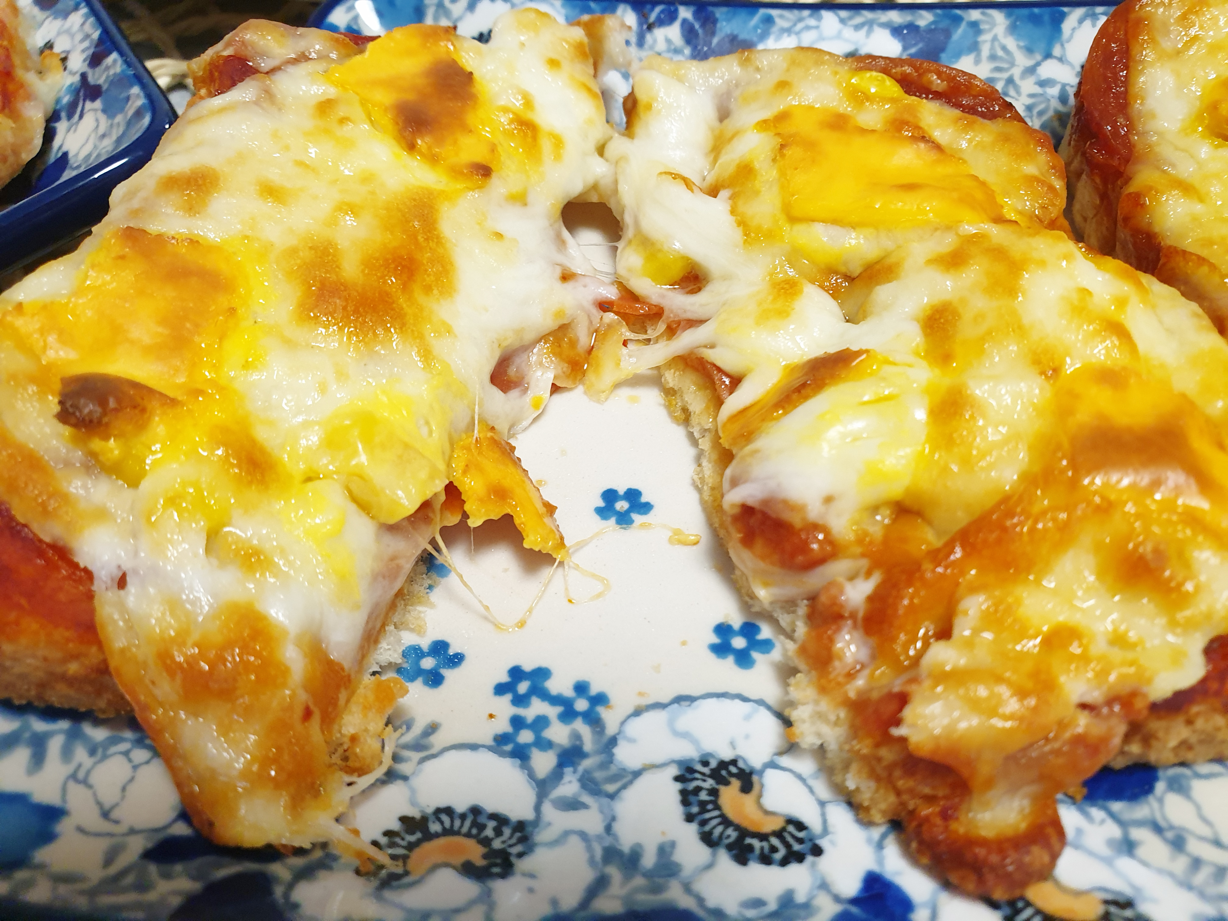 이렇게 에어프라이어를 이용해서 피자 토스트 완성! 에어프라이어를 사용했을 때 장점은 빠른 시간 내에 구울 수 있다 , 단점은 많은 양을 한 번에 굽지 못한다.