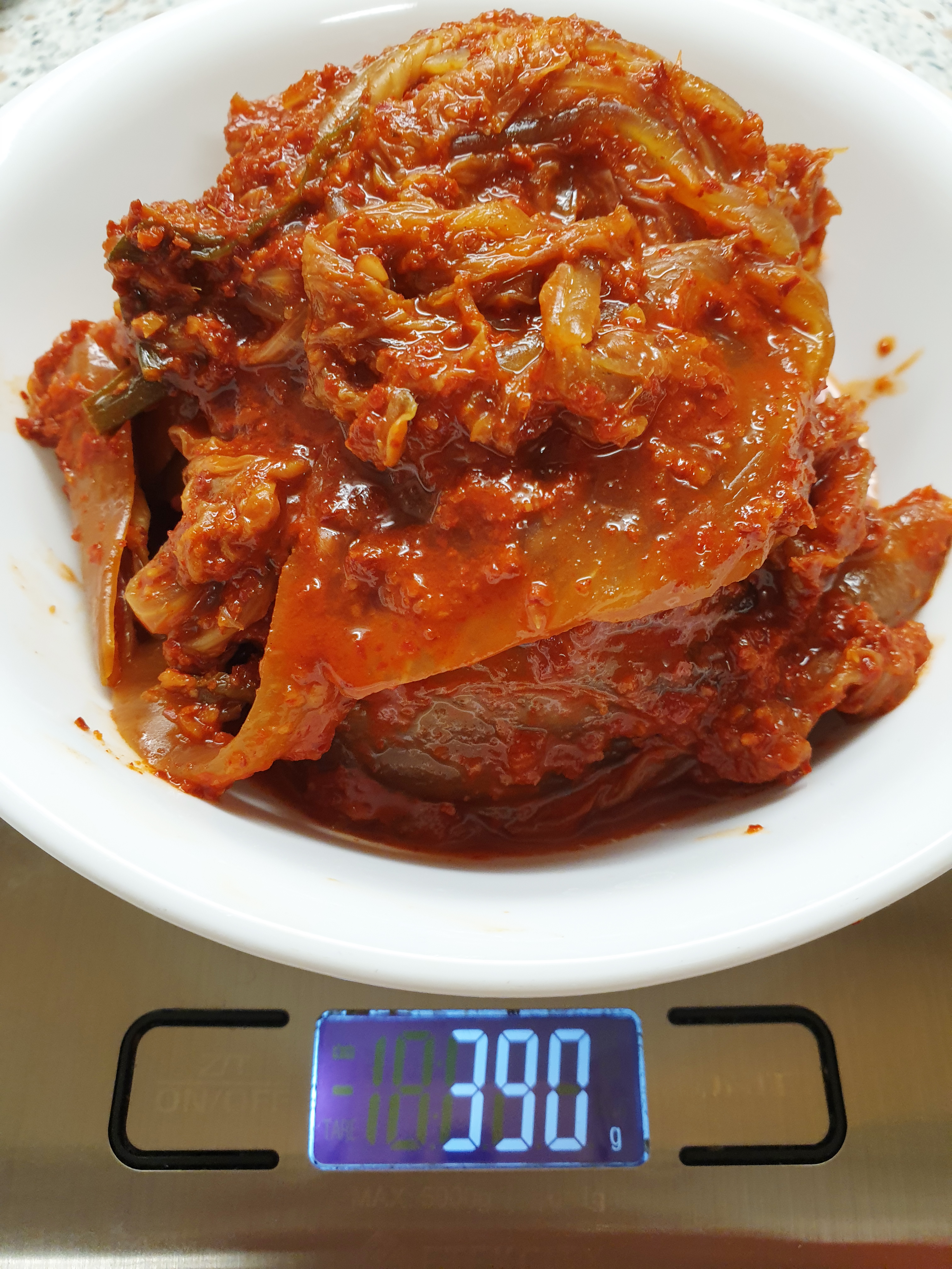 필요한 재료 : 신김치 390g , 목살 또는 삼겹살 400~500g , 파 1/4 개 , 대파 1대 , 홍고추 또는 청양 고추 1~2개 , 물 540ml
