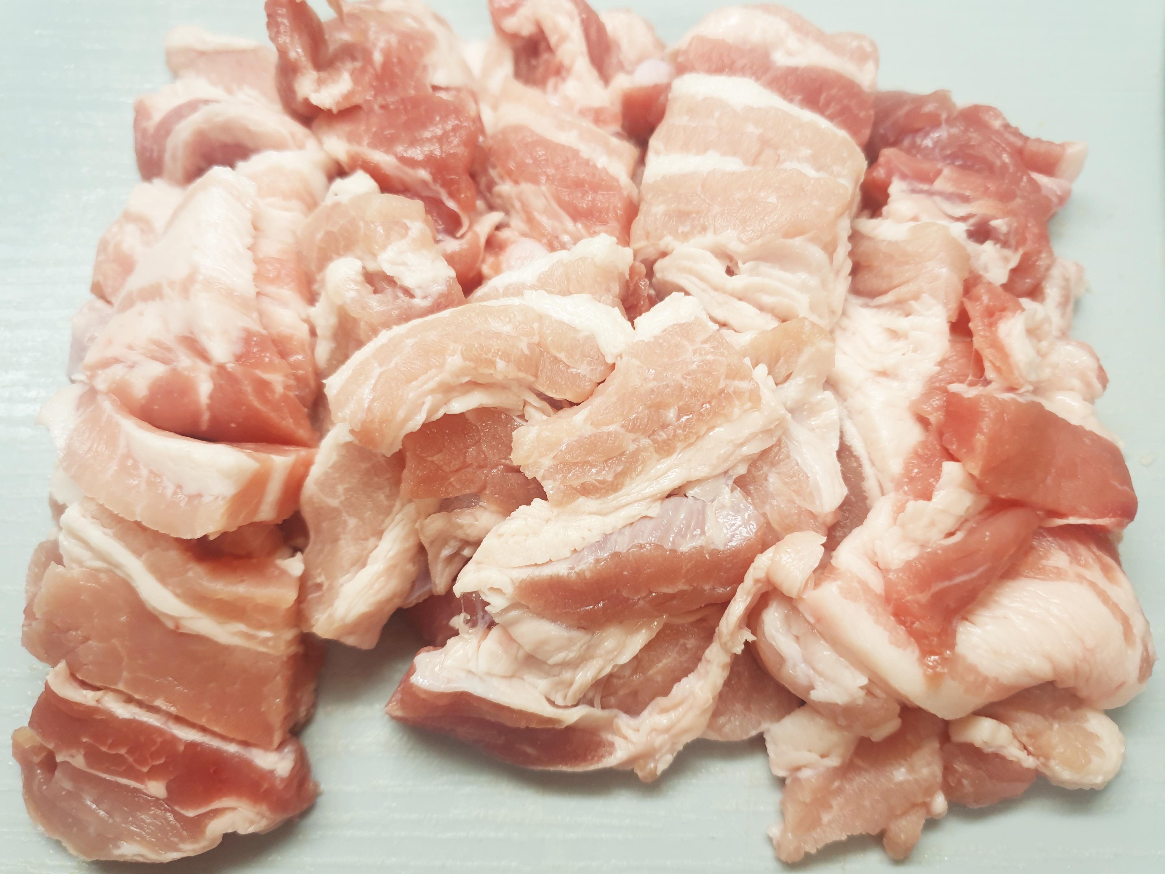 돼지고기가 썰어져 있지 않다면 돼지고기는 먹기 좋은 크기로 썰어 준비해주세요!
