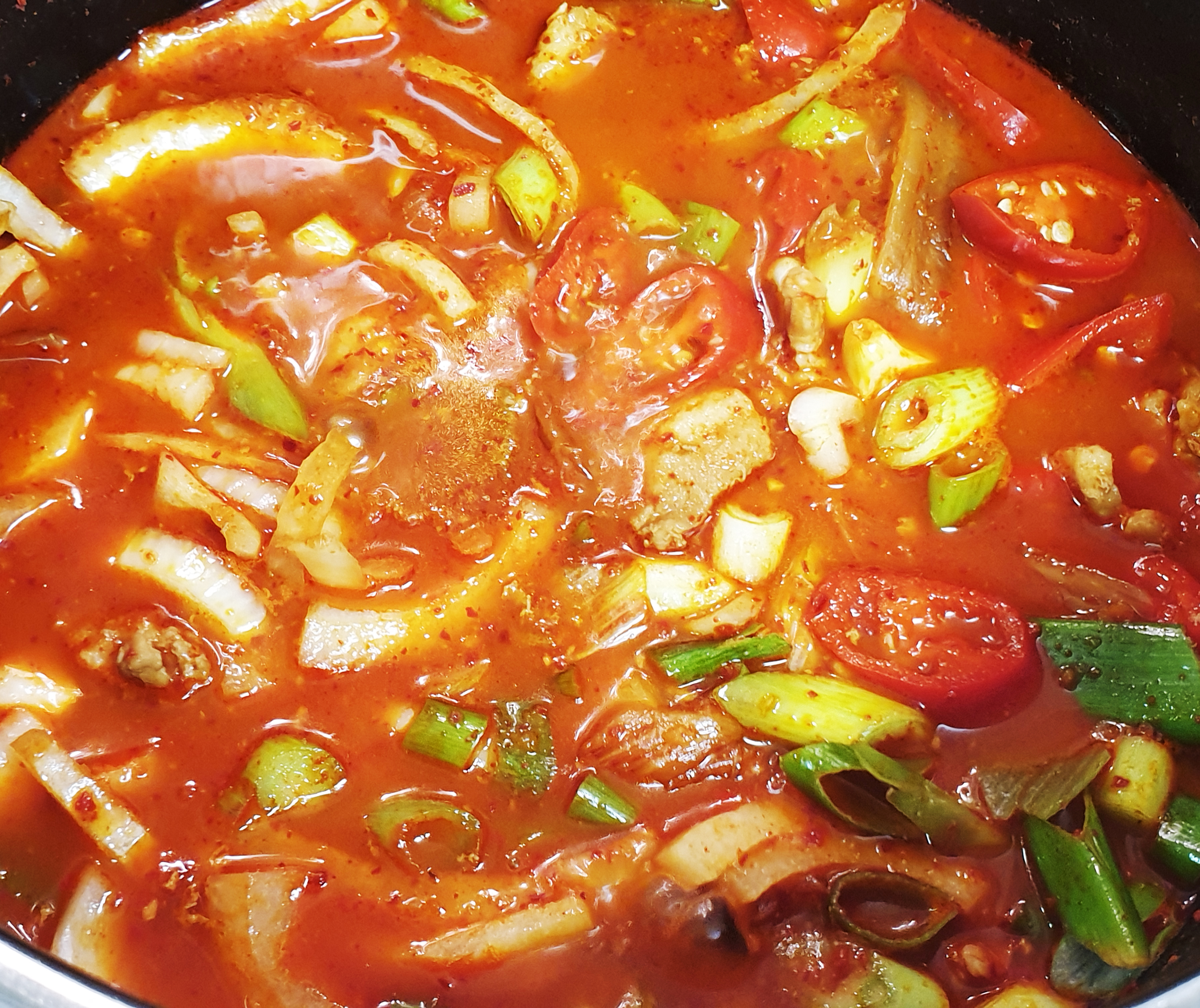 3. 돼지고기에서 생기는 불순물은 걷어내줍니다. (기름은 걷어내지 마세요!)
