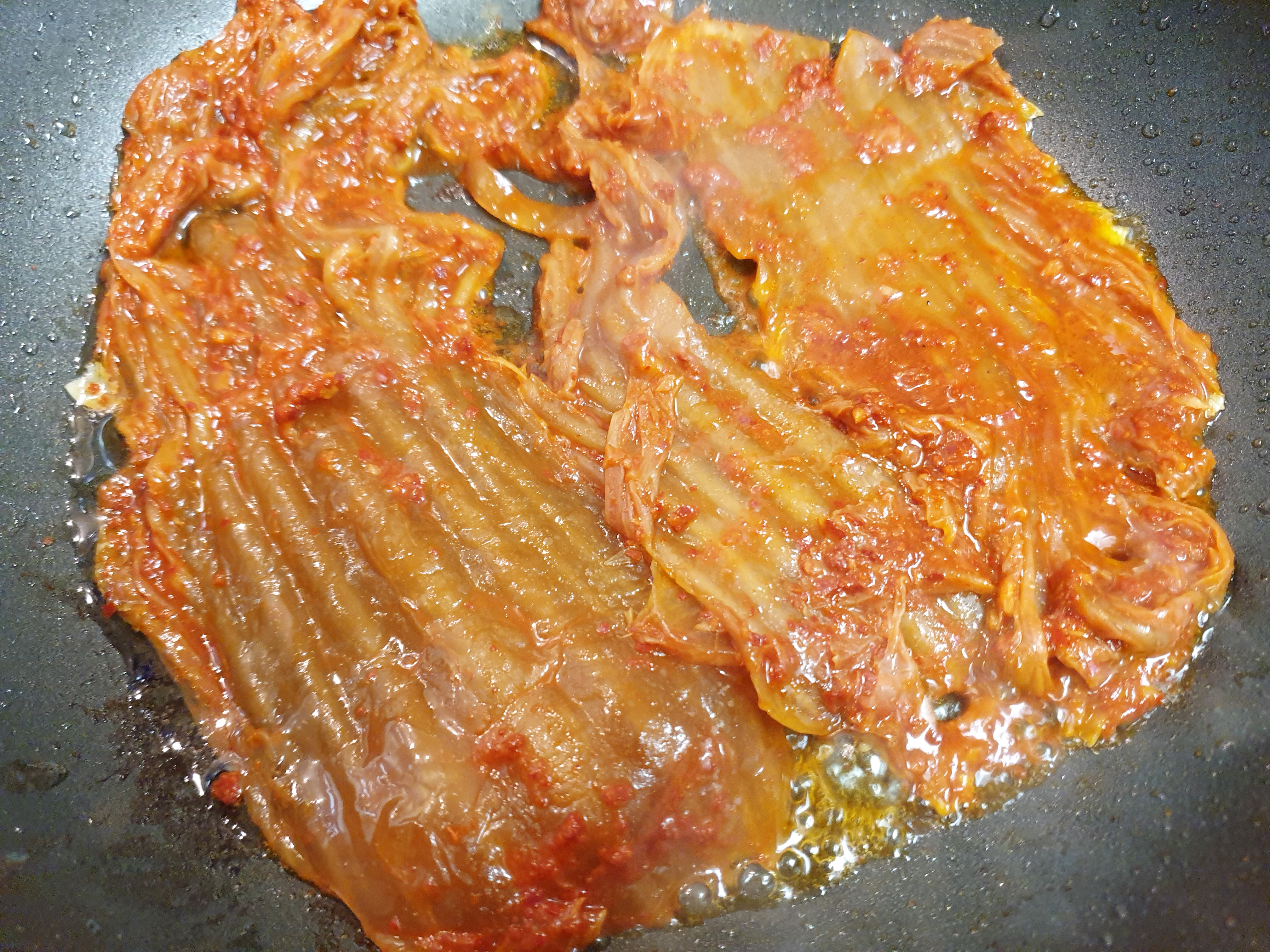 같은 방법으로 삼겹살 기름에 구운 김치를 넣고도 만들었어요~!