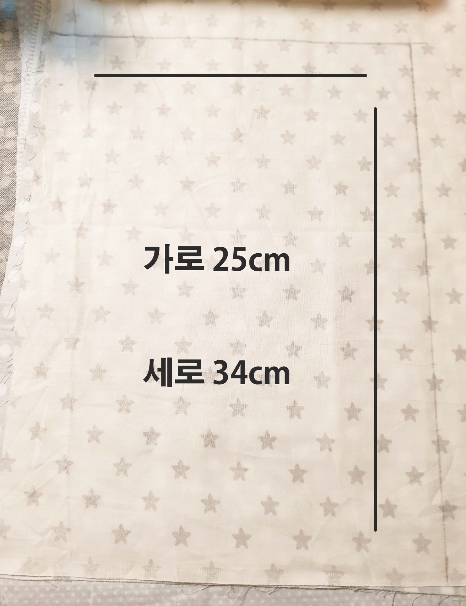 1. 먼저 가로 25cm X 세로 34cm의 천을 준비해줍니다.