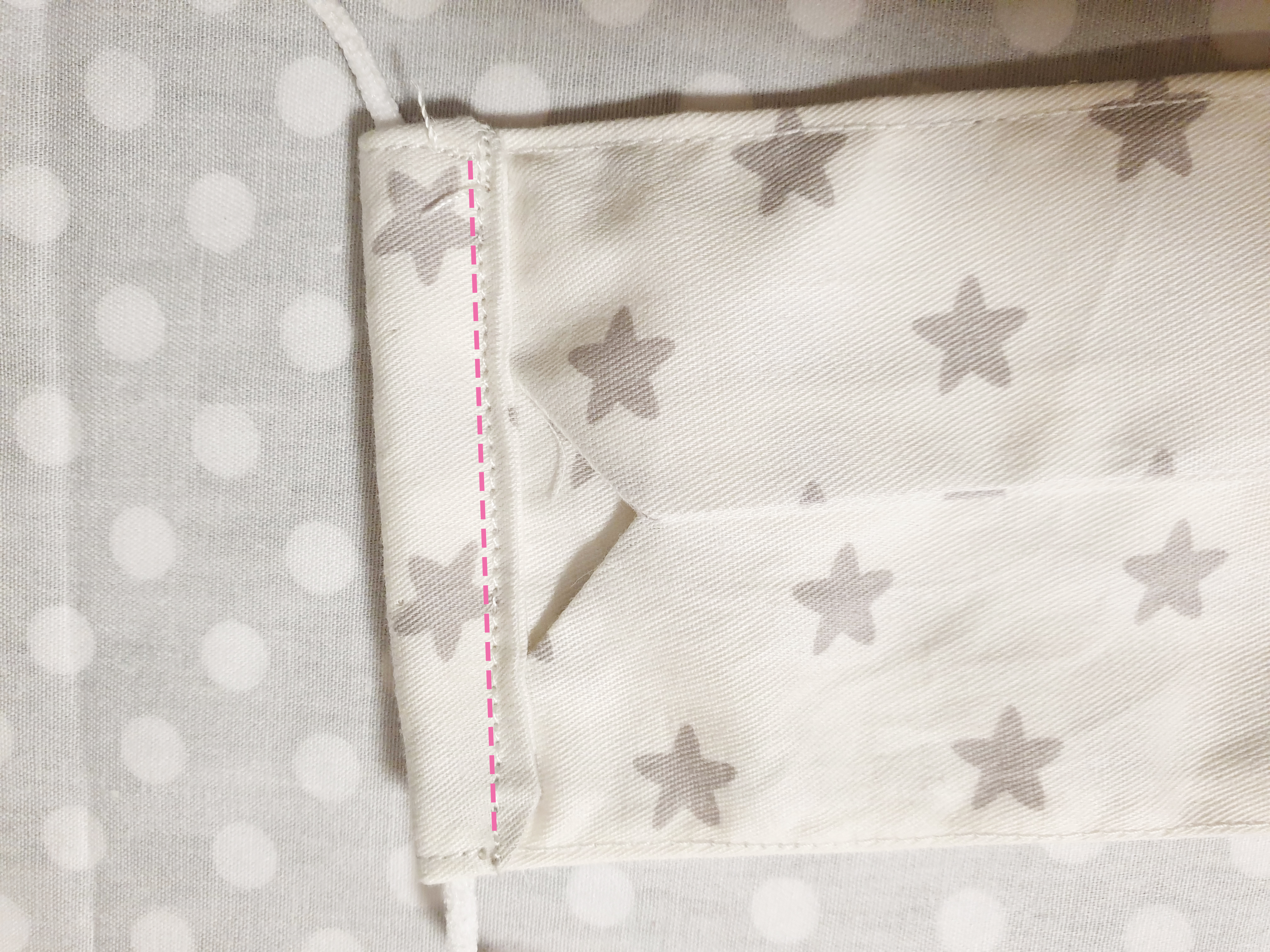 7. 박음질을 하지 않은 부분으로 천을 뒤집어 주고 다림질을 해주세요~