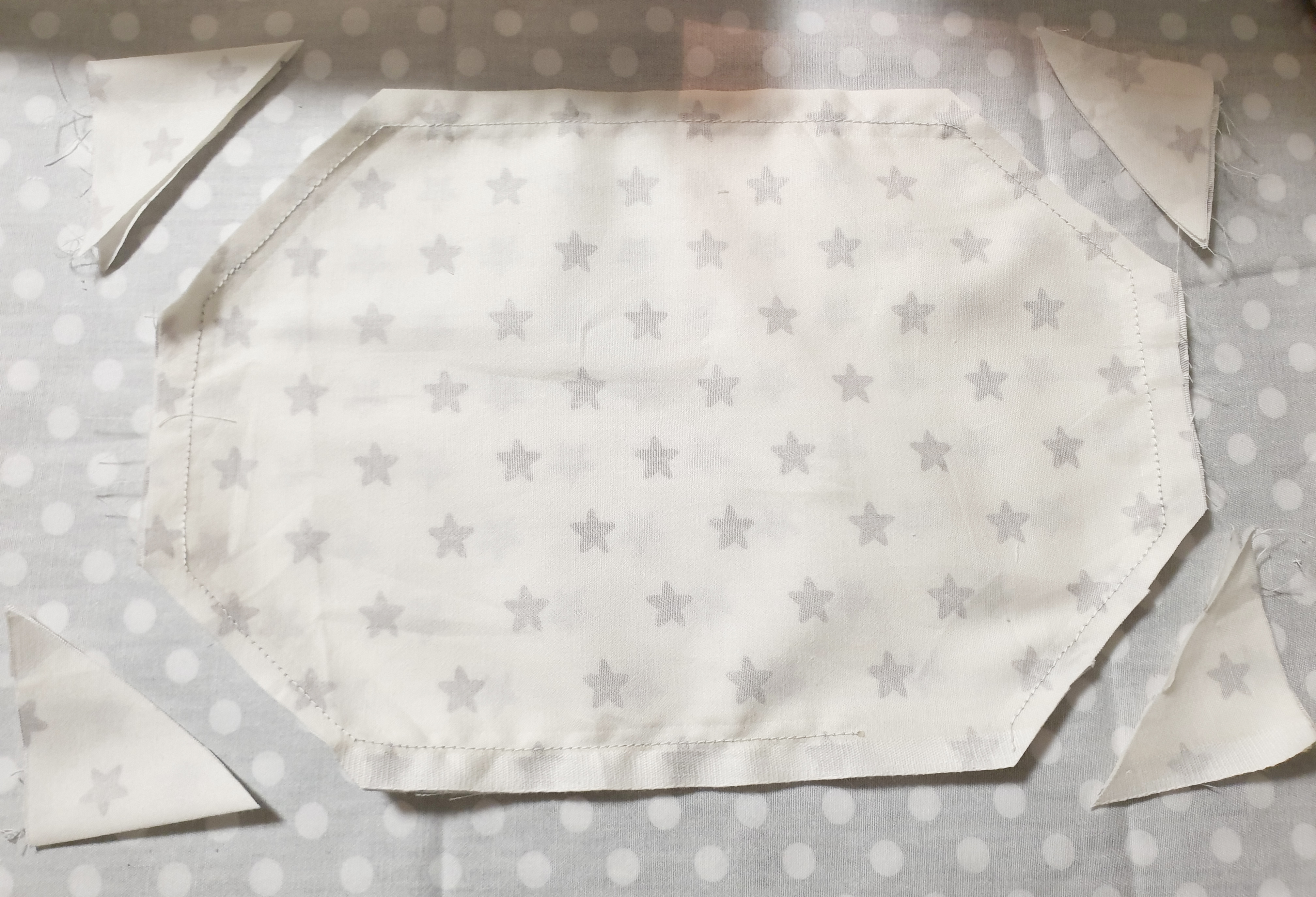 6. 각 모서리를 박음질 한 부분과 간격을 1cm 정도 두고 잘라줍니다.