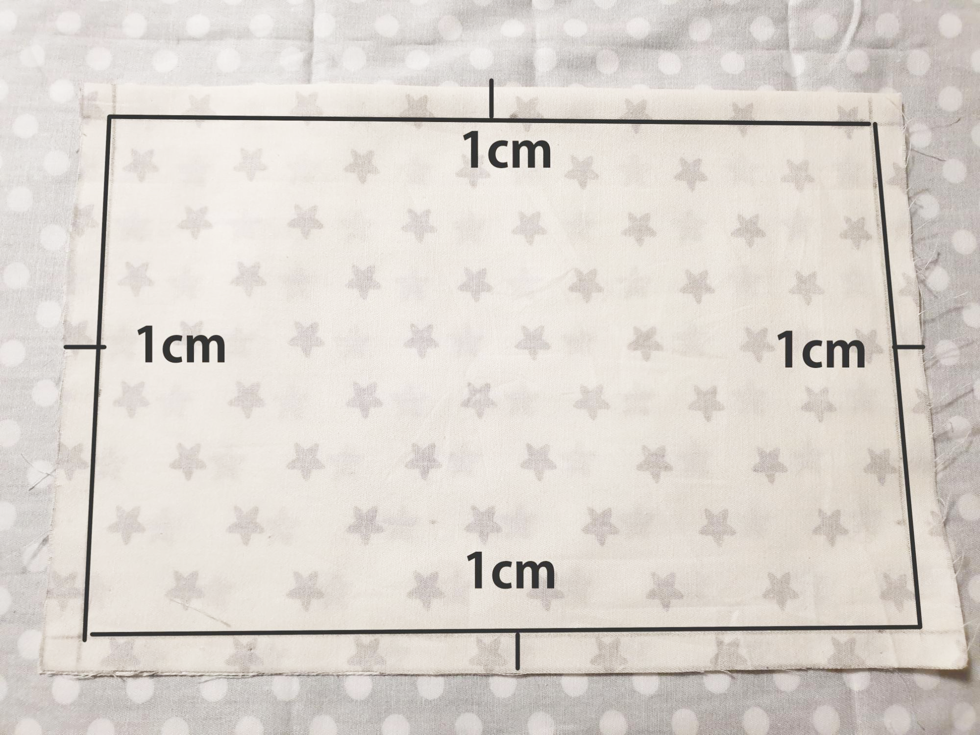 3. 반을 접은 천에 가로 세로 1cm 간격으로 선을 그어줍니다.