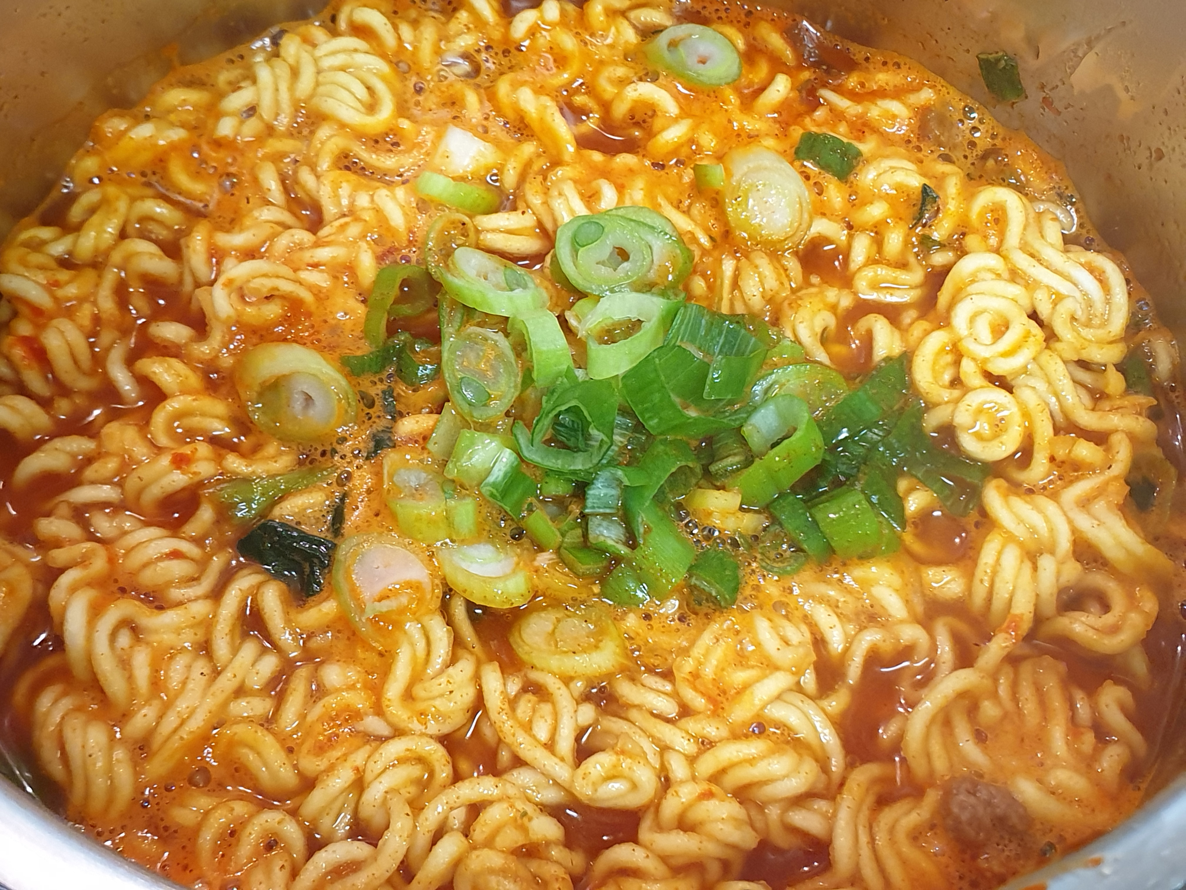 4. 면도 풀어주고 면이 서서히 익기 시작하면 썰어둔 대파를 넣어주세요~