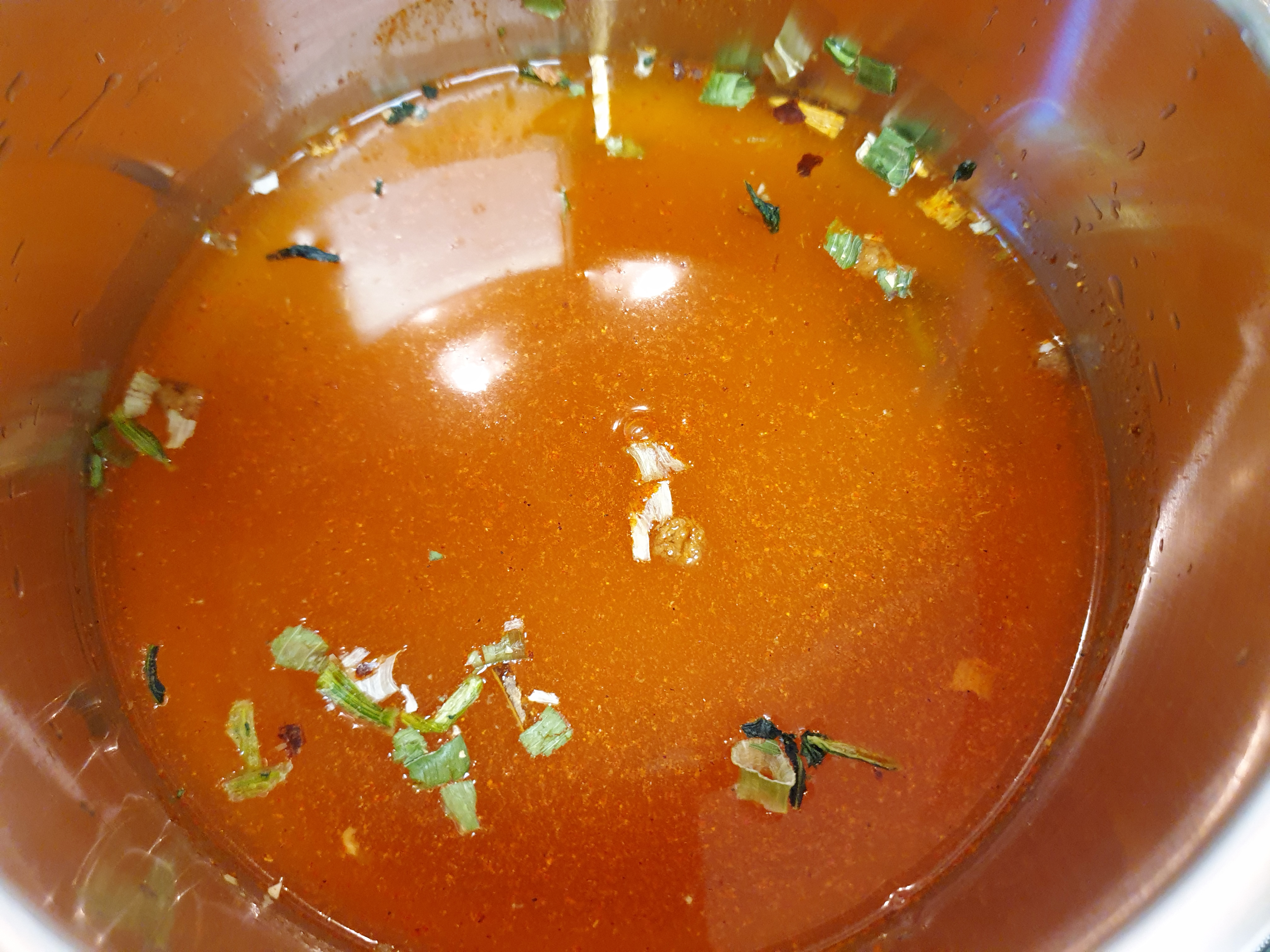 2. 냄비에 물을 종이컵으로 한 컵 반(270g) 넣고 라면수프 1/2를 넣어고 중불보다 센 불에 두고 끓여줍니다. (전 건더기 수프도 넣어줬어요~!)