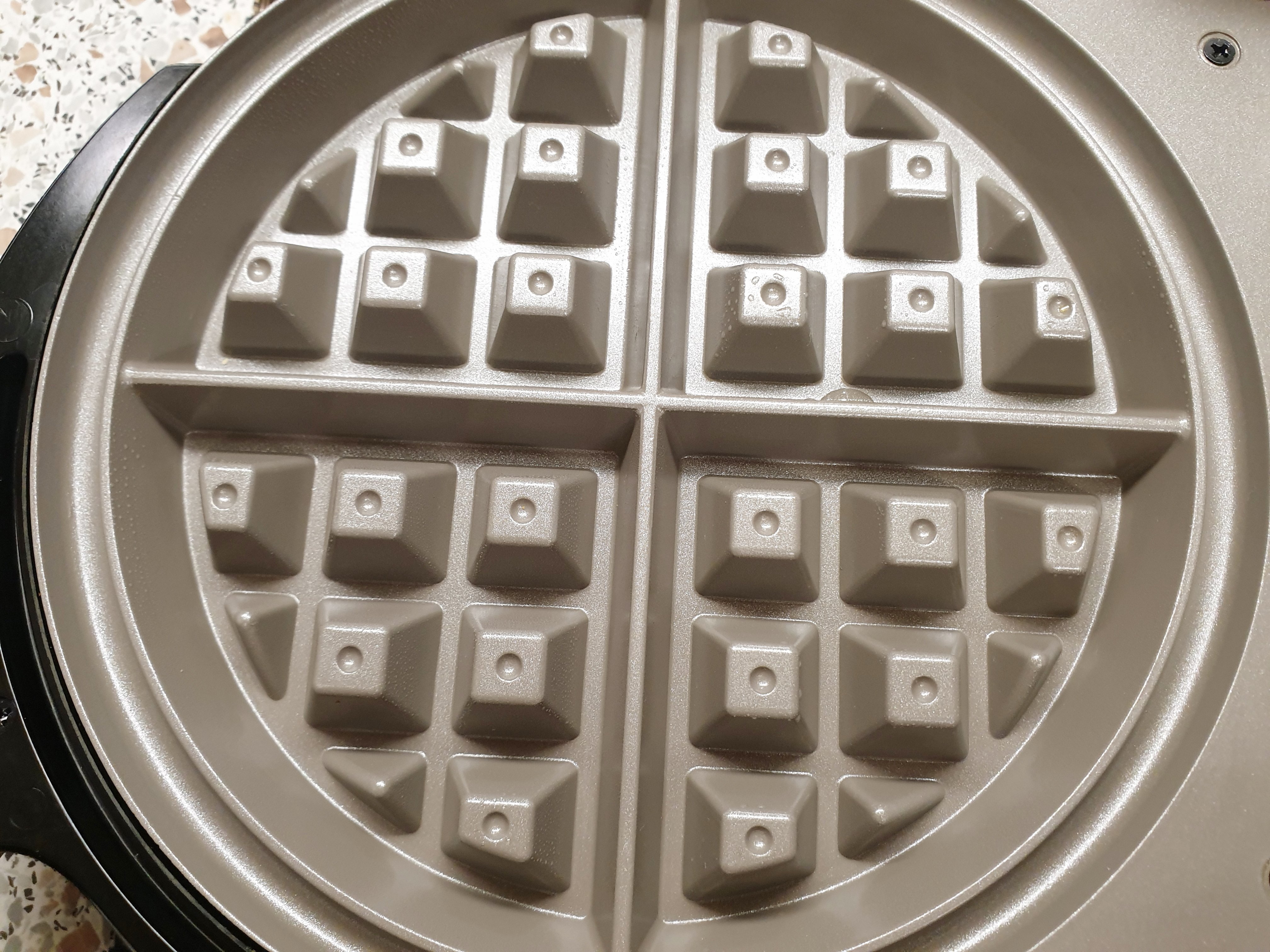 3. 키친타월에 식용유를 묻히고 와플 기계에 발라줍니다.