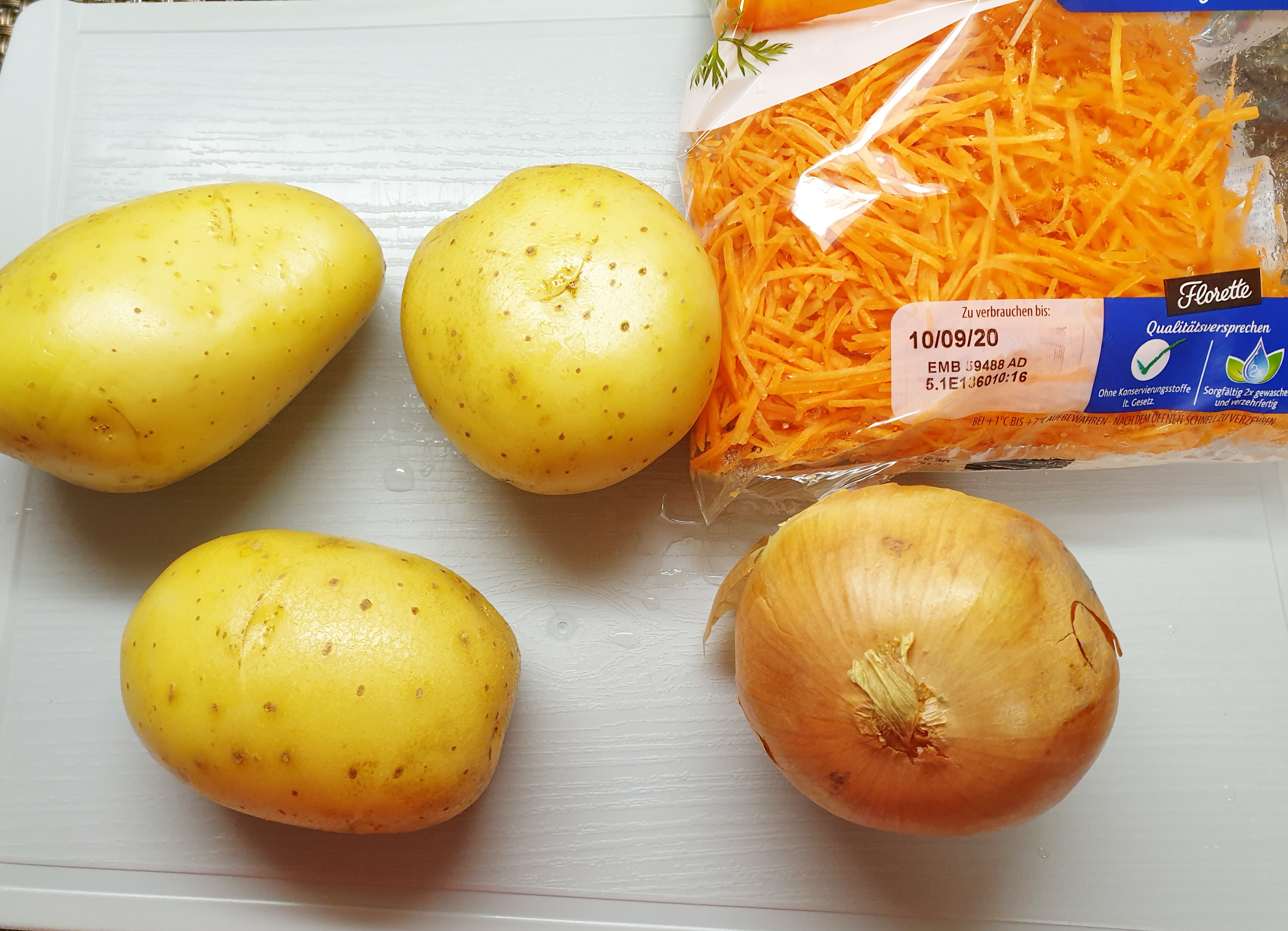 필요한 재료 : 감자 3개 , 당근 1/2개 , 앙파 1개 (작은 사이즈) , 소금 1 티스푼 , 후춧가루 약간 , 물 1/2 컵 (종이컵) , 볶음 깨