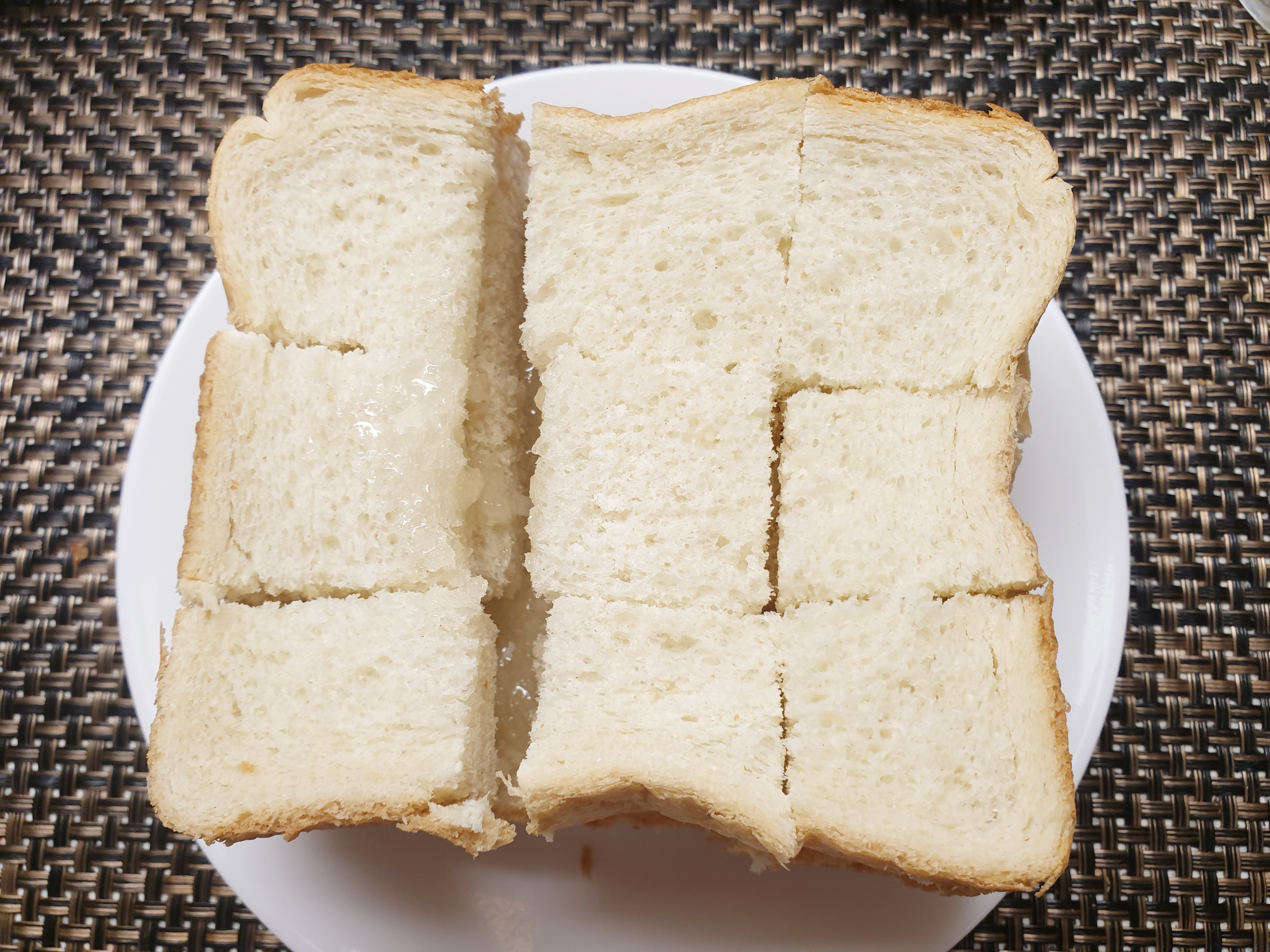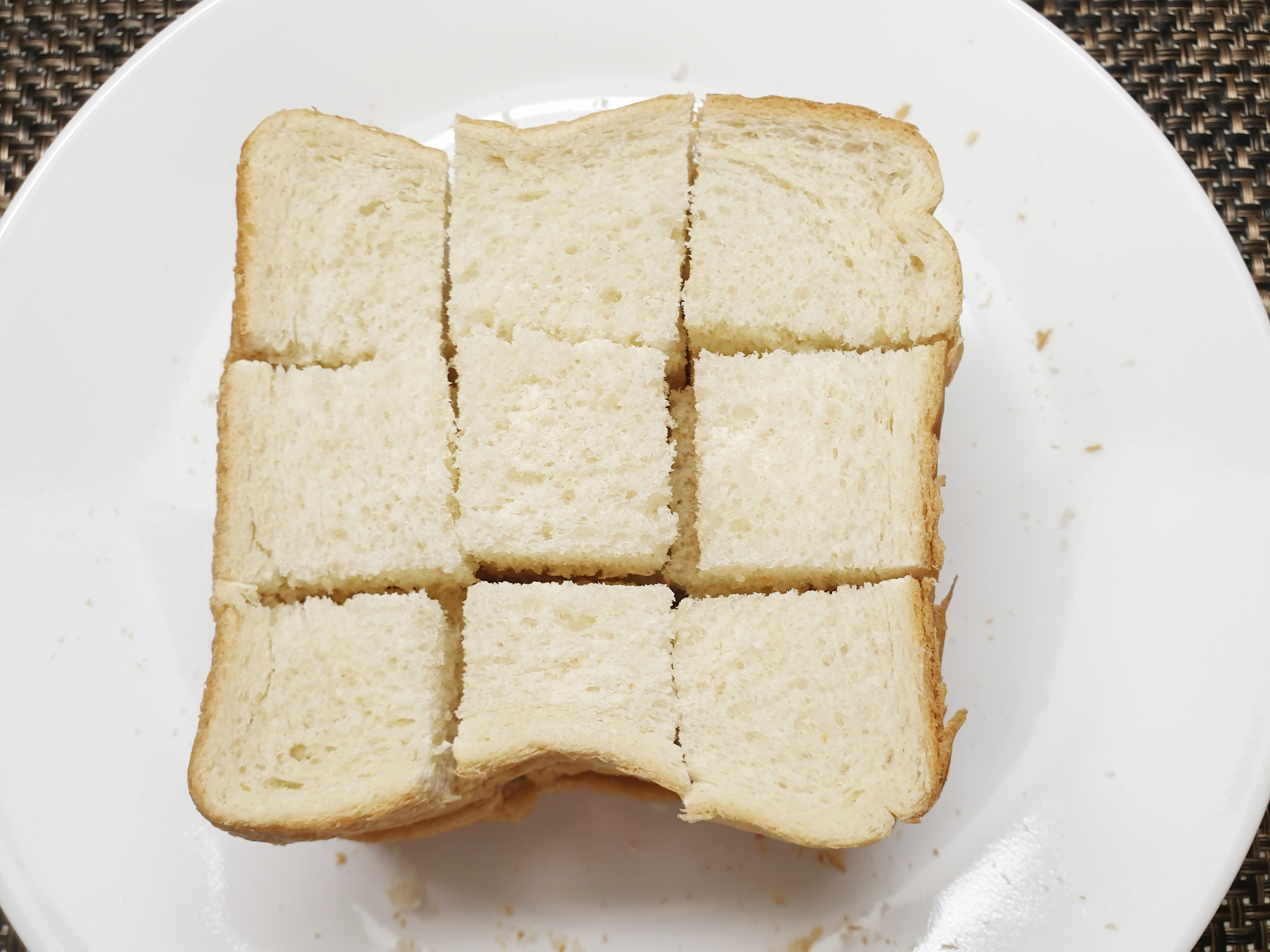 맨 아래에 있는 식빵을 자르지 않고 2개의 식빵만 9등분을 해줬어요!