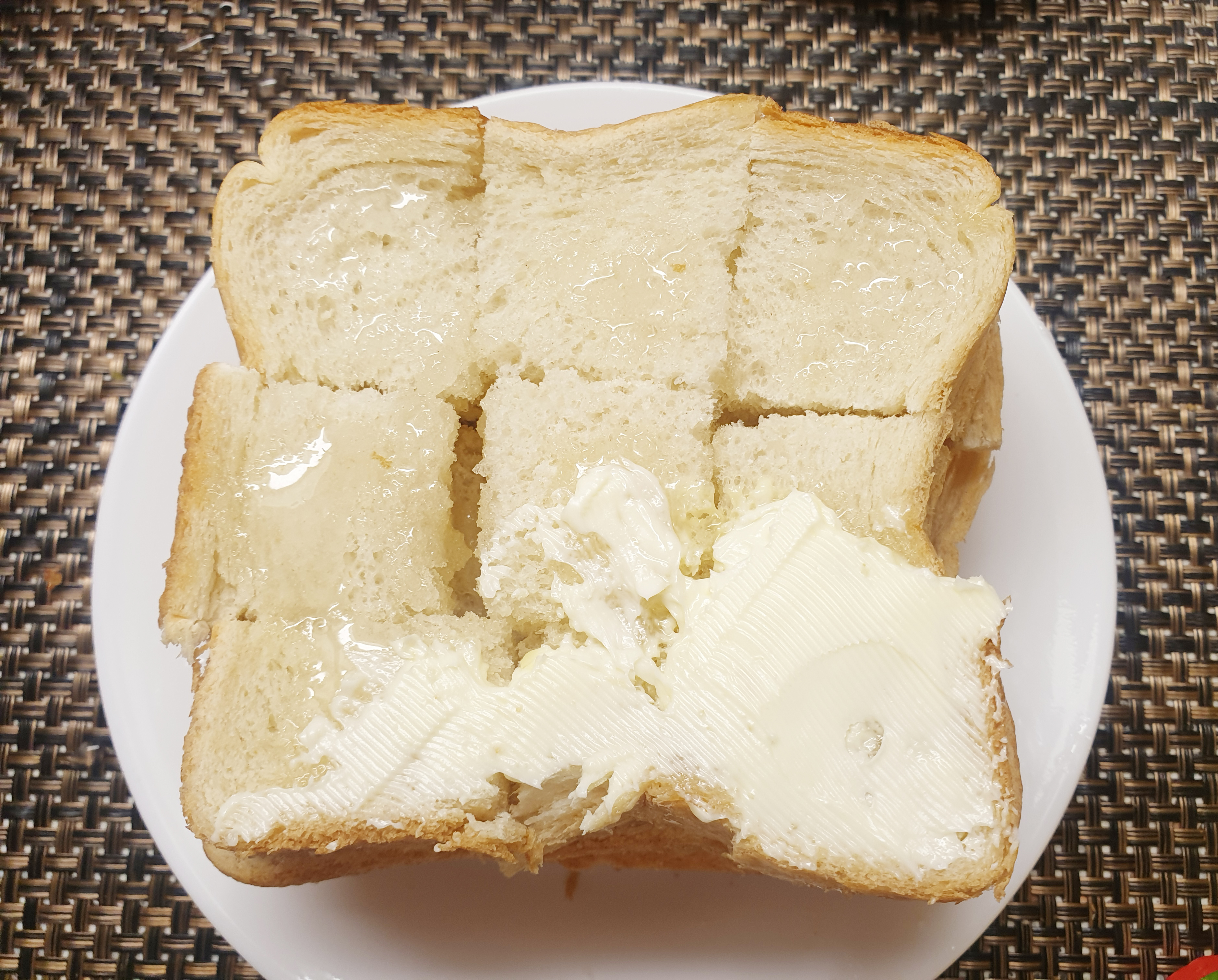 윗부분은 버터를 발라서 그런지 카페에서 먹던 허니버터브레드 맛이었는데 버터를 바르지 않은 빵 부분은 너무 단 맛만 강했어요~ 그래도 집에서 허니버터브레드를 만들어 먹을 수 있다는 것에 대 만족!! 다음에는 허니버터 브레드를 만들 때 빵을 여러 개 쌓지 않고 한 개로 만들어 먹어야겠어요~~~