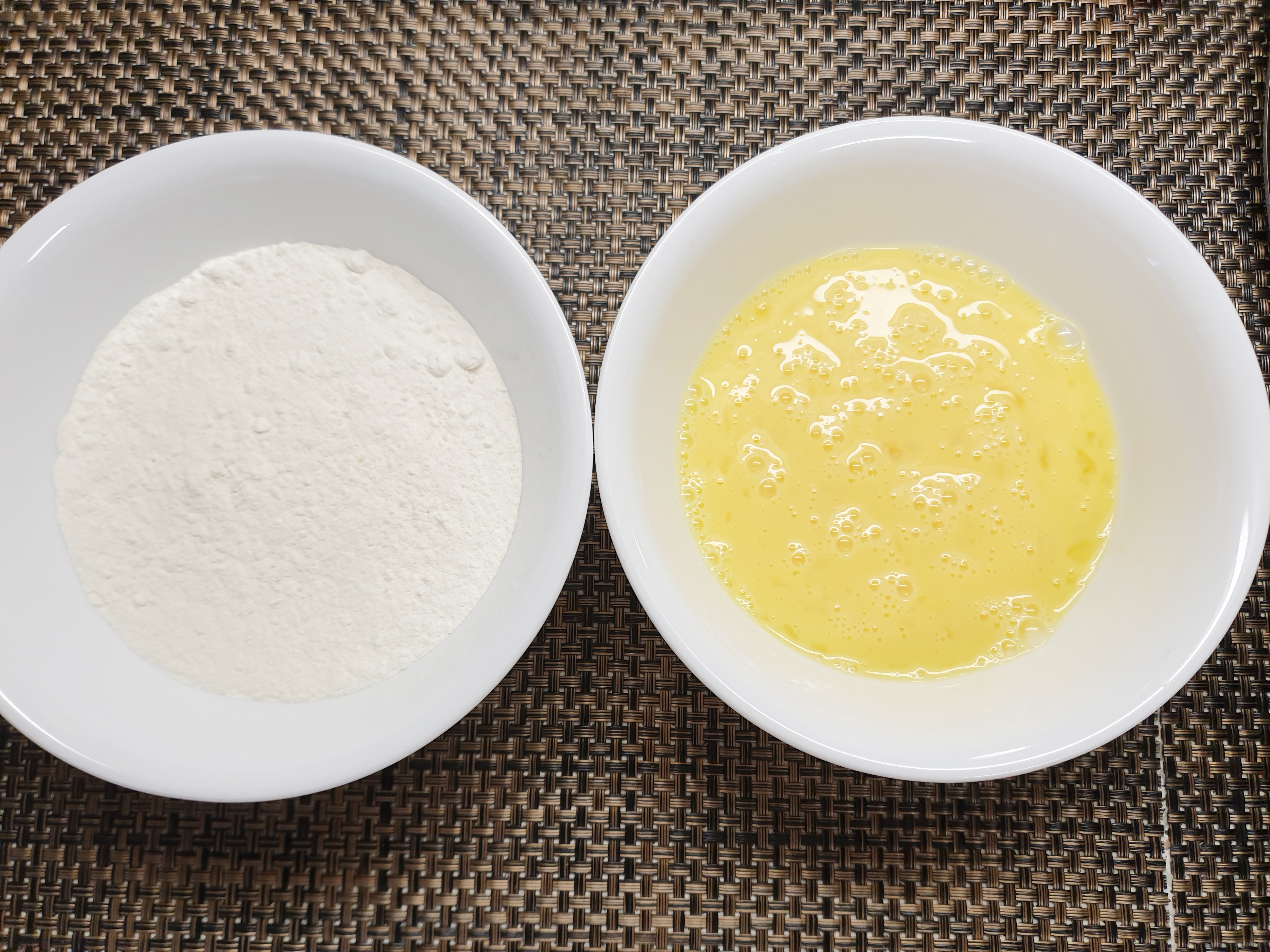 5. 피망전 옷이 될 부침가루와 계란 2개를 풀어 준비해줍니다.