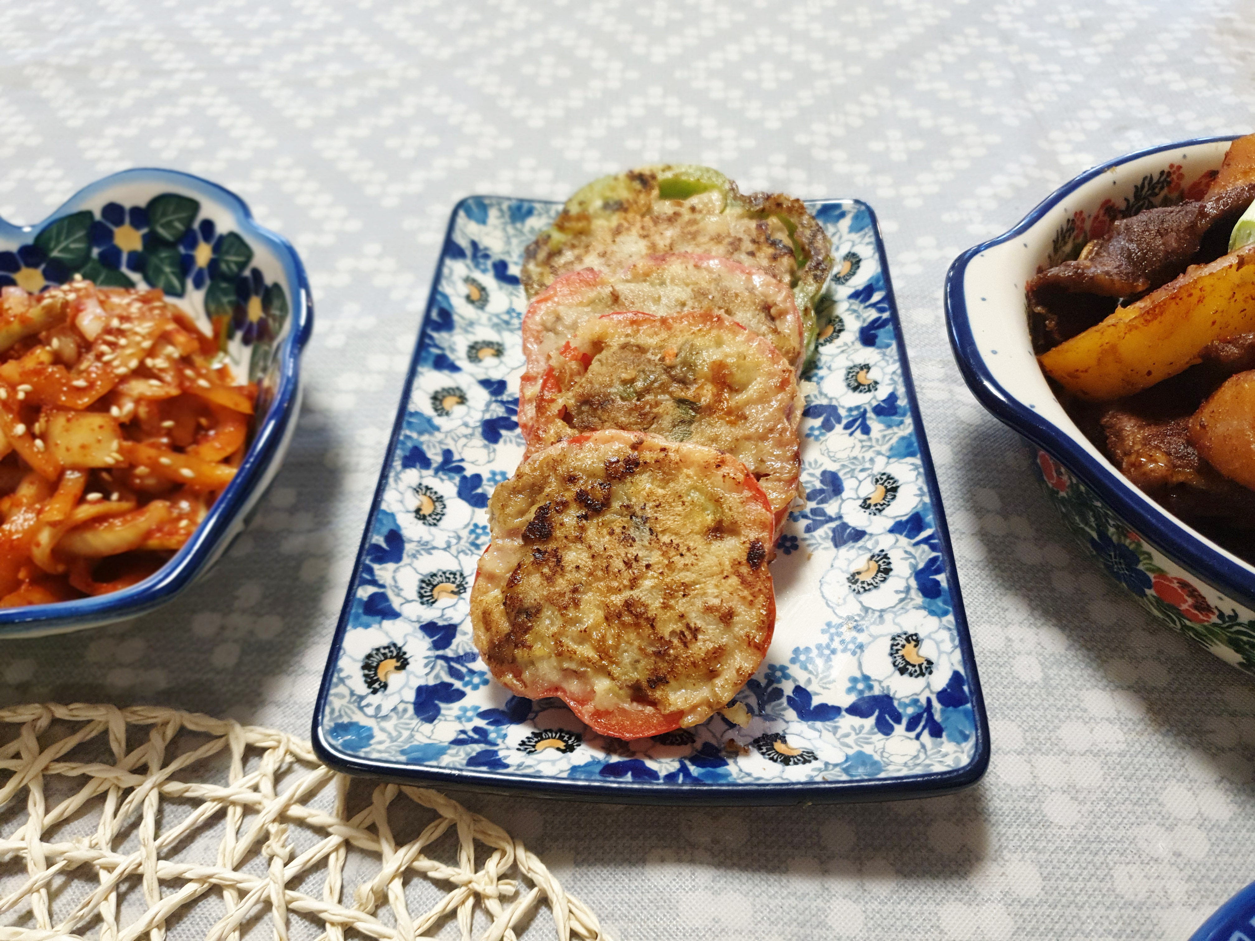 빨간색과 초록색 피망을 같이 사용하니 더욱 먹음직스러웠습니다. ^^ 피망전은 양념장에 찍어 먹어도 맛있지만 그냥 먹어도 간이 부족하지 않아요~ 먹고 남은 전은 냉장 보관했다가 다음날 꺼내서 에어프라이어에 데워 먹거나 프라이팬에 기름 살짝 두르고 데워 먹으면 돼요~ 피망전은 고추전처럼 매운맛이 없어서 아이들도 충분히 즐겨먹을 수 있습니다. 고기소를 만들거나 색다른 전이 먹고 싶을 때 피망전을 한번 만들어 보는 것도 좋을 것 같네요 ^^!