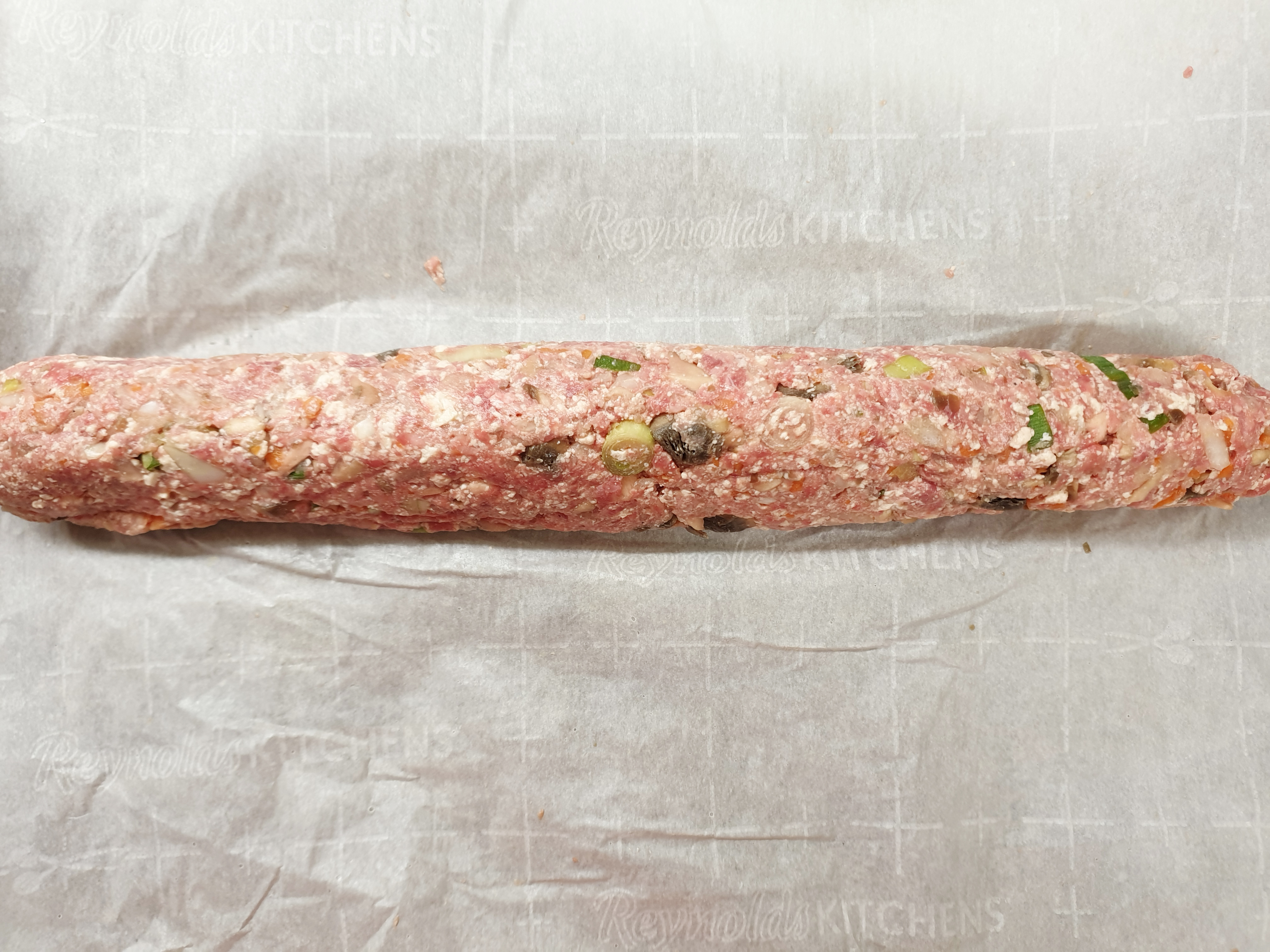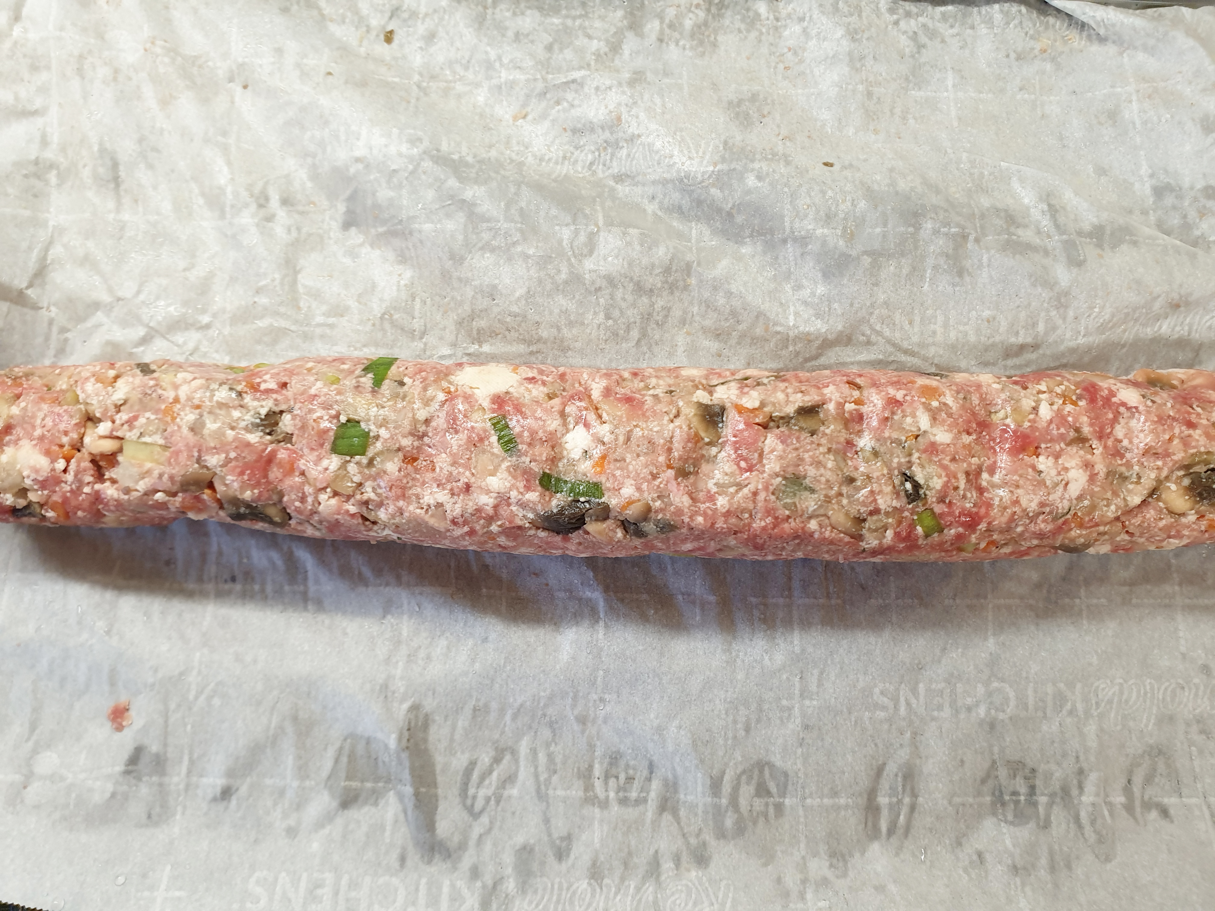 종이 포일 위에 김밥보다 얇은 두께로 반죽을 길게 올리고 김밥 말듯 말아서 1시간 동안 냉동 보관해줍니다.