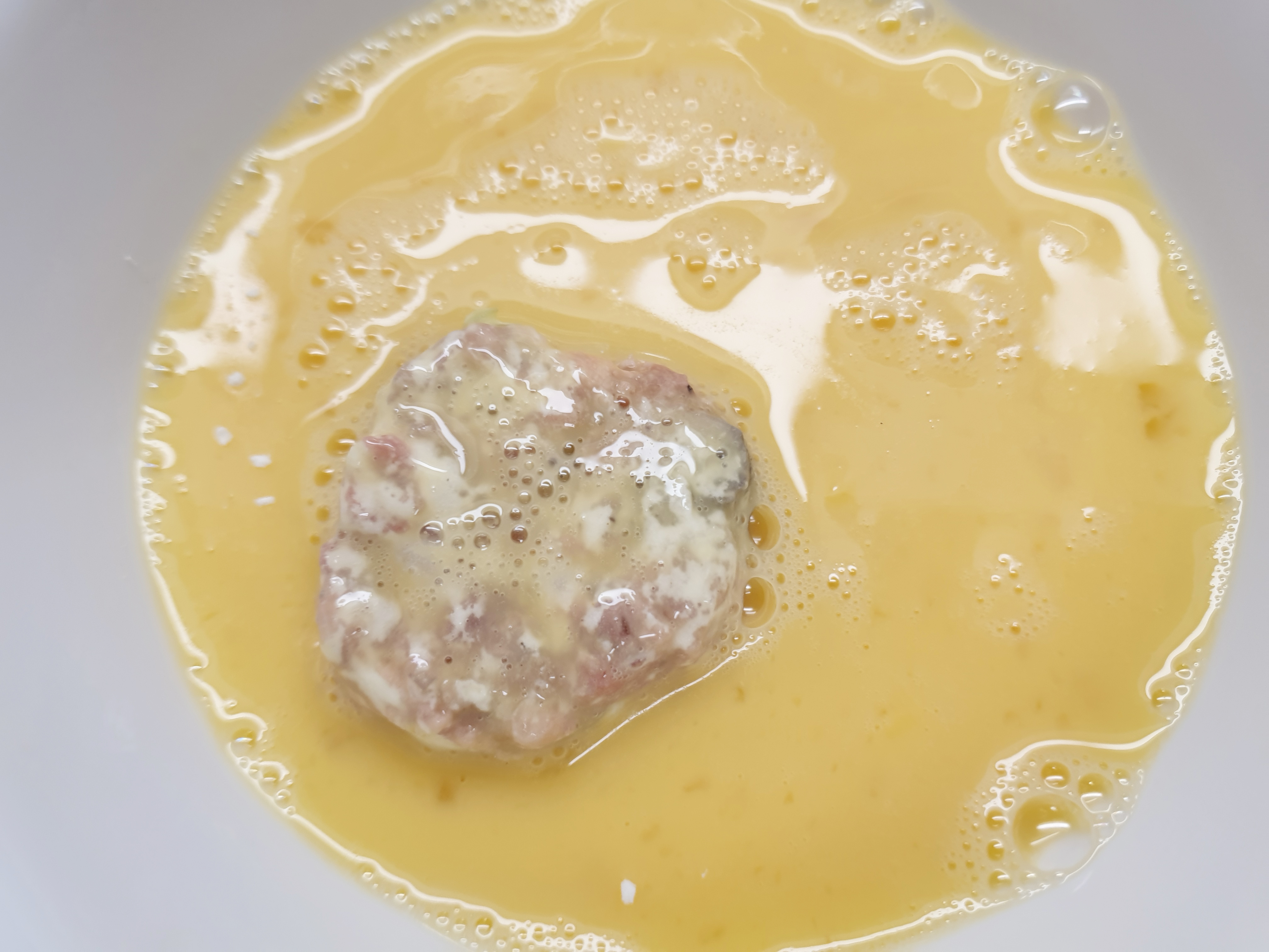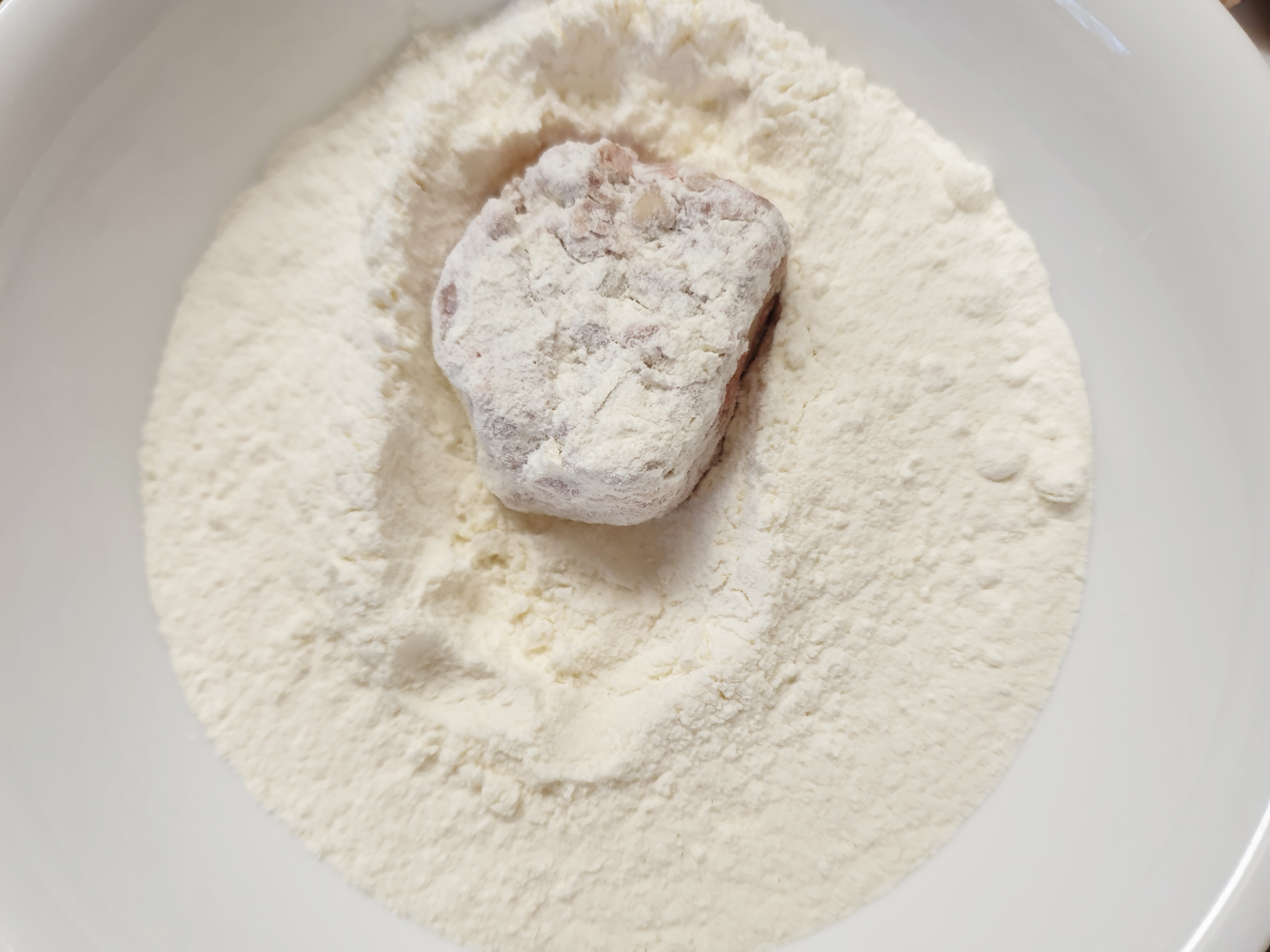 7. 밀가루 옷을 입히고 계란물을 묻혀 줍니다~ 계란물을 묻힐 때 수저를 사용하면 더 쉽겠죠?