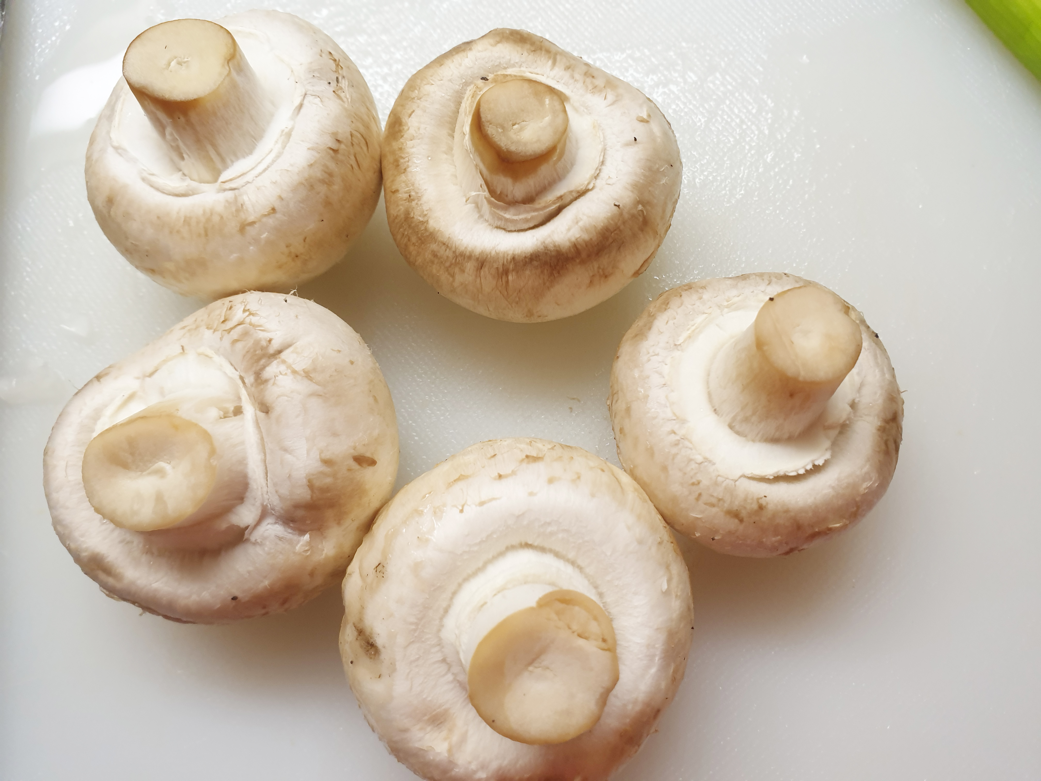 1. 먼저 양송이버섯 5개와 대파 1/2대를 흐르는 물에 깨끗이 씻고 손질해주세요~