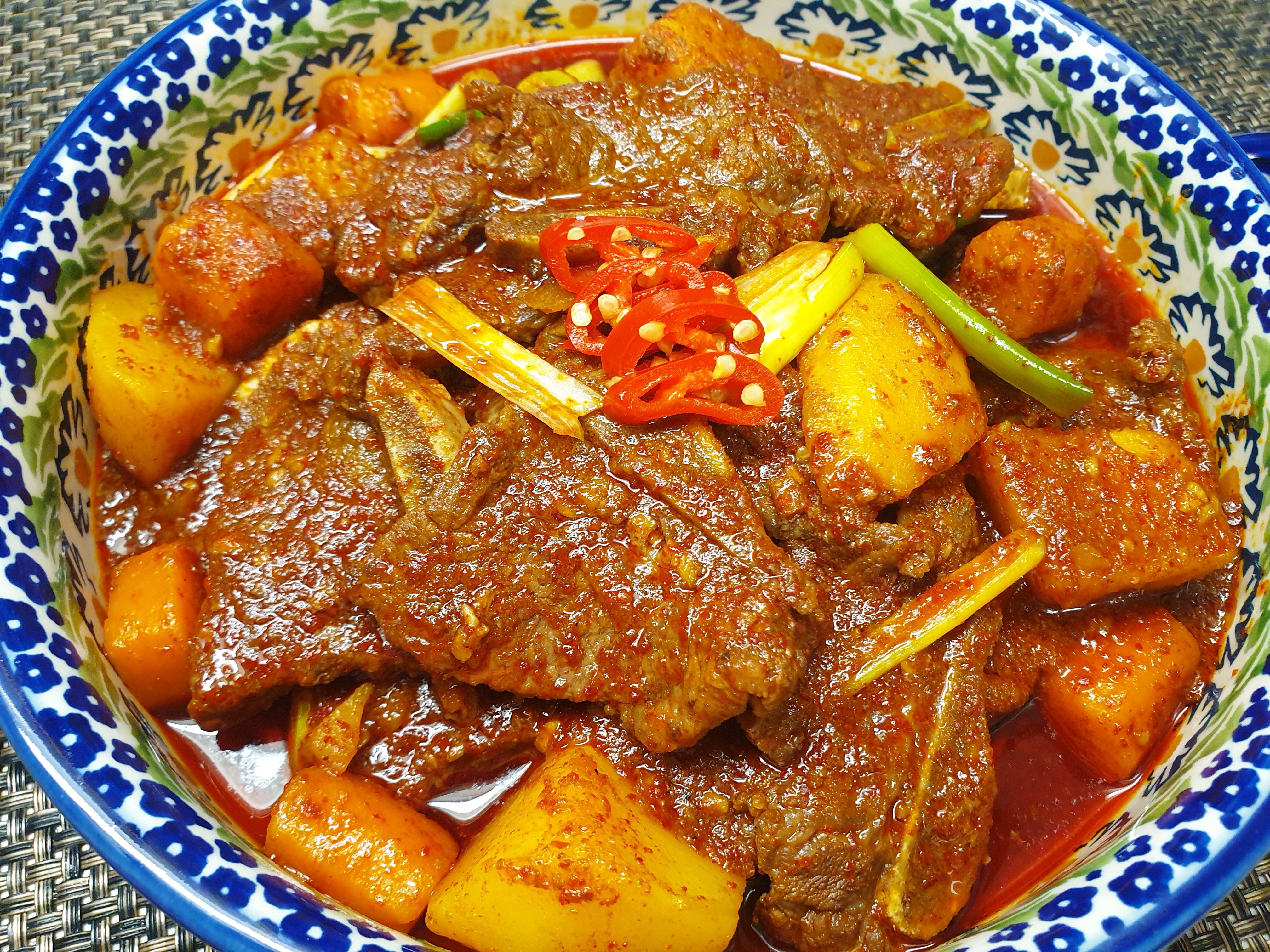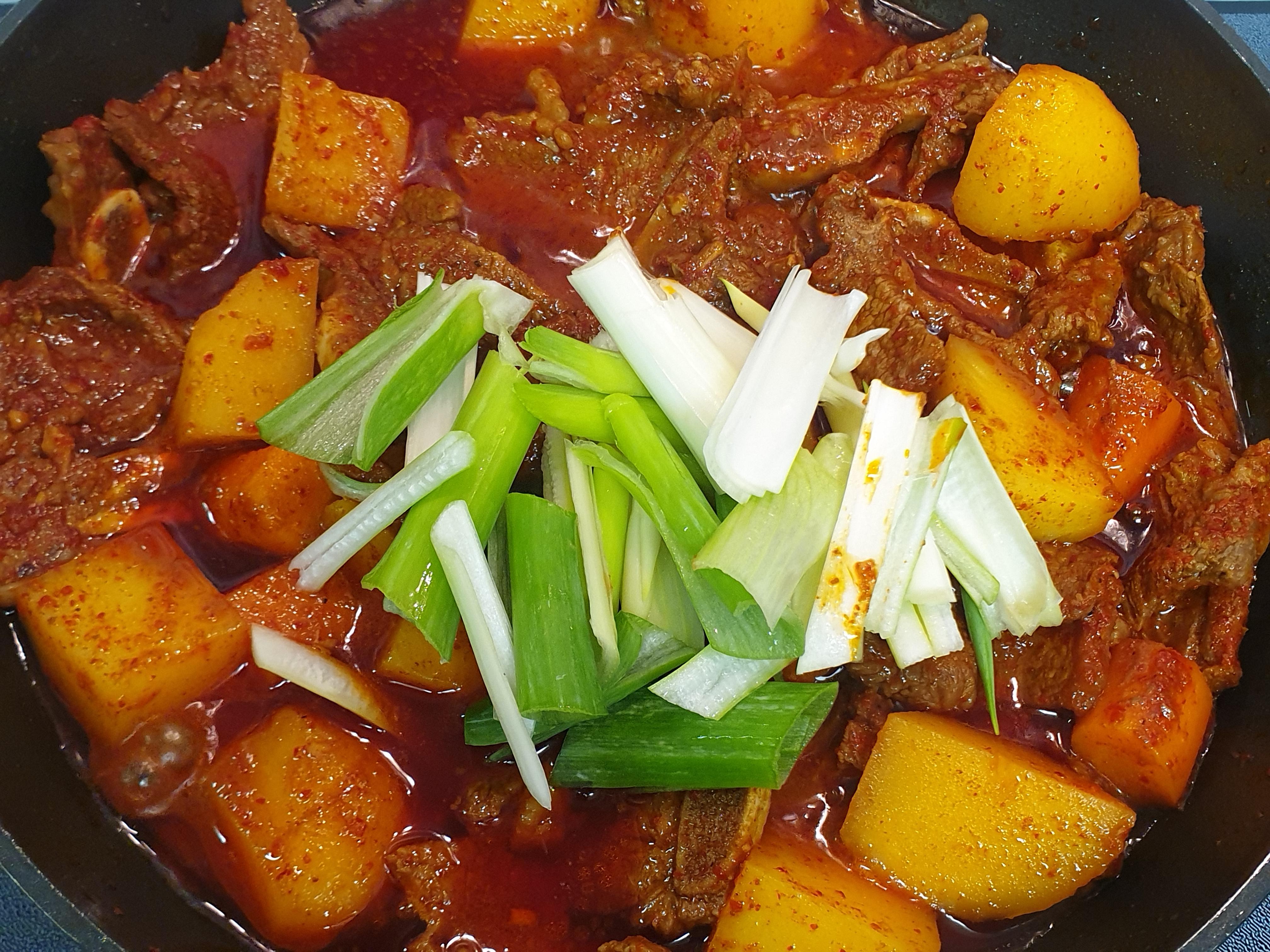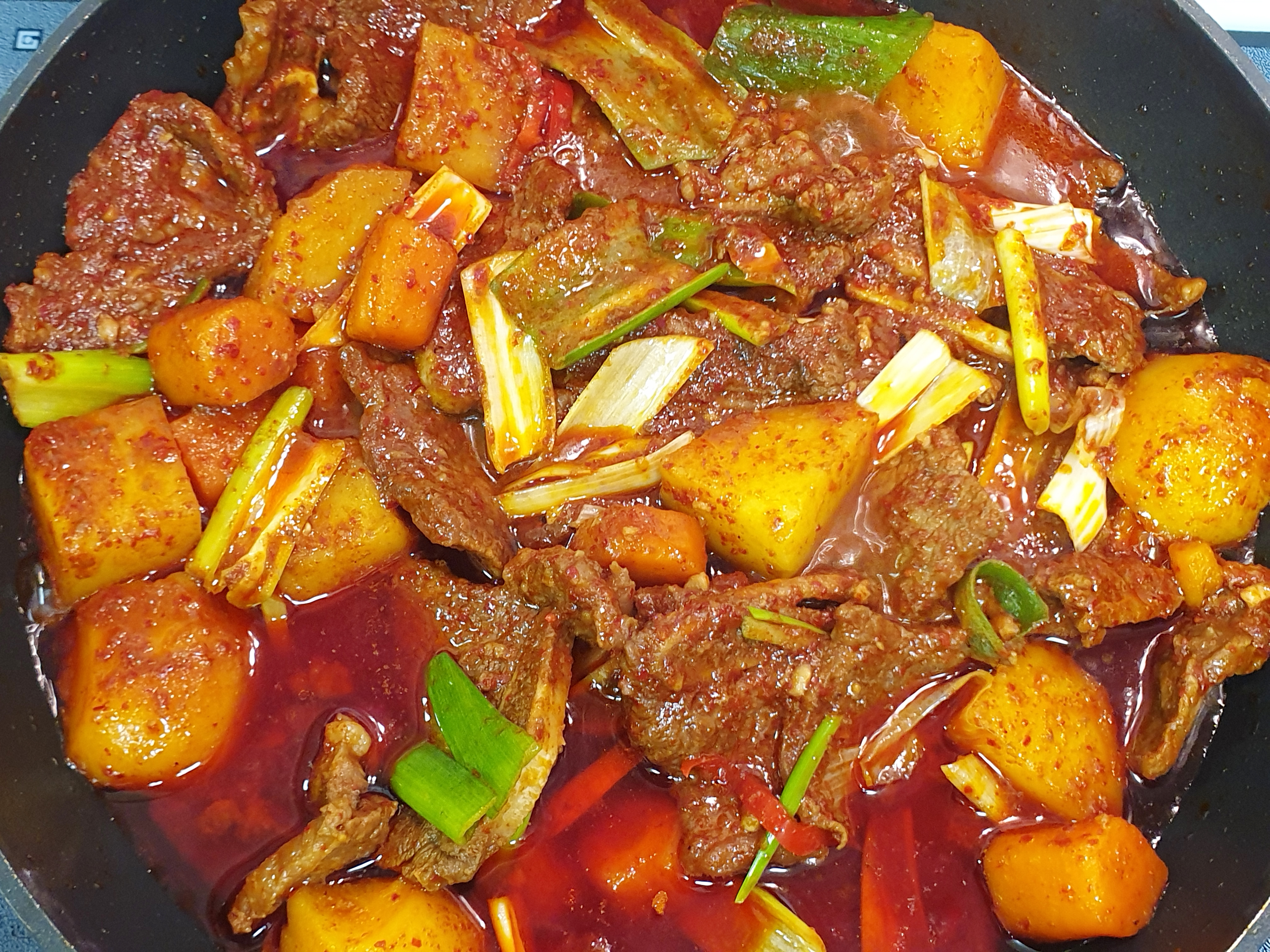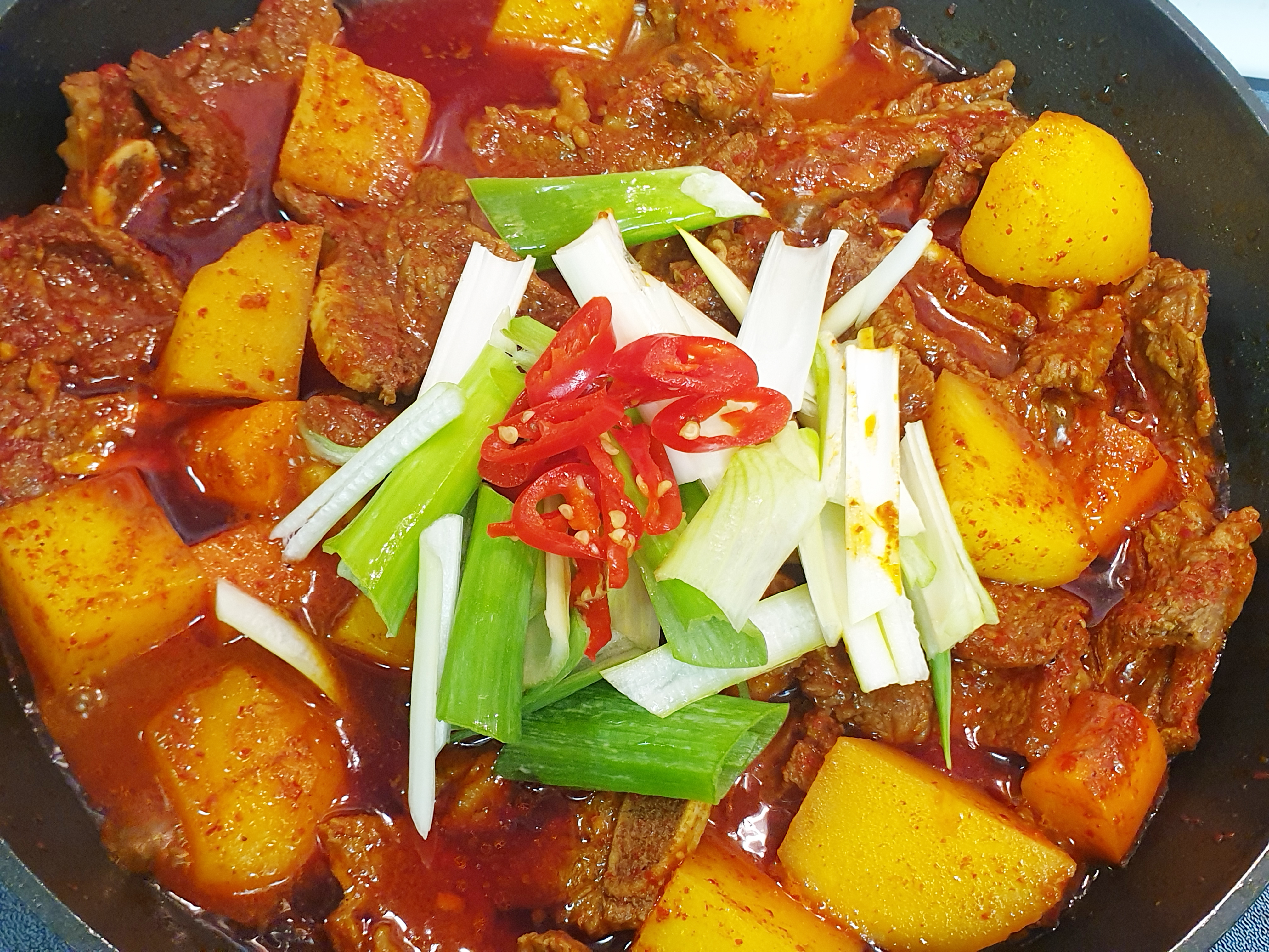 이렇게 완성된 매운 la갈비찜! 고기도 부드럽고 매콤하면서 단맛이 있기 때문에 누구나 부담 없이 즐길 수 있는 맛!