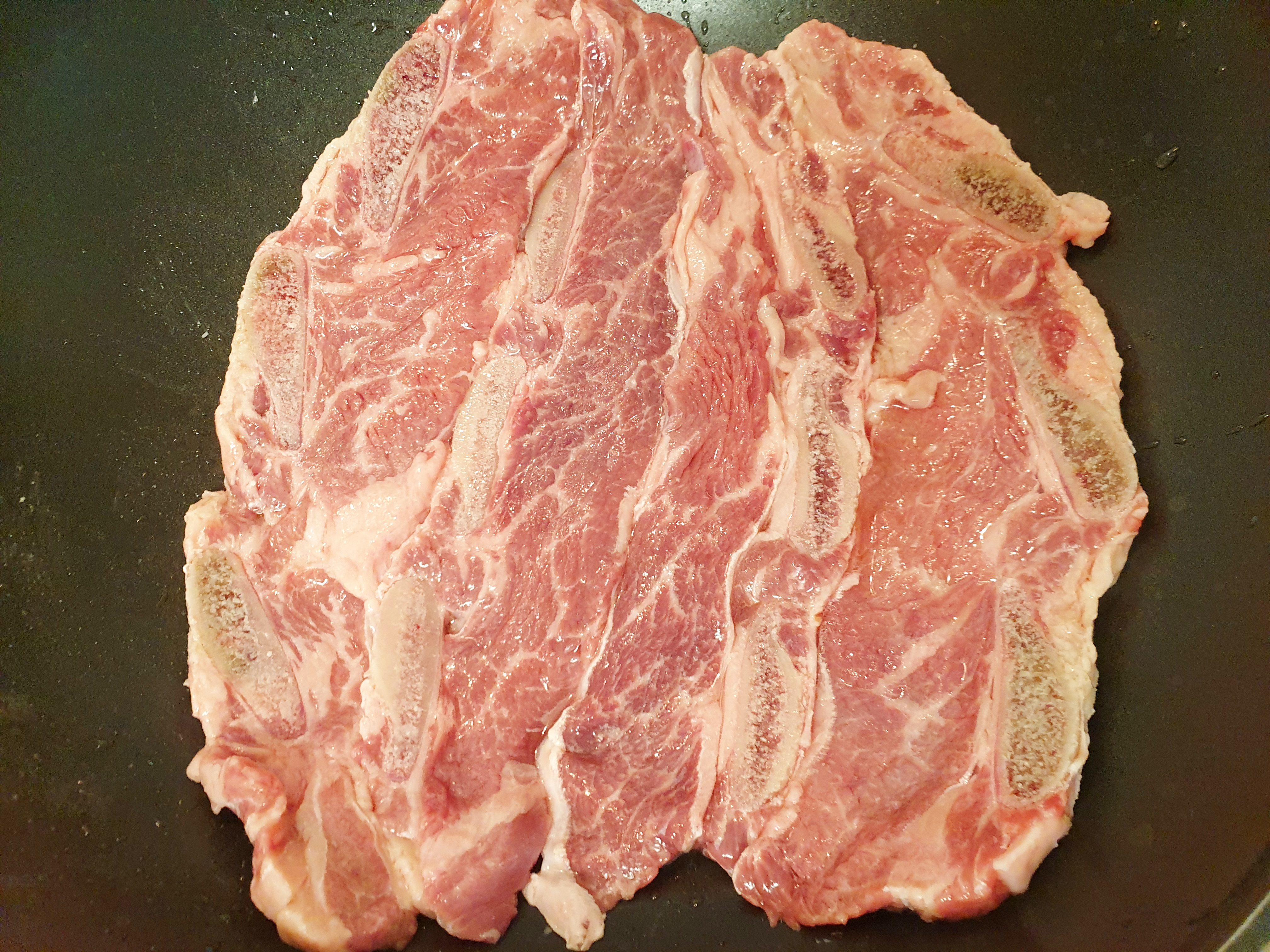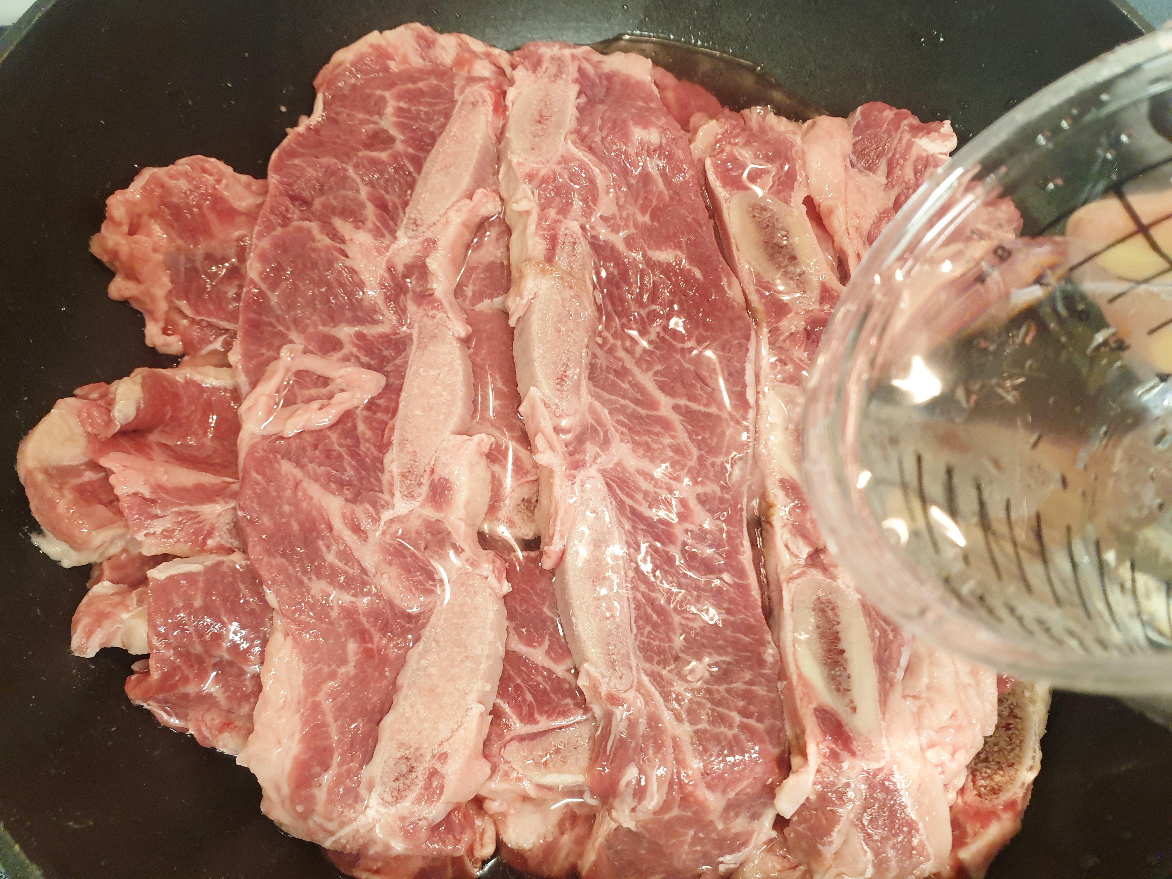 4. 불은 중불에 맞추고 웍에 la갈비를 차곡차곡 쌓아주세요!