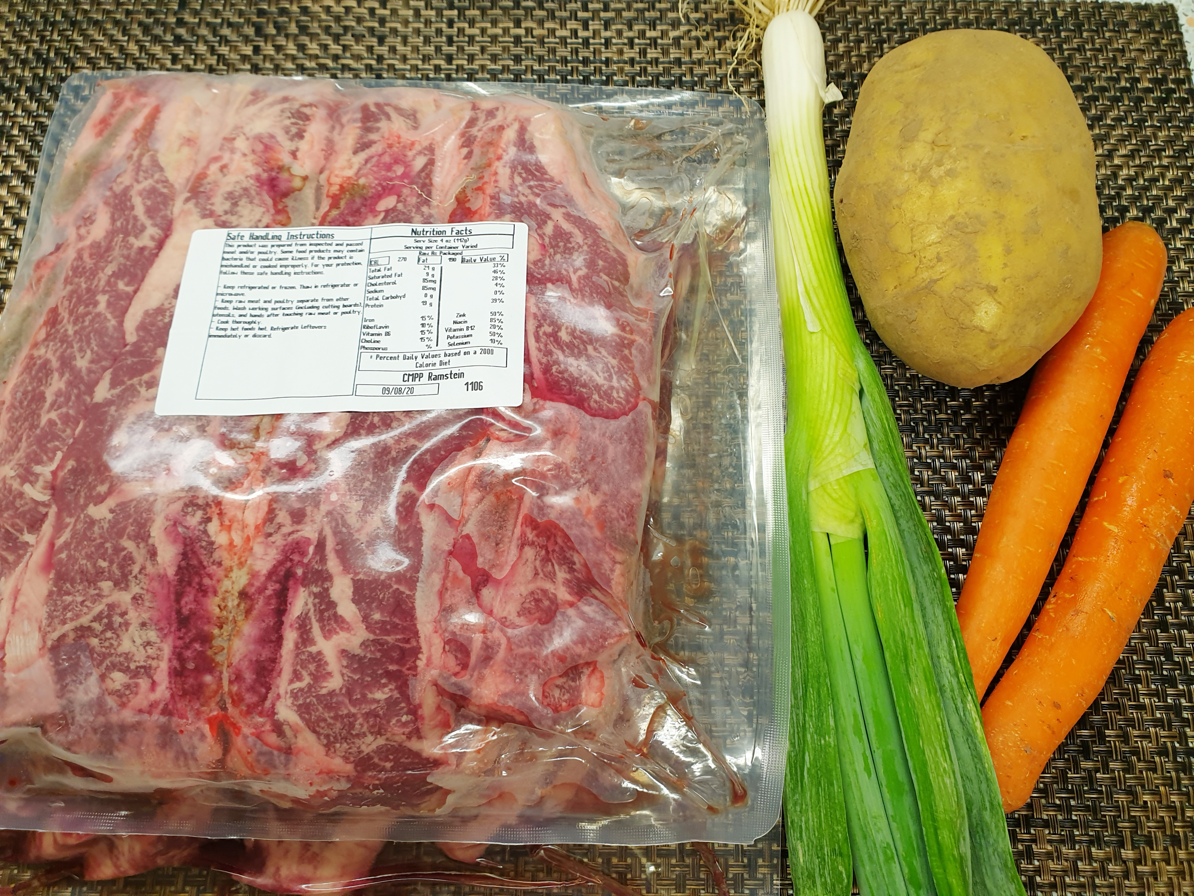 필요한 재료: la 갈비 1kg~1.5kg , 감자 1개 , 대파 1대 , 당근 1~2개 , 홍고추 1개