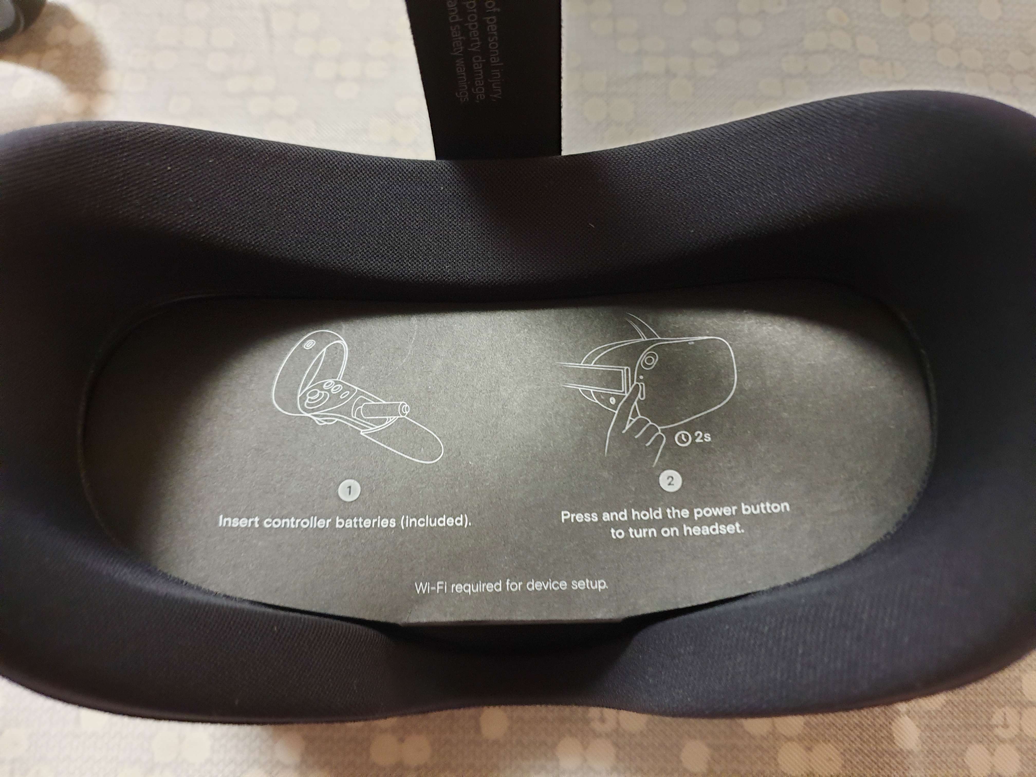 안쪽에는 설정 방법이 적혀 있는데 컨트롤러에 건전지를 끼우고 VR헤드셋의 전원 버튼을 2초간 눌러 전원을 켜주면 됩니다.