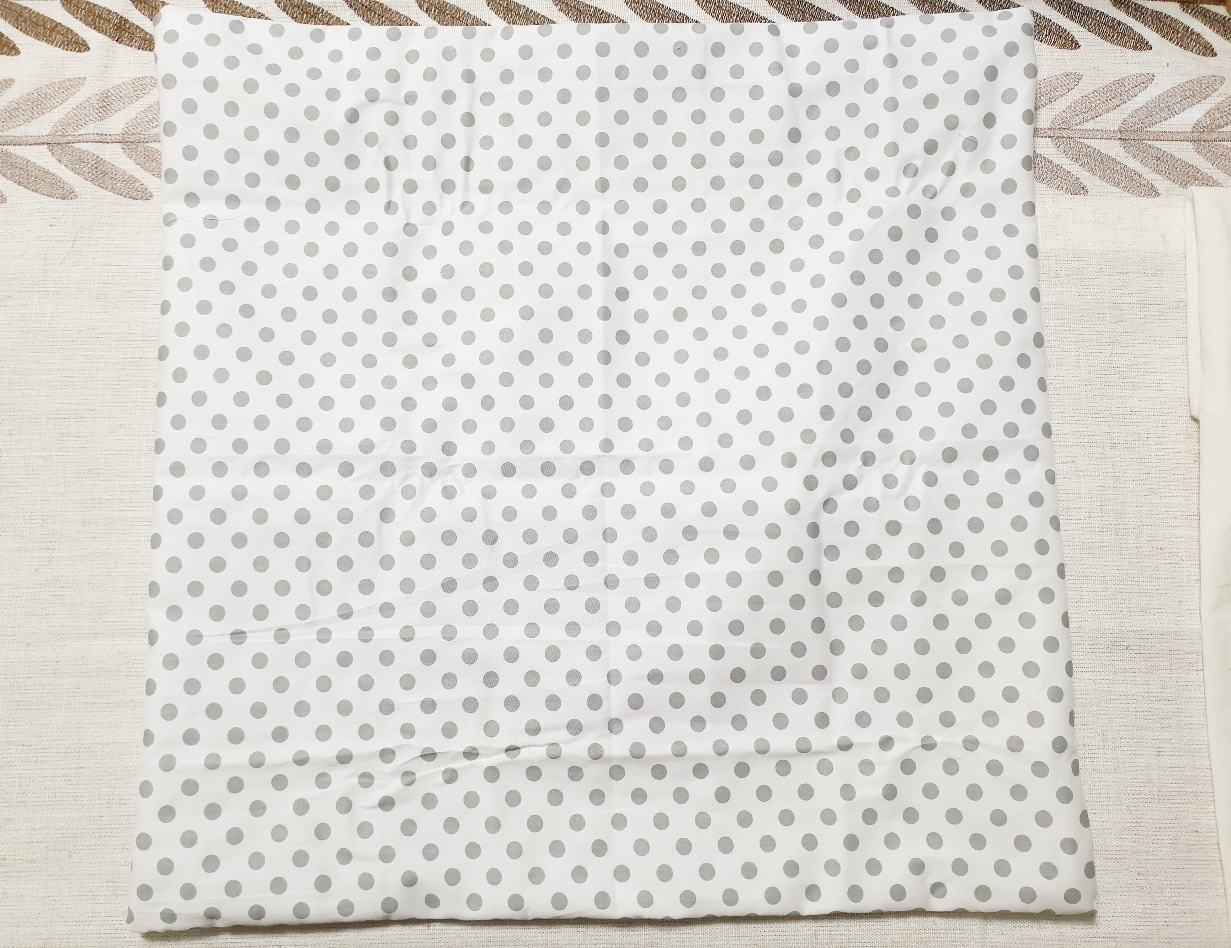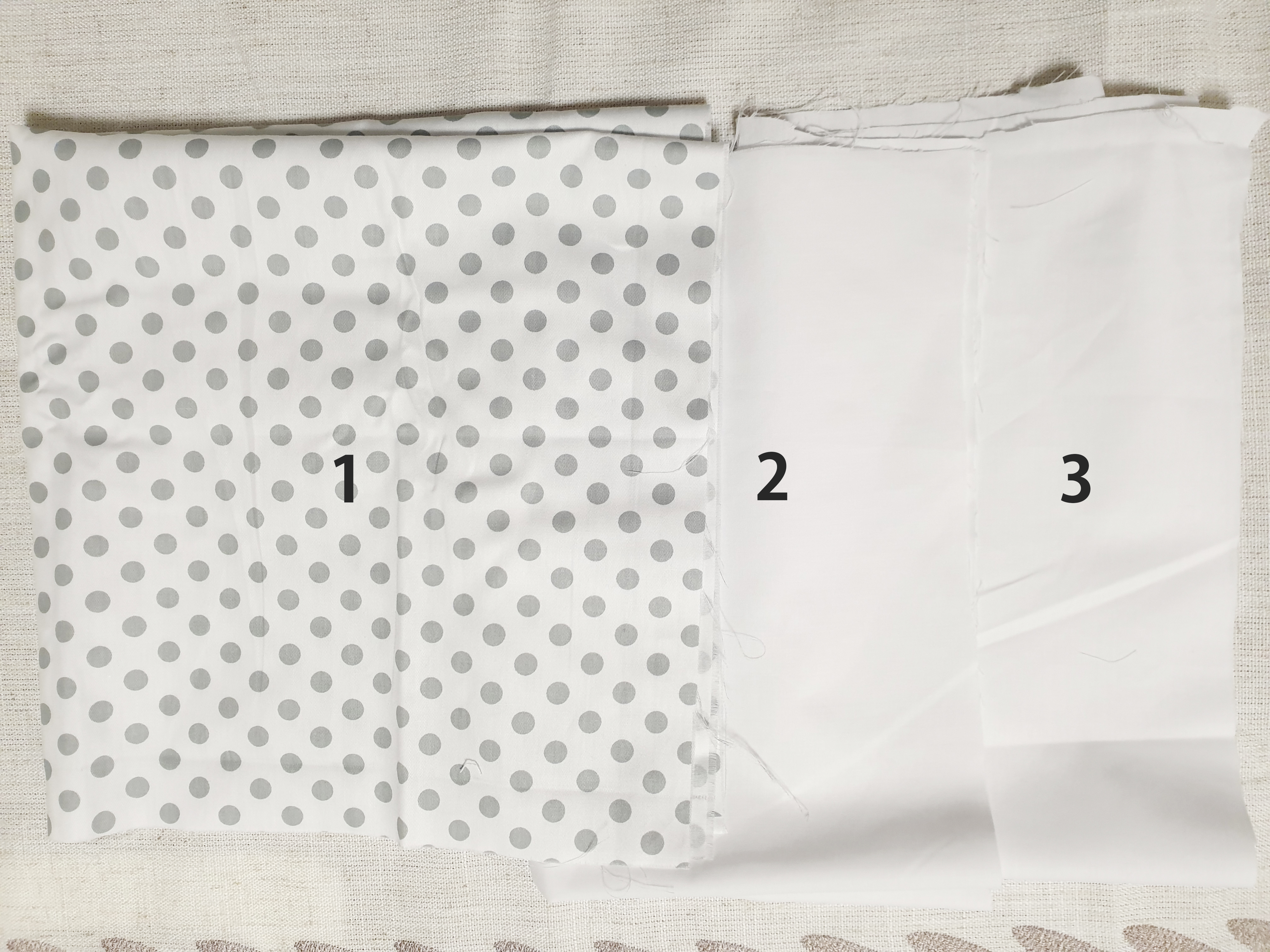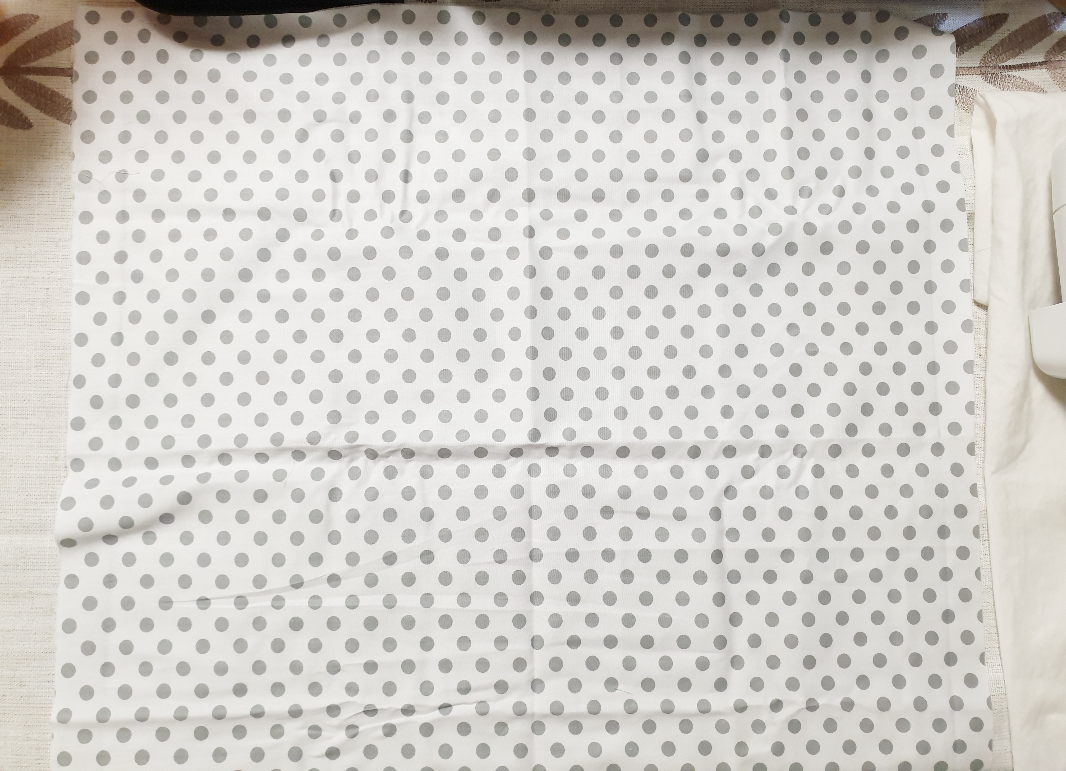 앞면은 포인트가 될 수 있도록 패턴이 있는 원단을 준비했고 뒷면은 흰색 원단으로 준비했습니다.
