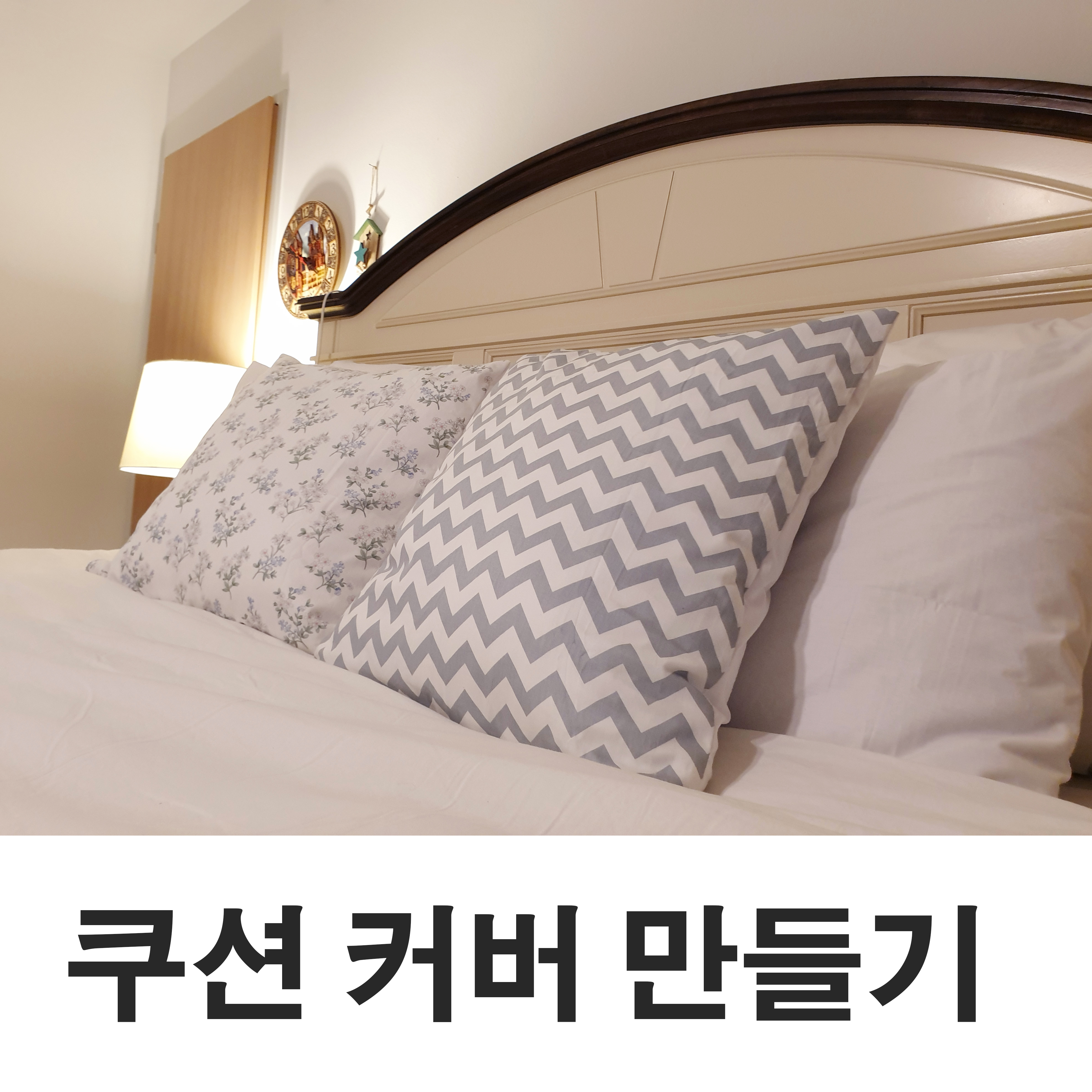 침실을 호텔 분위기로 바꾸고 싶어서 이번에 침구를 싹~ 흰색으로 바꿨는데 항상 색과 무늬가 있는 침구를 사용하다가 흰색으로 바꾸니 침대가 밋밋해 보이더라고요~ 그래서 침대에 포인트를 주기 위해서 사다둔 천을 이용해 쿠션 커버를 만들어 봤어요~ 직접 만든 쿠션 커버에 쿠션 솜을 넣고 침대에 올려두니 침실 분위기가 확 사는 느낌 ㅎㅎ 저처럼 미싱 초보자도 쉽게 쿠션 커버 만드는 법 알려 드릴게요!